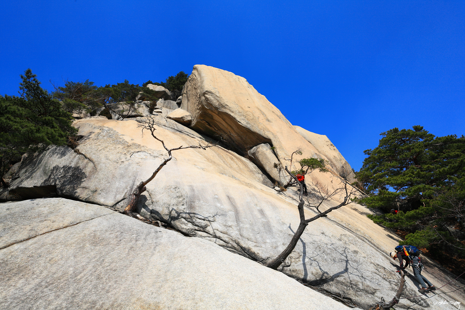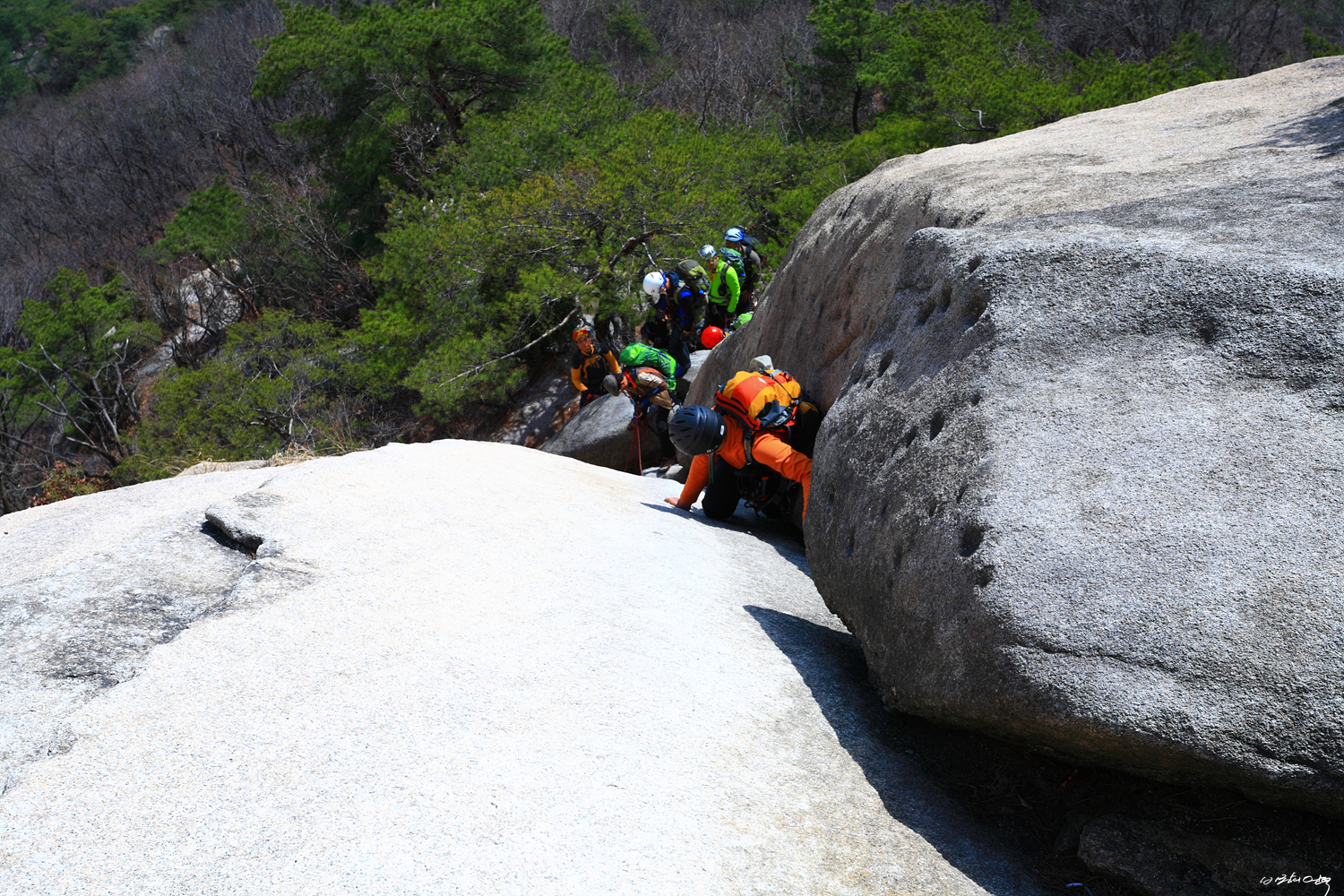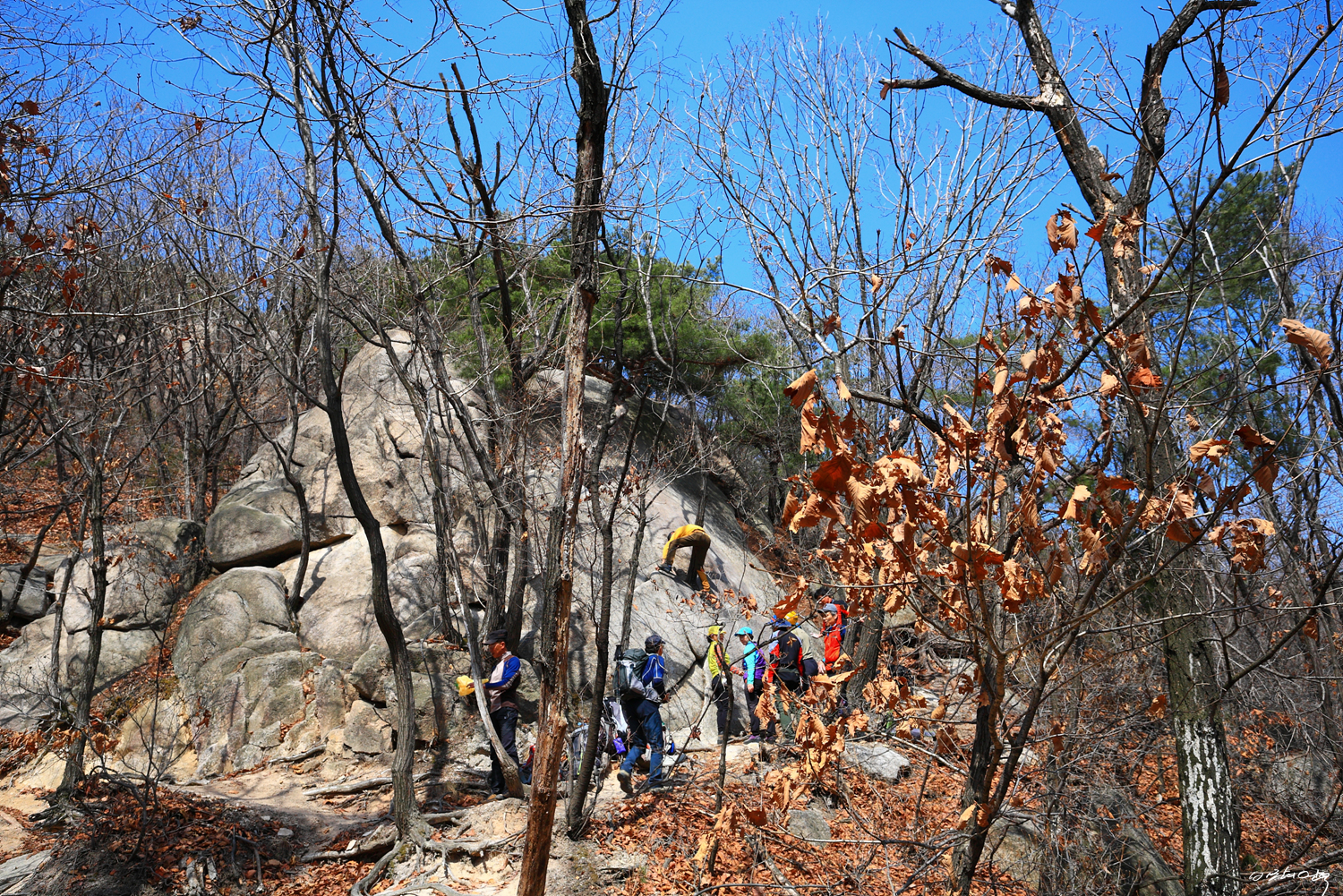 새봄을 맞아 많은 산객들이 바위를 타는군요.