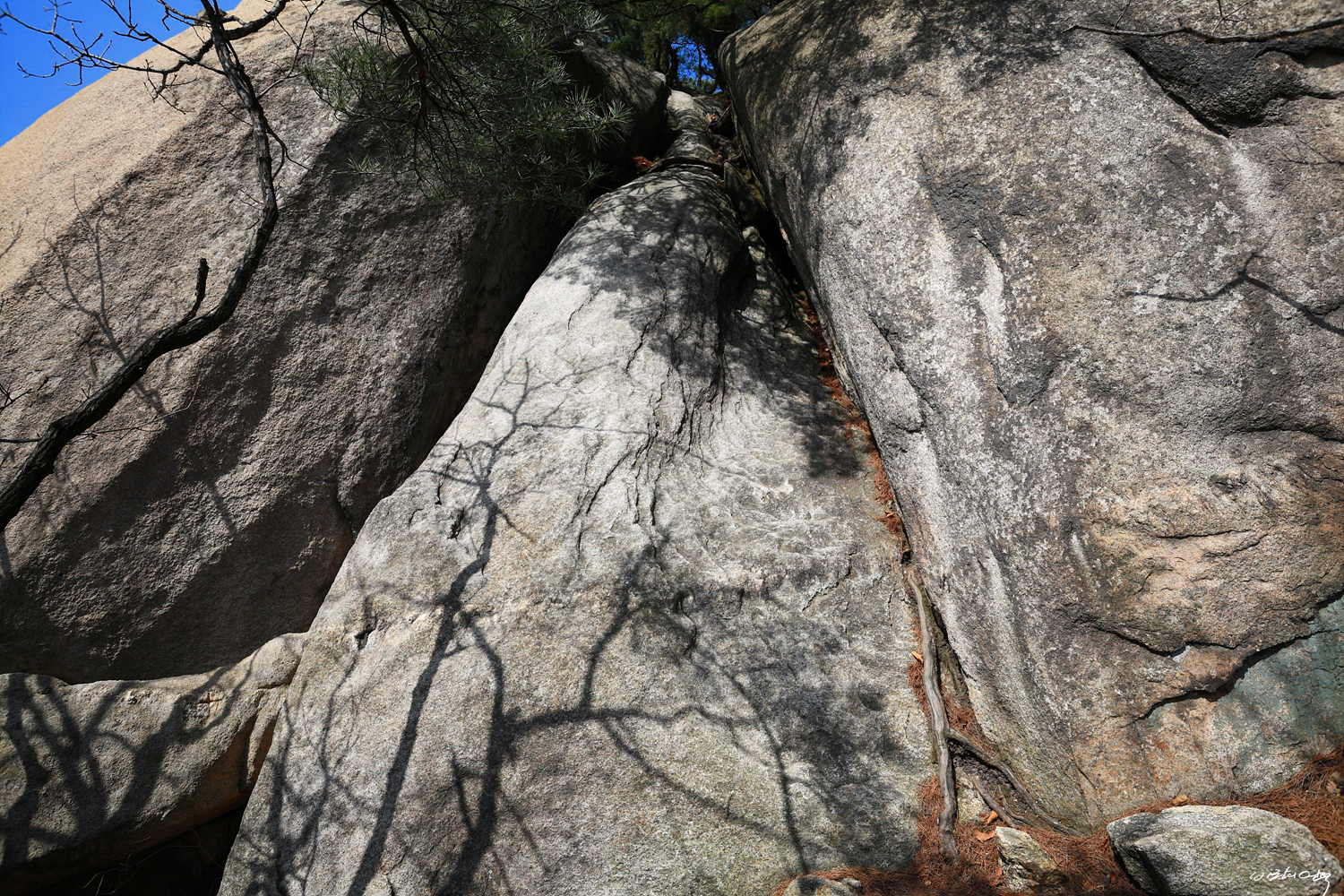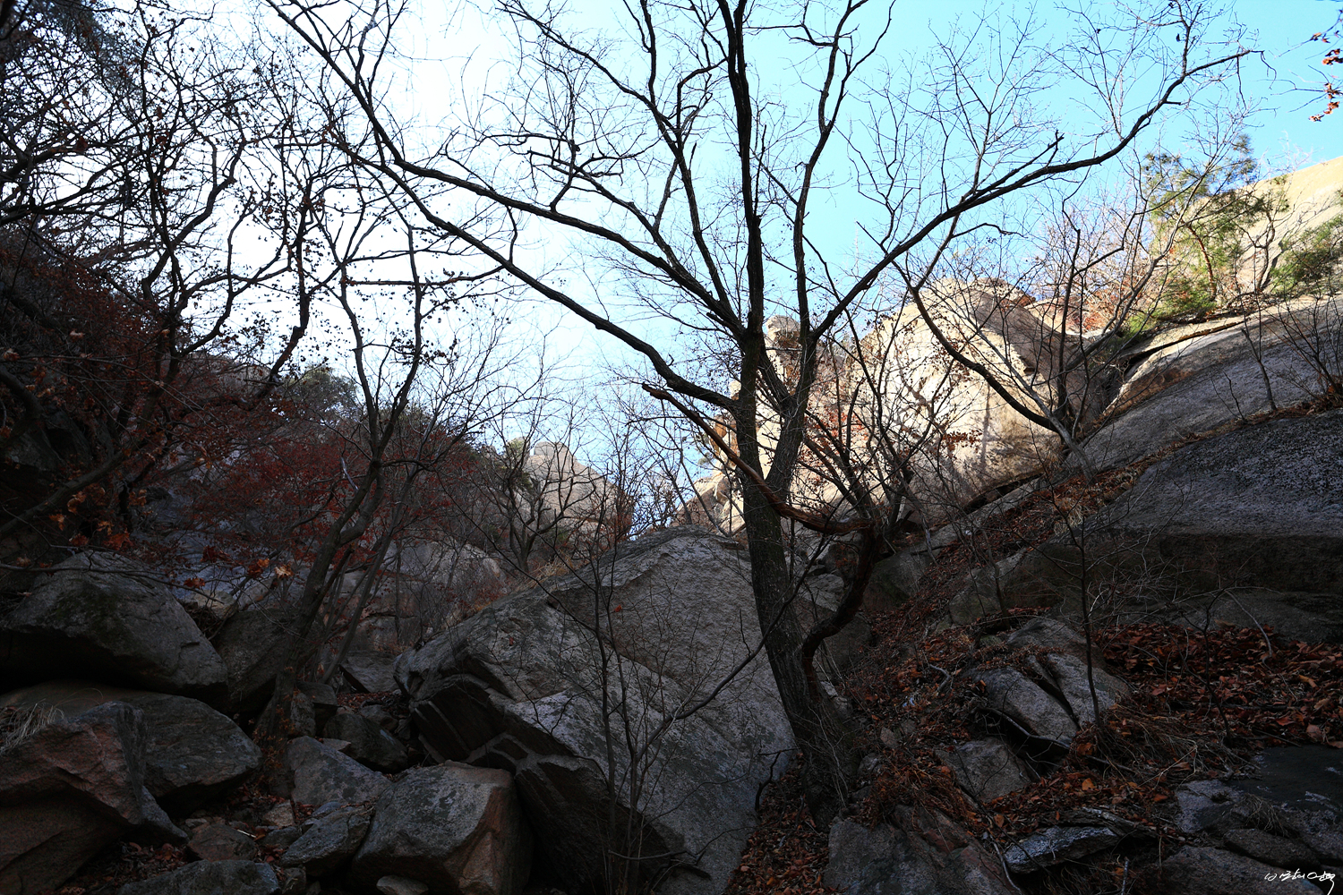 식당바위를 뒤로 곧바로 계곡을 치고 올라 Y계곡 하단부로 오릅니다.