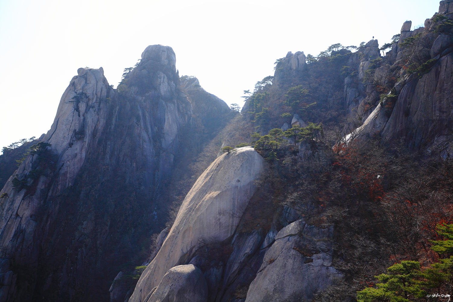 왼쪽 위 신선대 정상과 에덴동산 그리고 암벽등반객이 있는 주봉입니다.