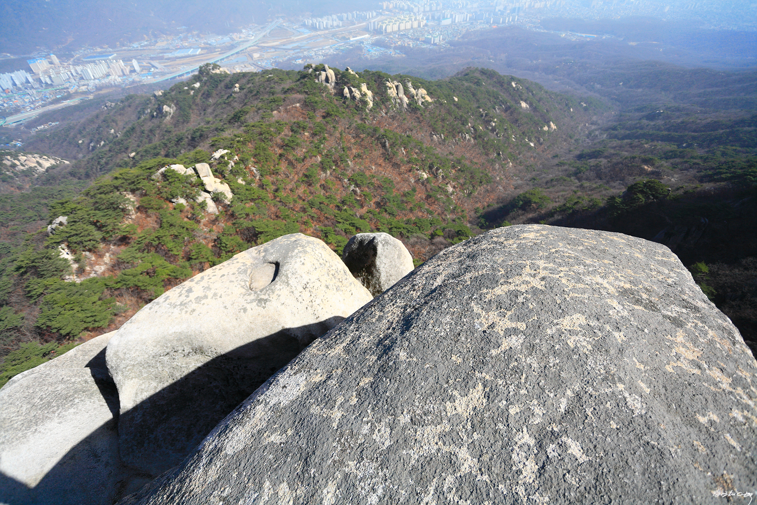 이어서 깊은 계곡을 오르내린 후 물개바위 정상에 오릅니다.
