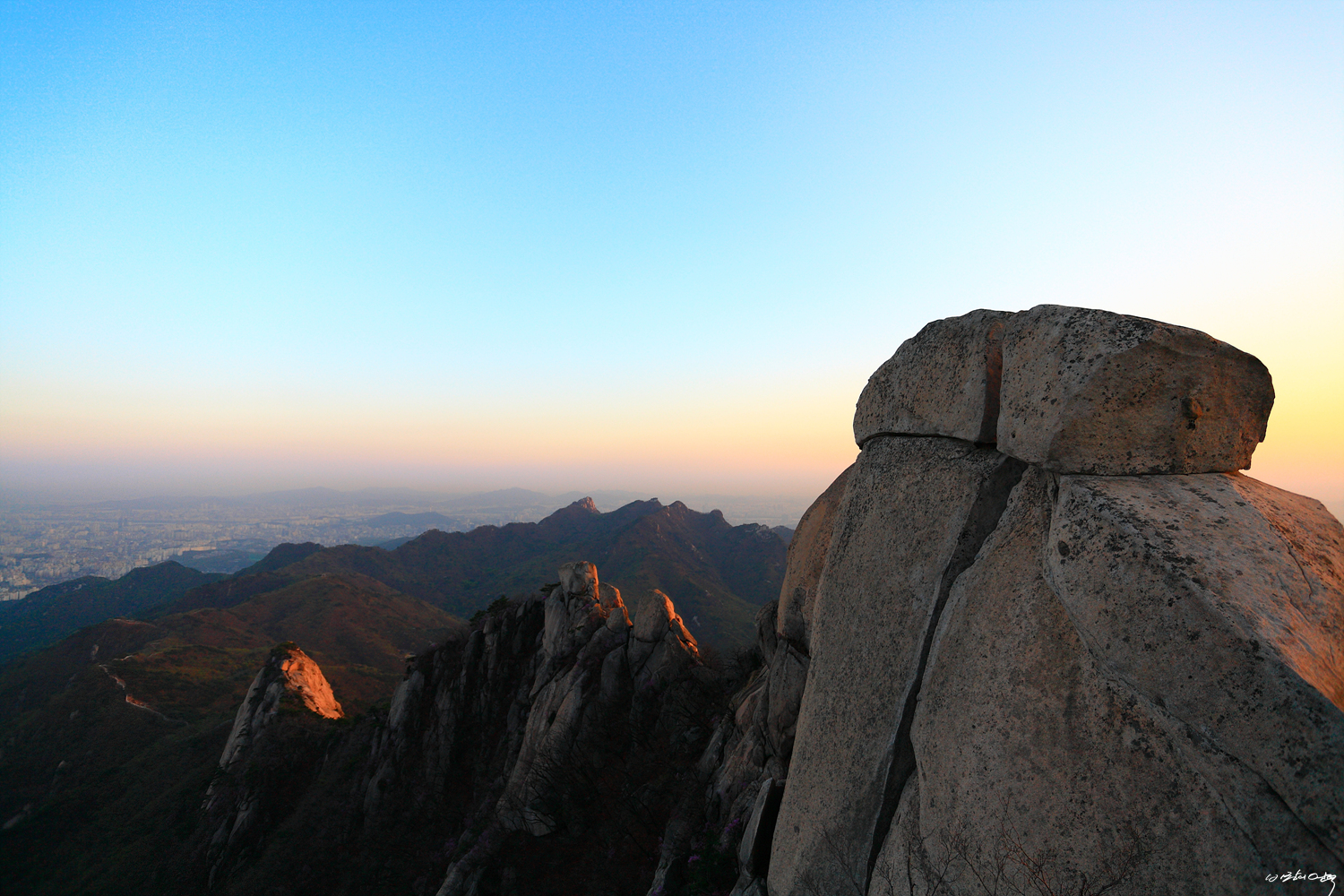 약수암리지 그리고 노적봉과 멀리 의상능선이 시원스럽게 반겨줍니다.