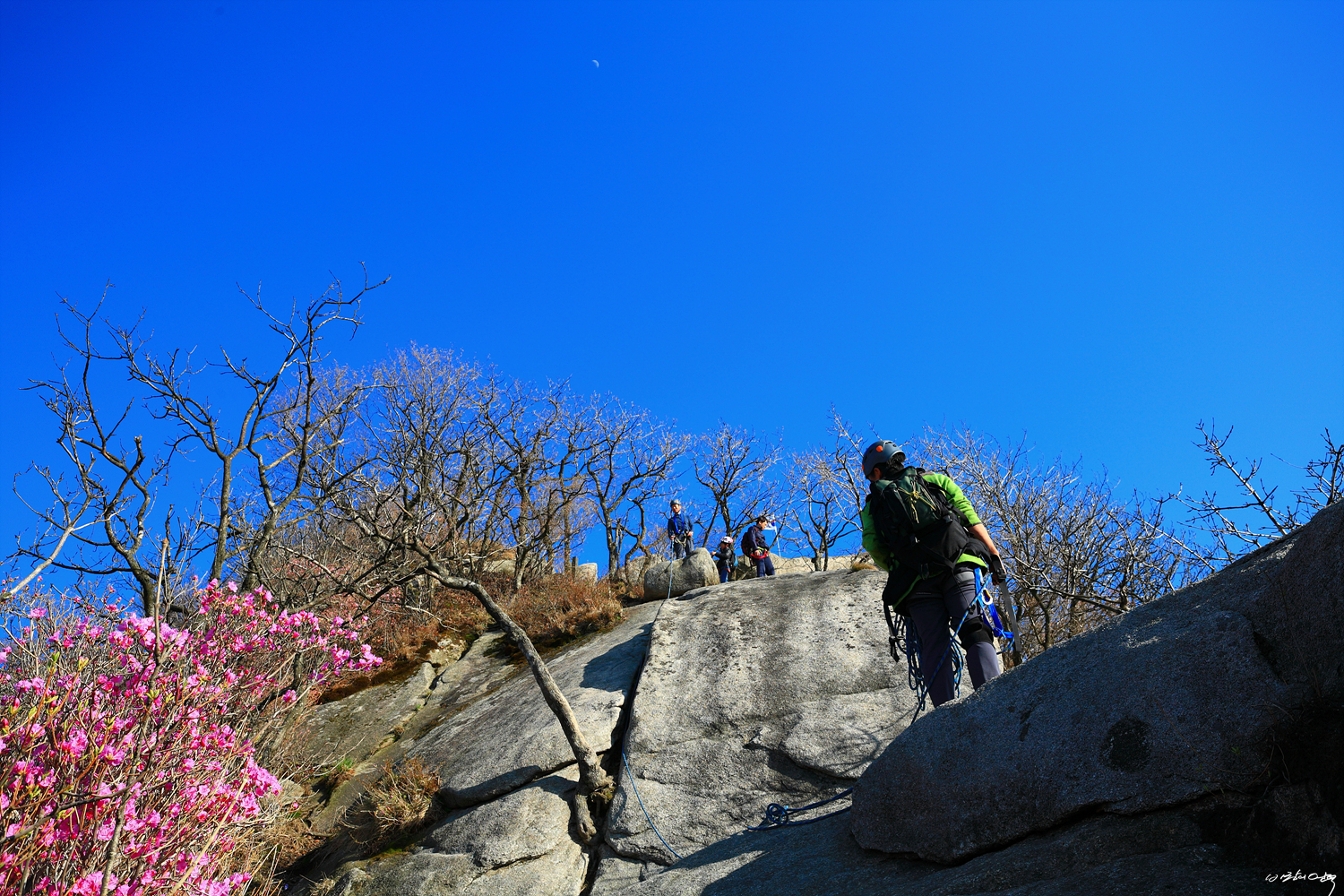 앞서가던 암벽팀이 말바위구간을 막 넘고 있습니다.