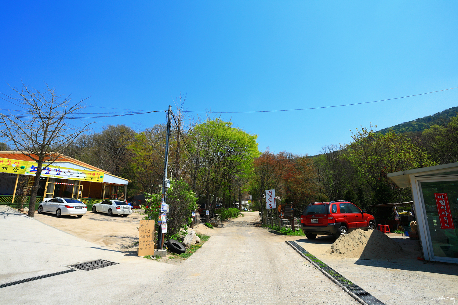 산하는 마치 연두색통을 흩뿌린 듯 온통 파스텔톤으로 채색되어 가는데
