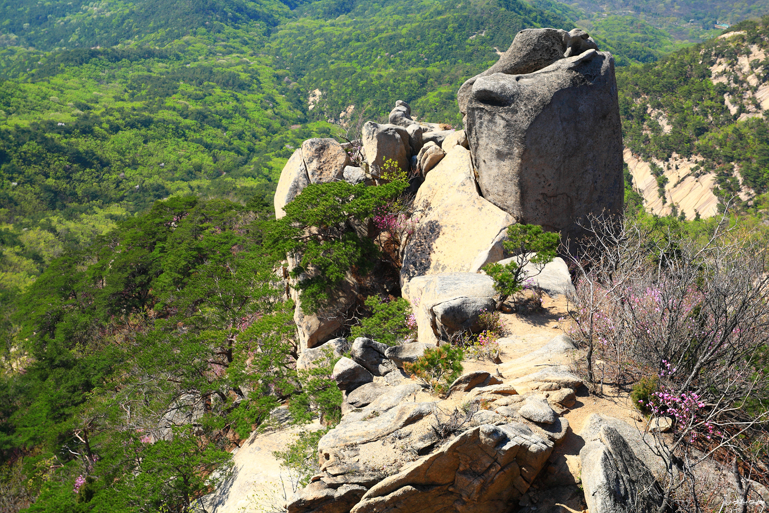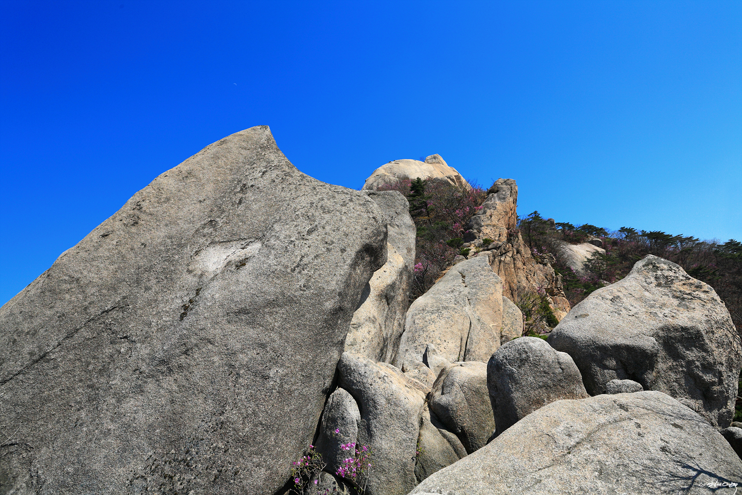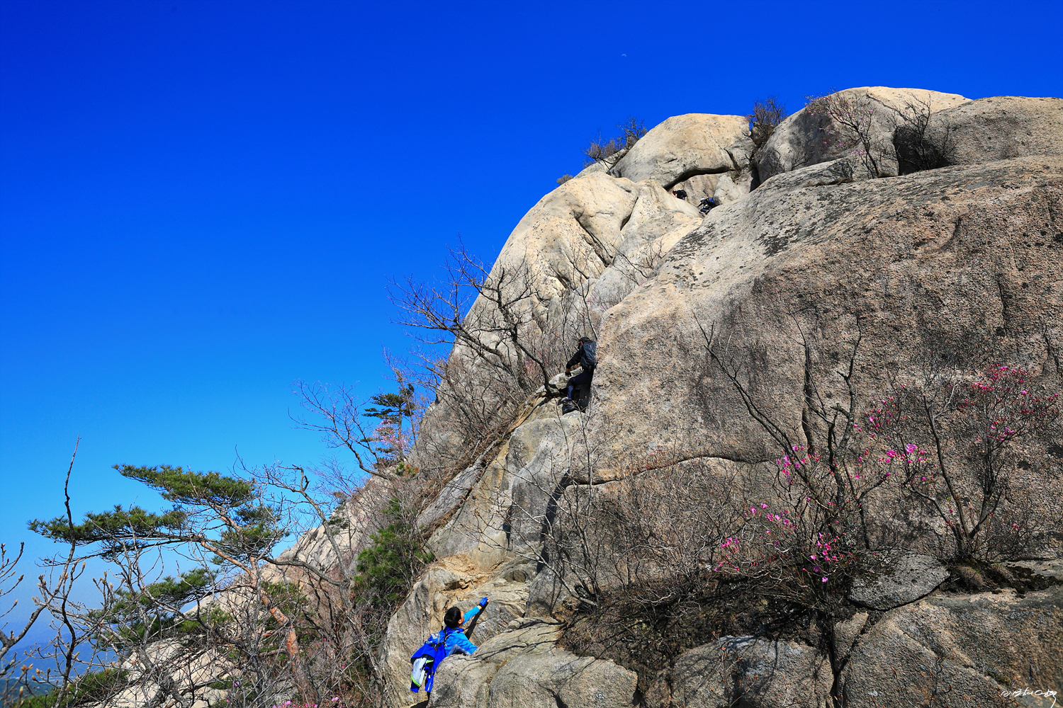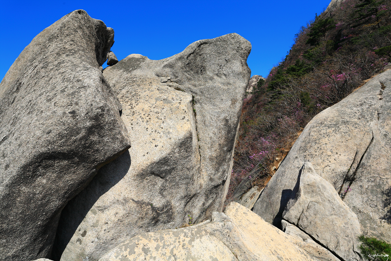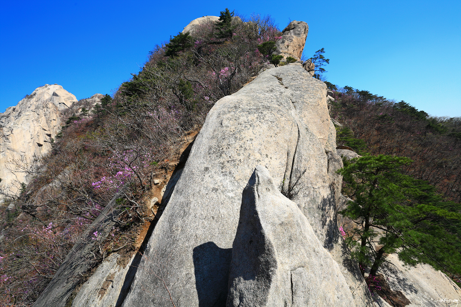 파랑새바위를 뒤로 슬랩을 올라서면 어금니바위와 돌고래바위를 만납니다.
