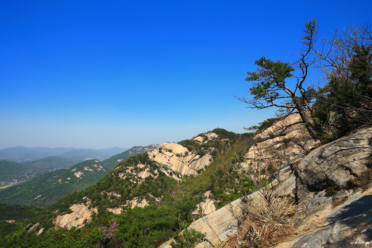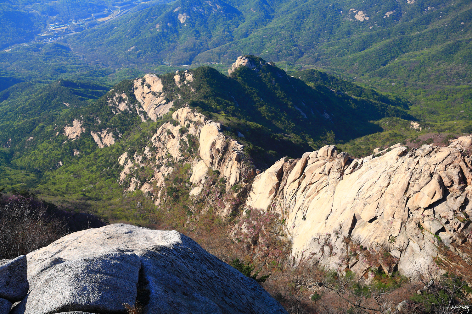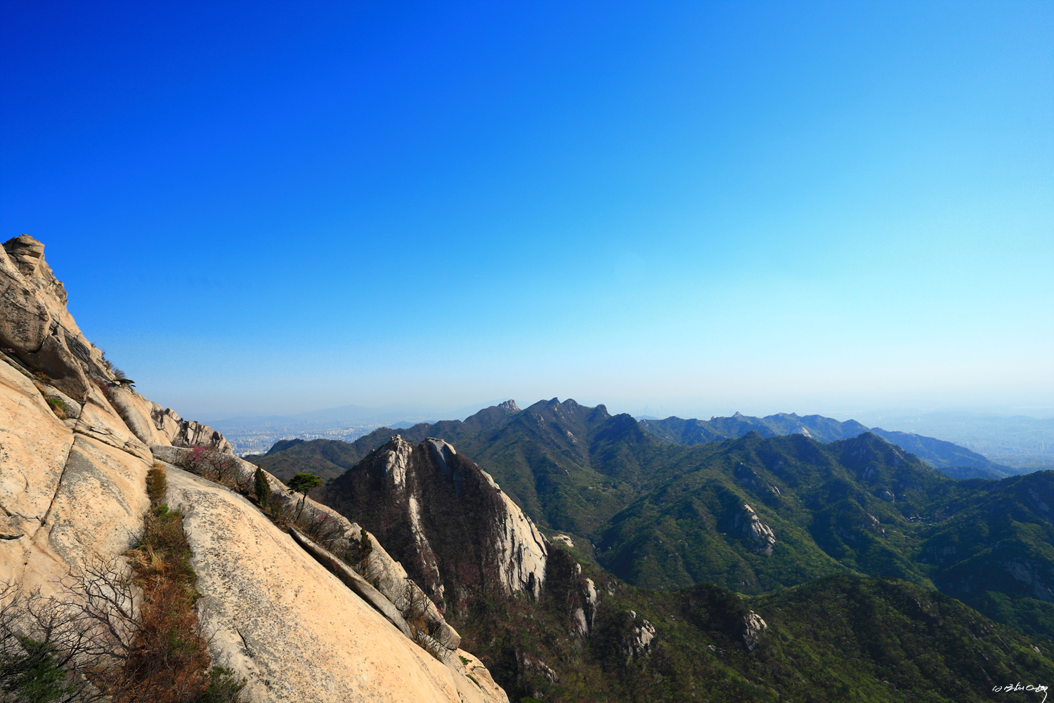 오른쪽 염초1봉과 그 뒤로 북장대지능선 그리고 의상능선과 맨 뒤 비봉능선까지...