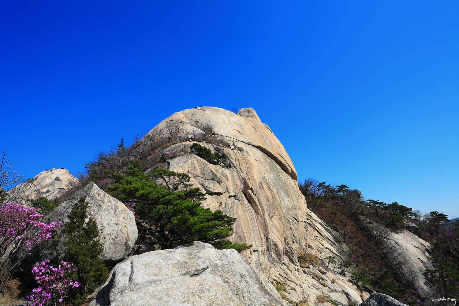 삼각산 염초라인의 명물인 춘향이 엉덩이 바위입니다.