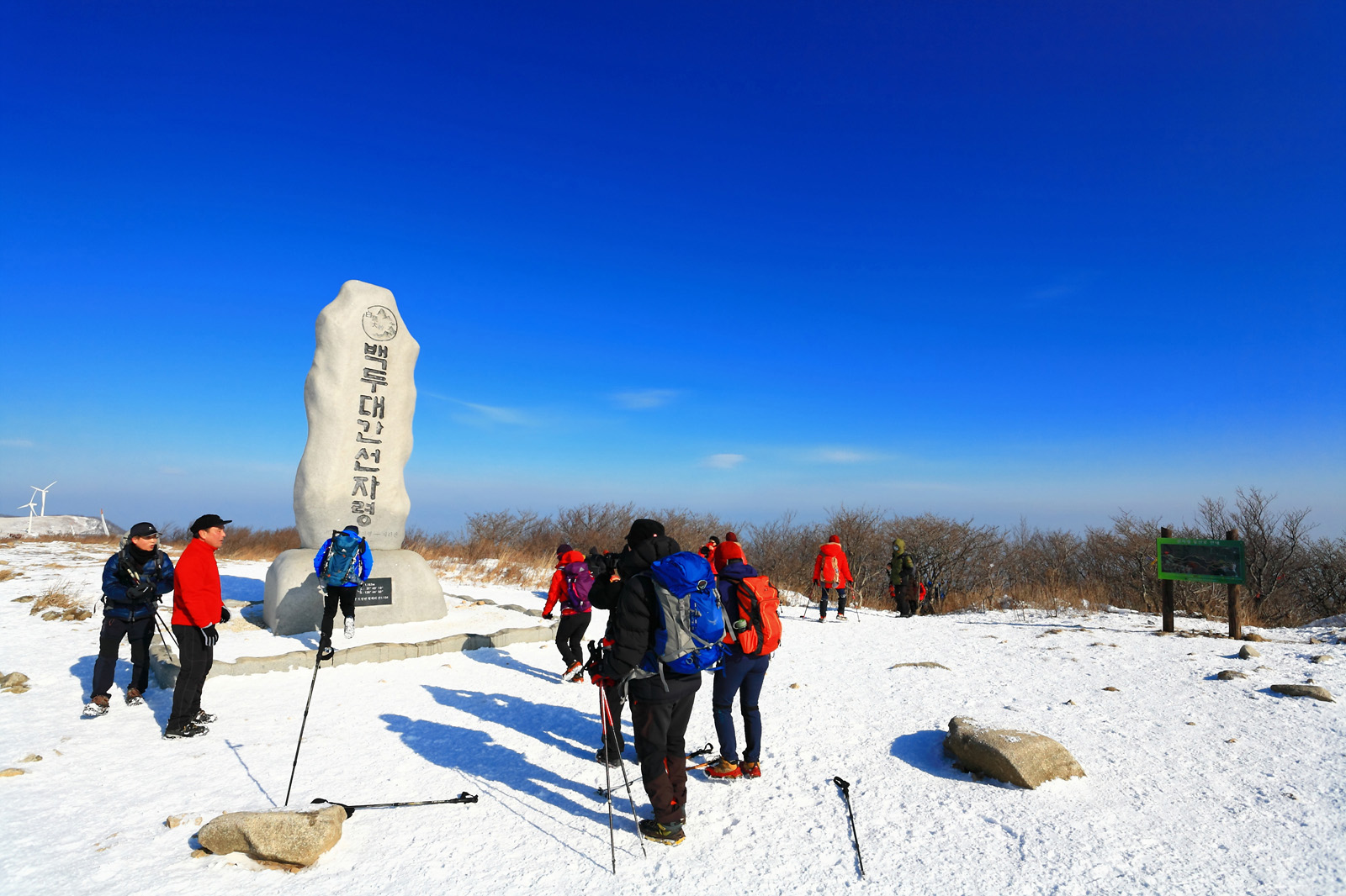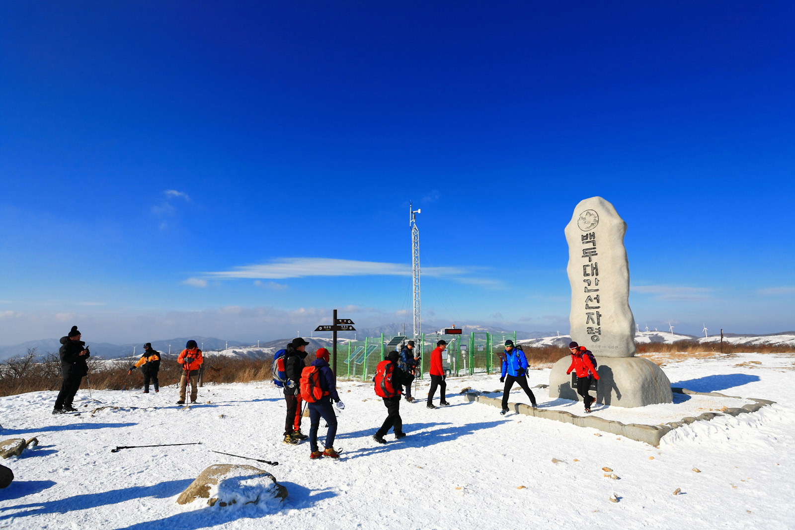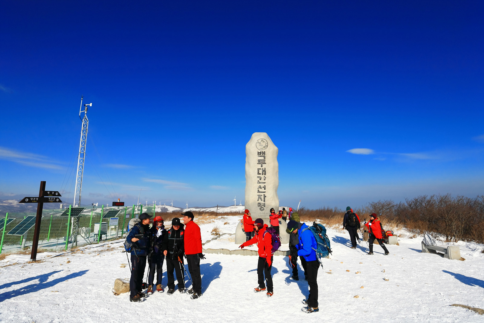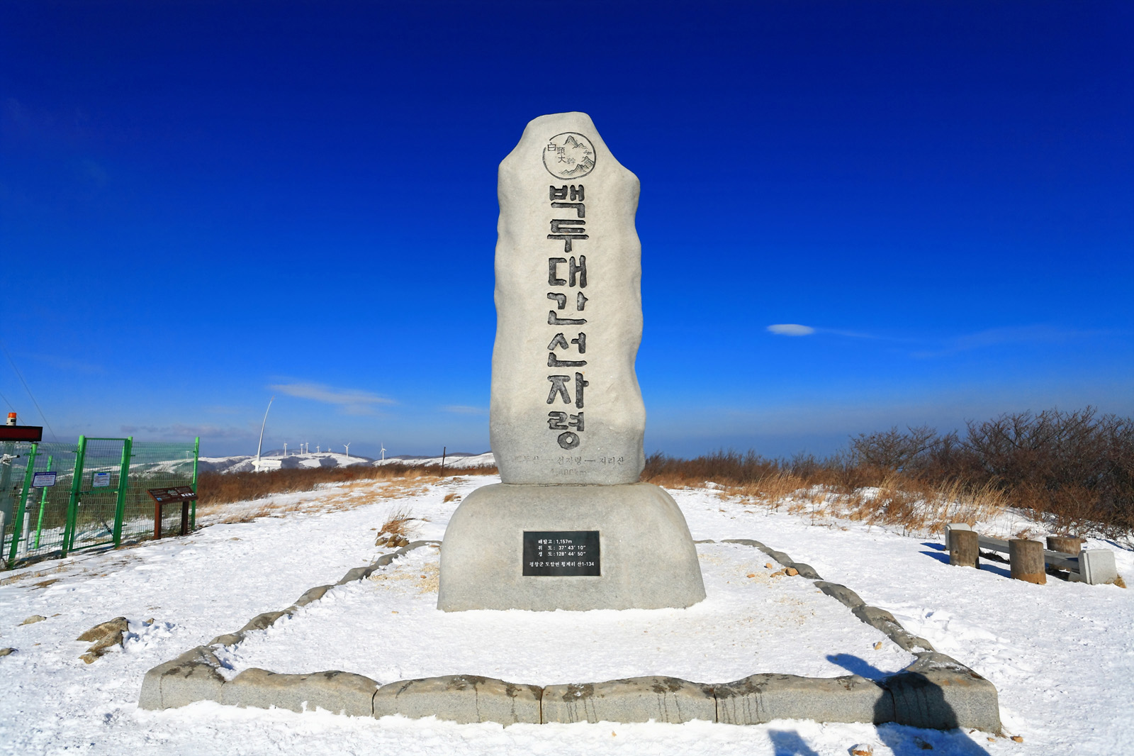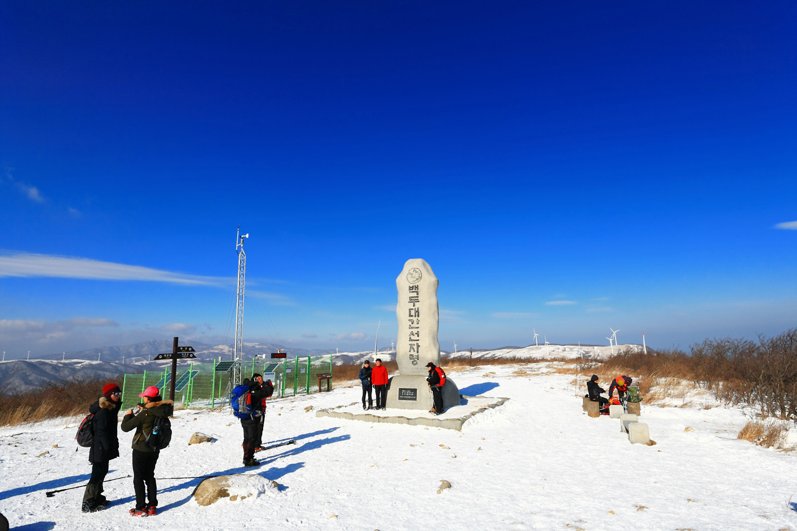 선자령 정상 백두대간 표지석에 올라서니
