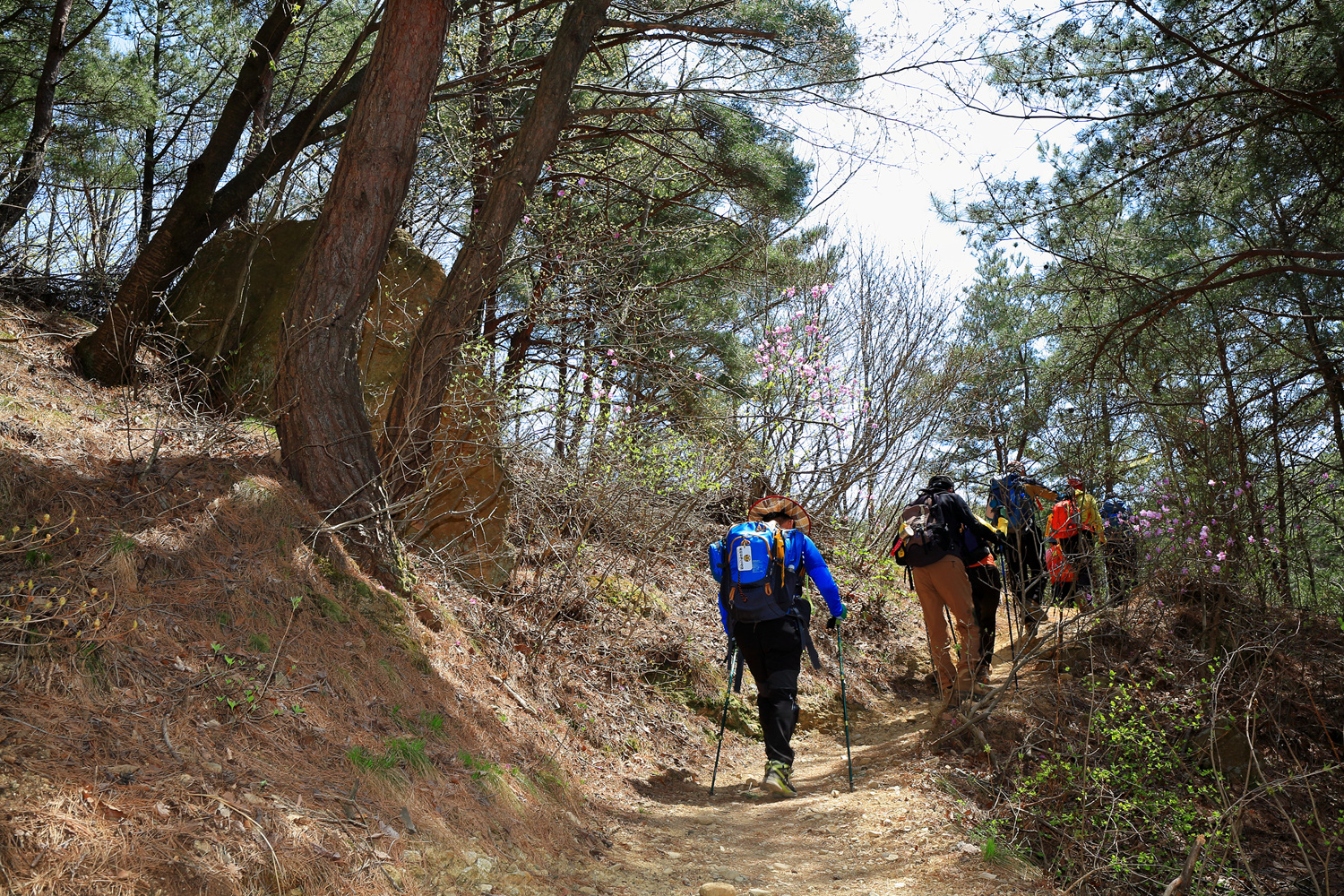 시끌벅적한 벗꽃터널길을 빠져나와 비룡대행 등로로 접어드는데...