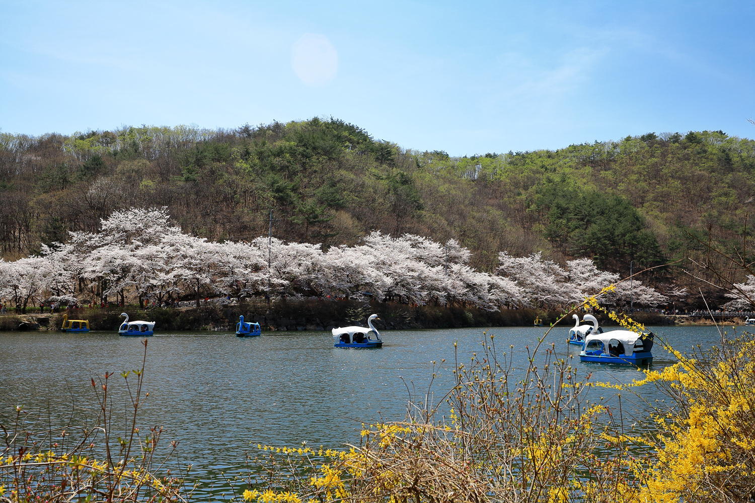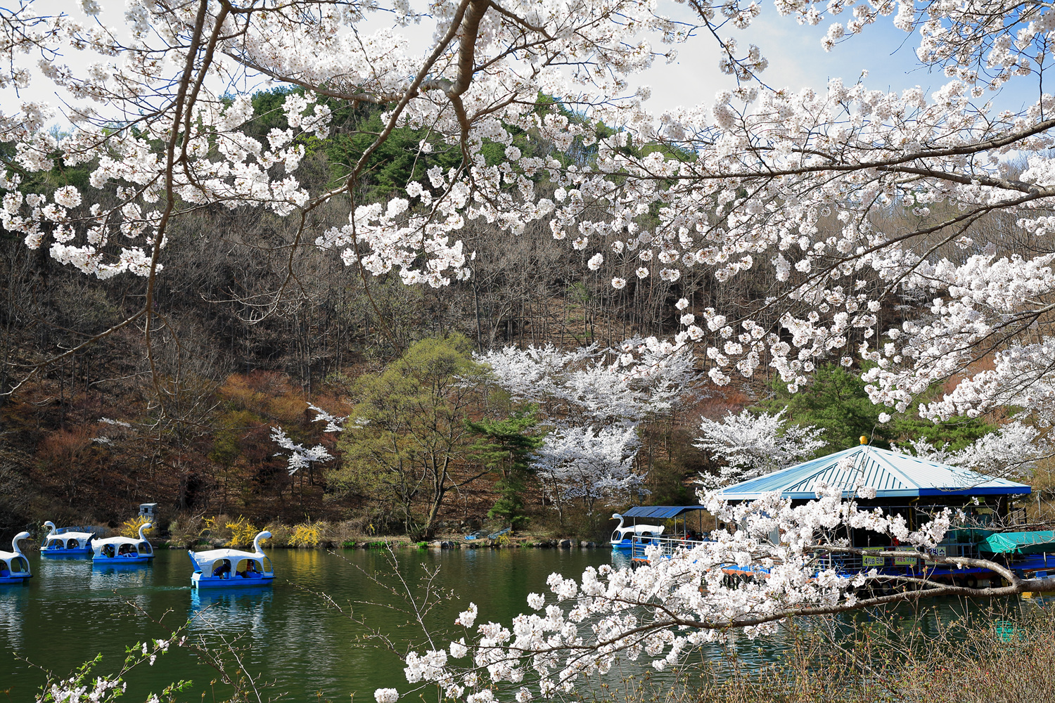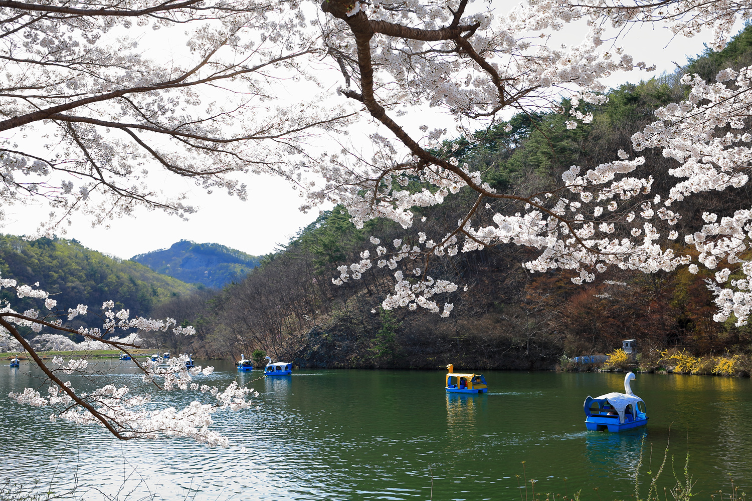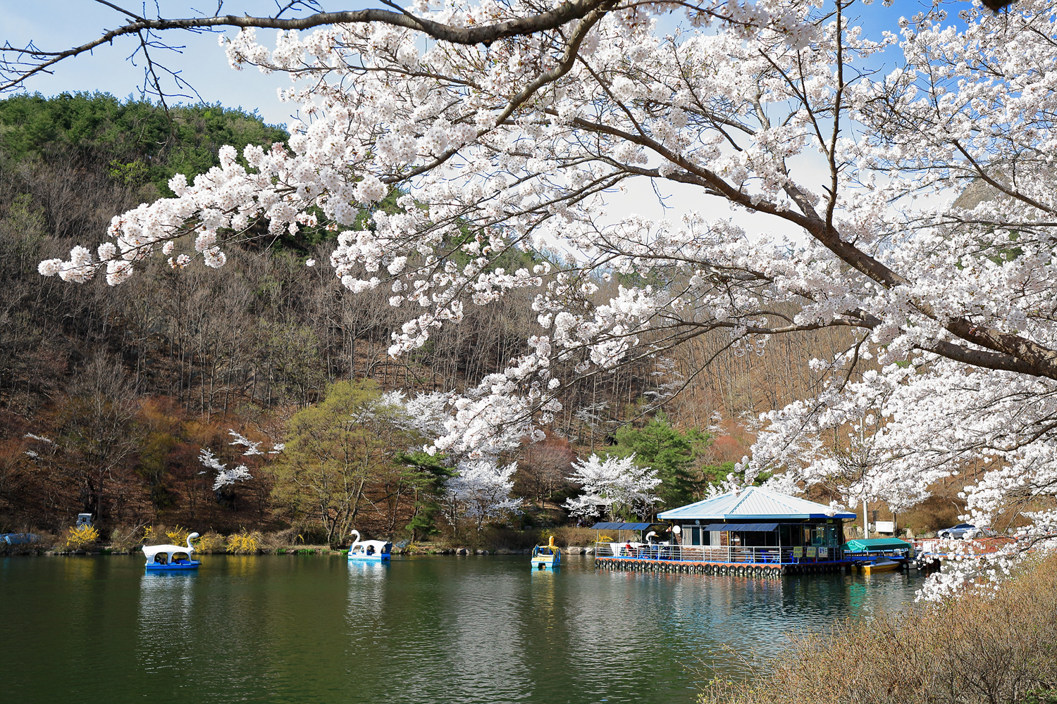 오리배 매표소를 끼고 저수지 뒤로 가봅니다.
