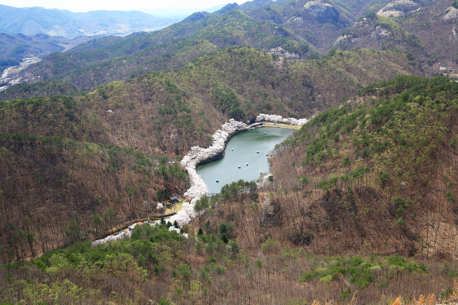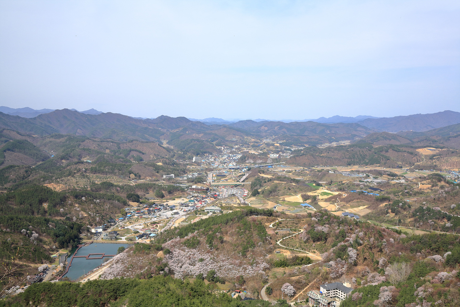 바로 저 뷰포인트에서 담는 벗꽃길과 탑영제 그리고 마이산의 풍경이야말로