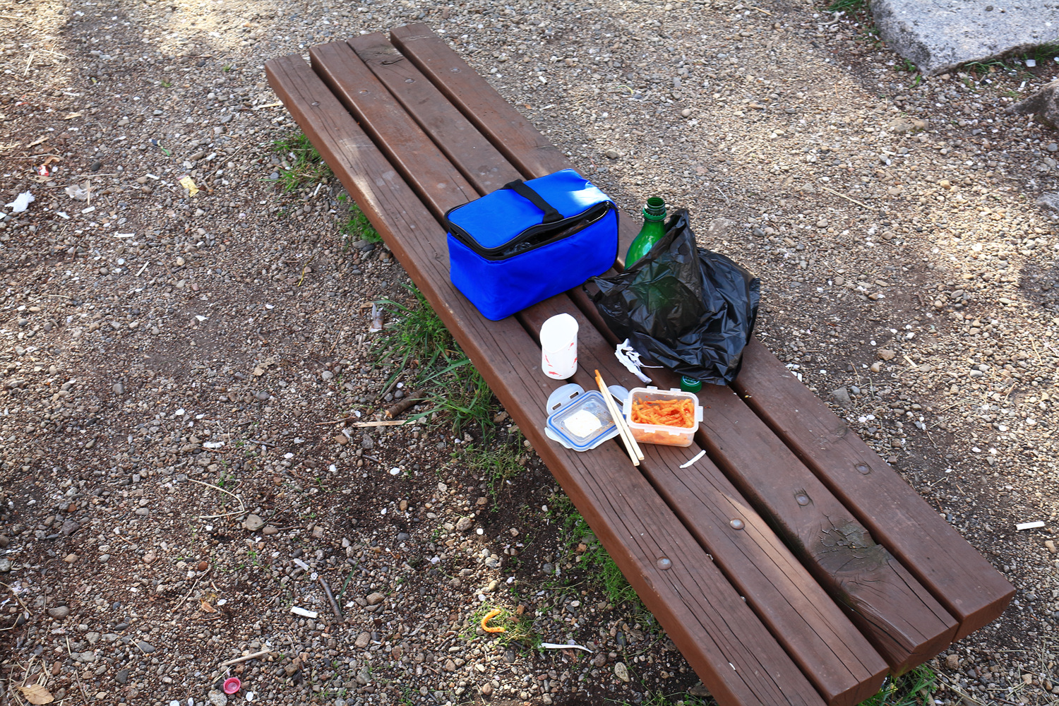 시원한 물폭포를 품어내는 물레방아 옆 운치있는 정자에서 김밥으로 허기진 배를 채워봅니다.