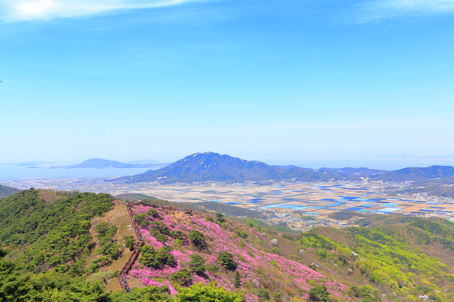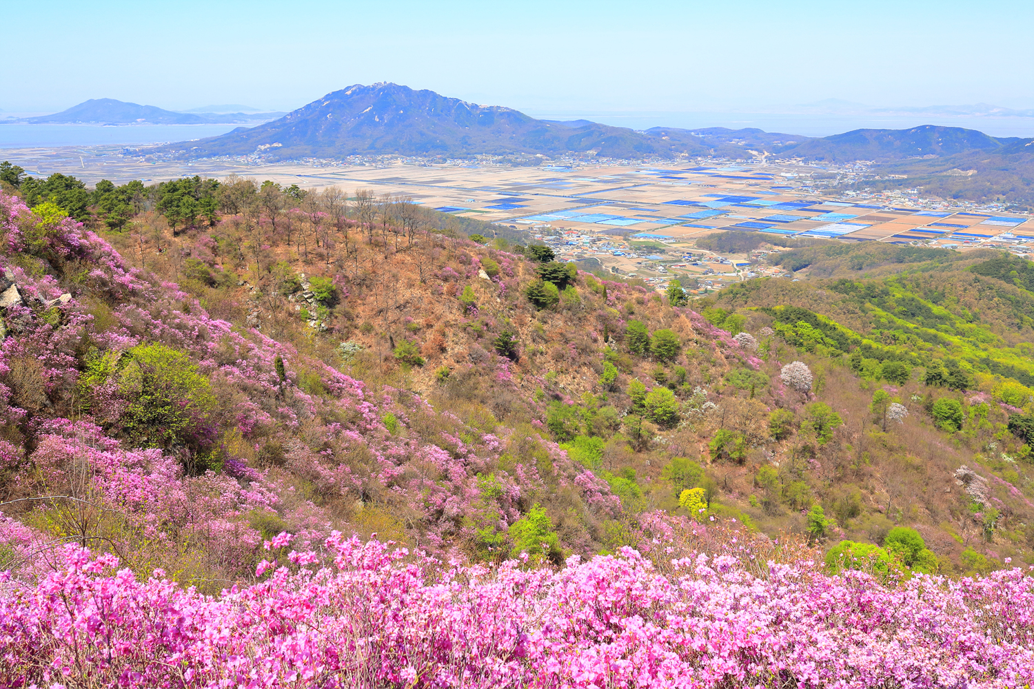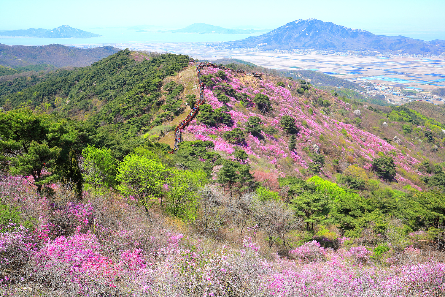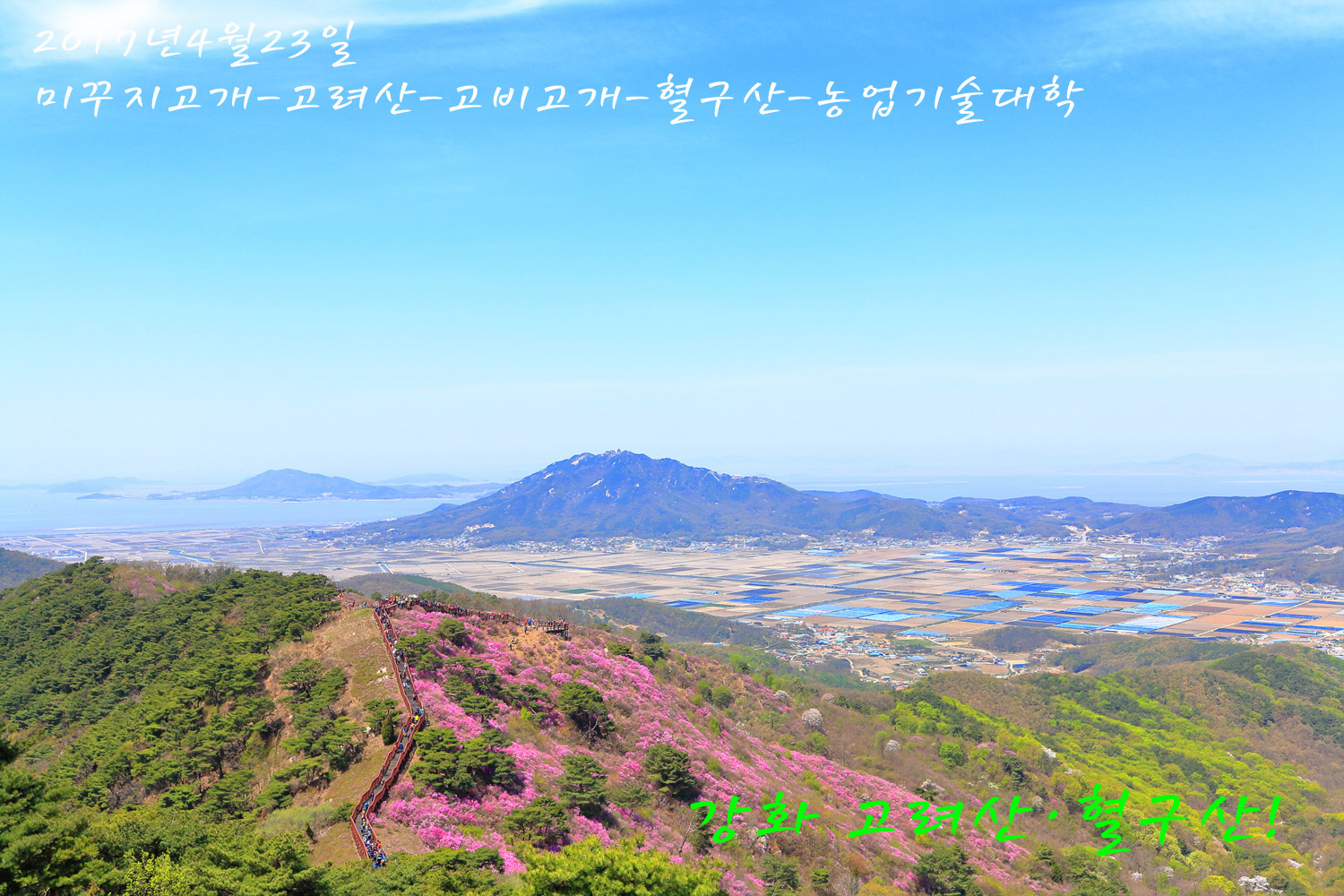 고려산의 화려한 진달래 화무를 뒤로