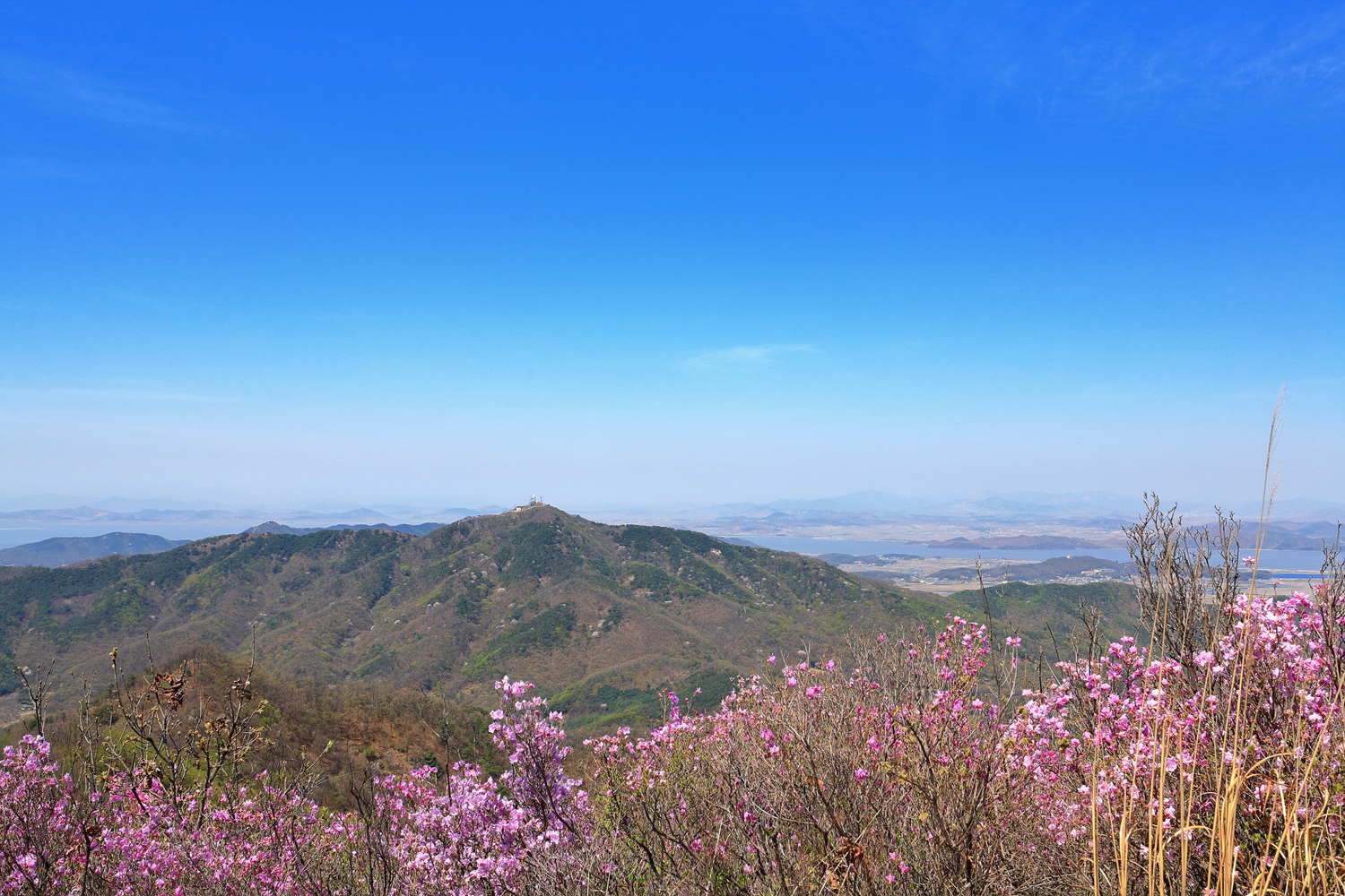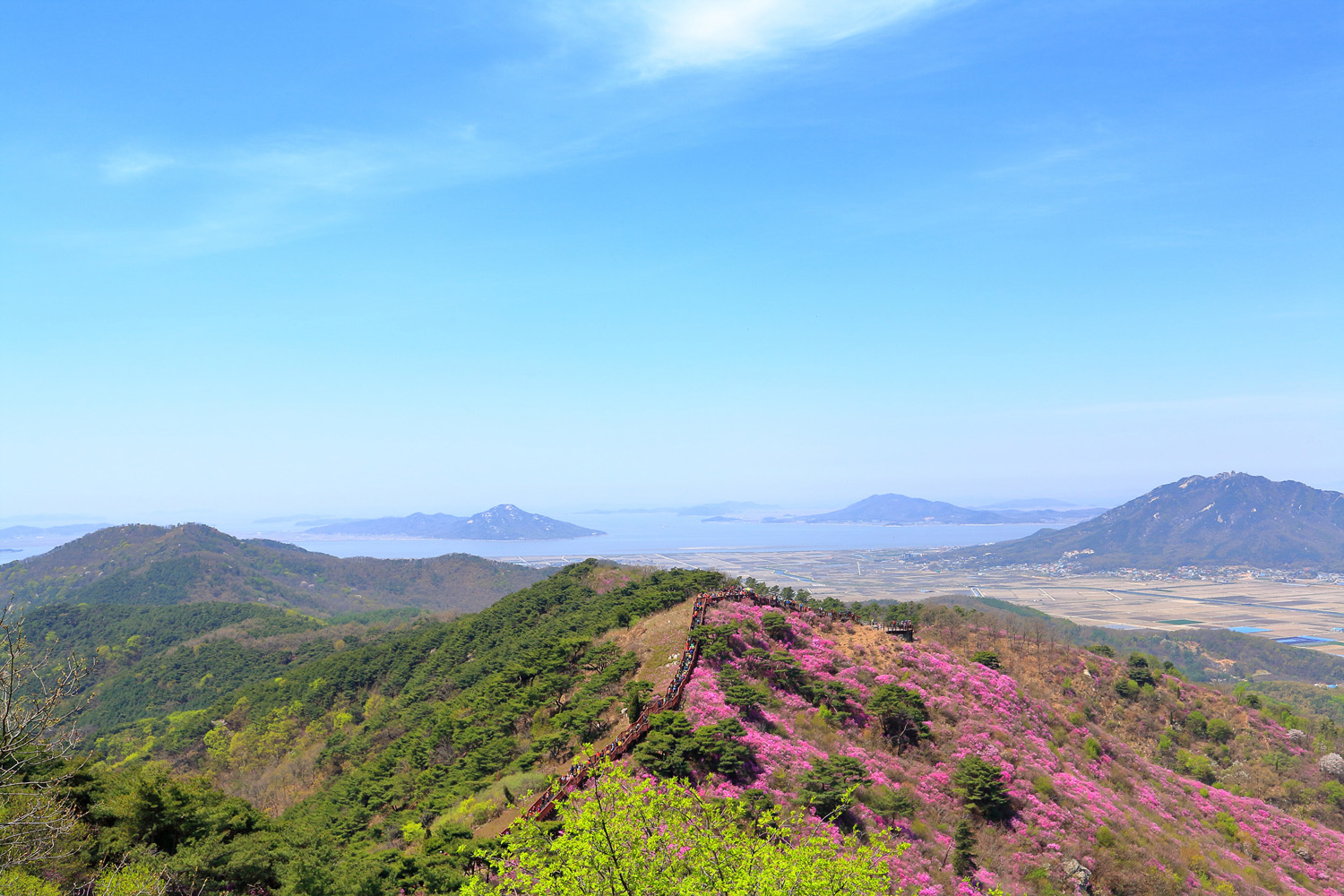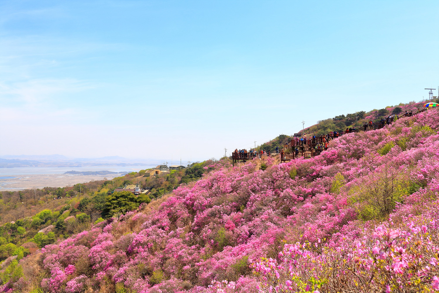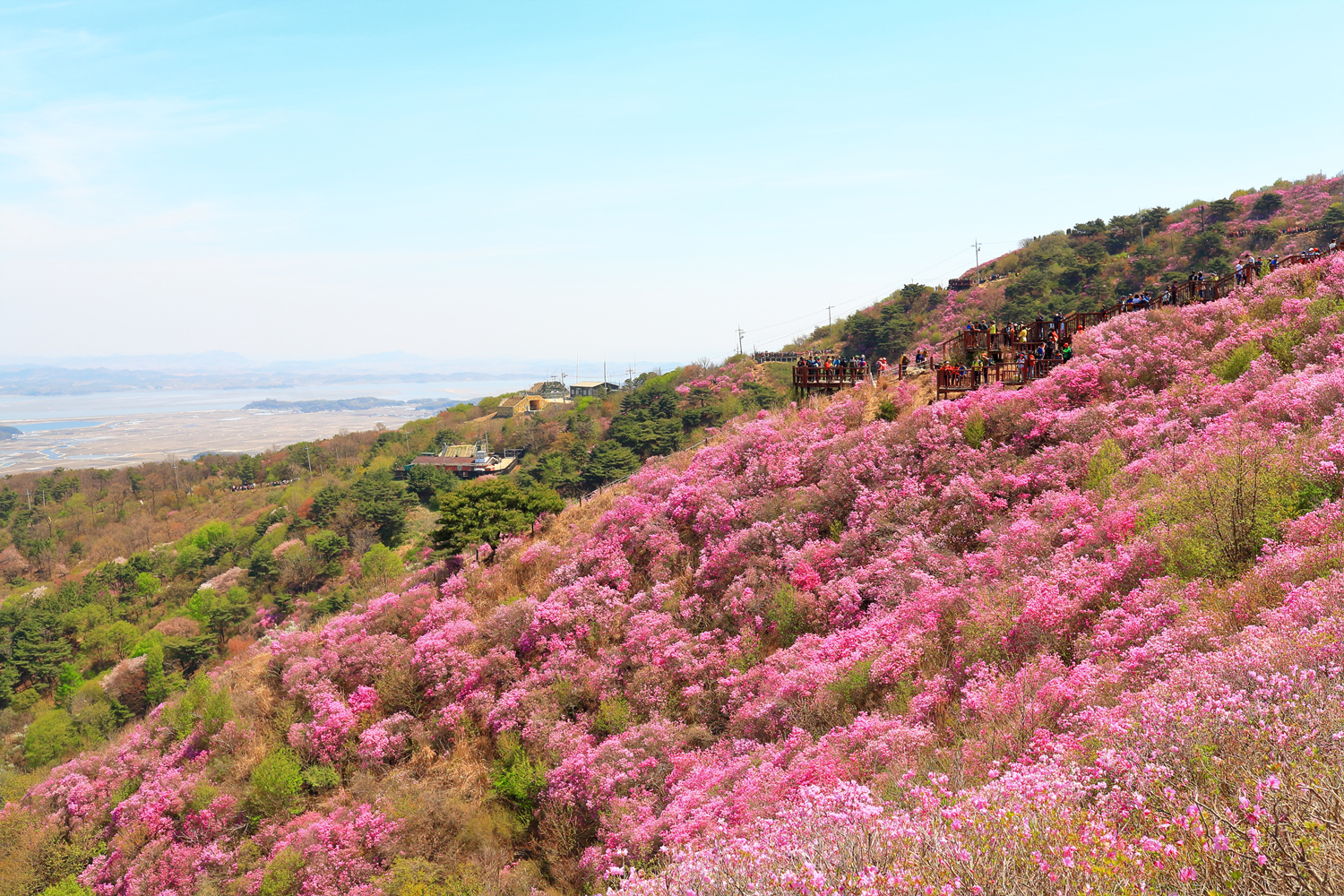 고려산의 화려한 진달래 화무를 뒤로