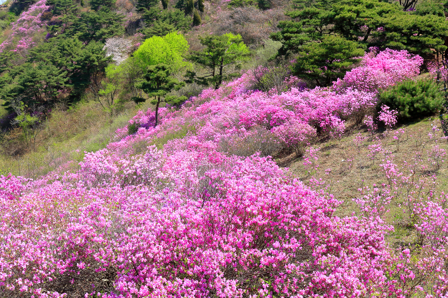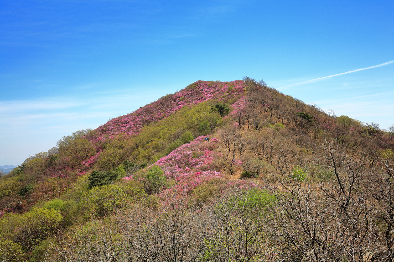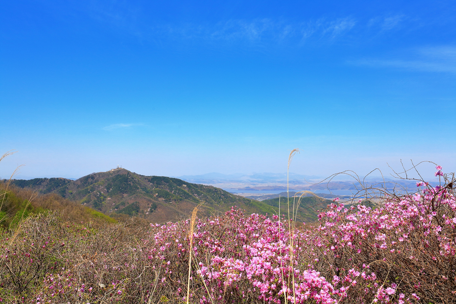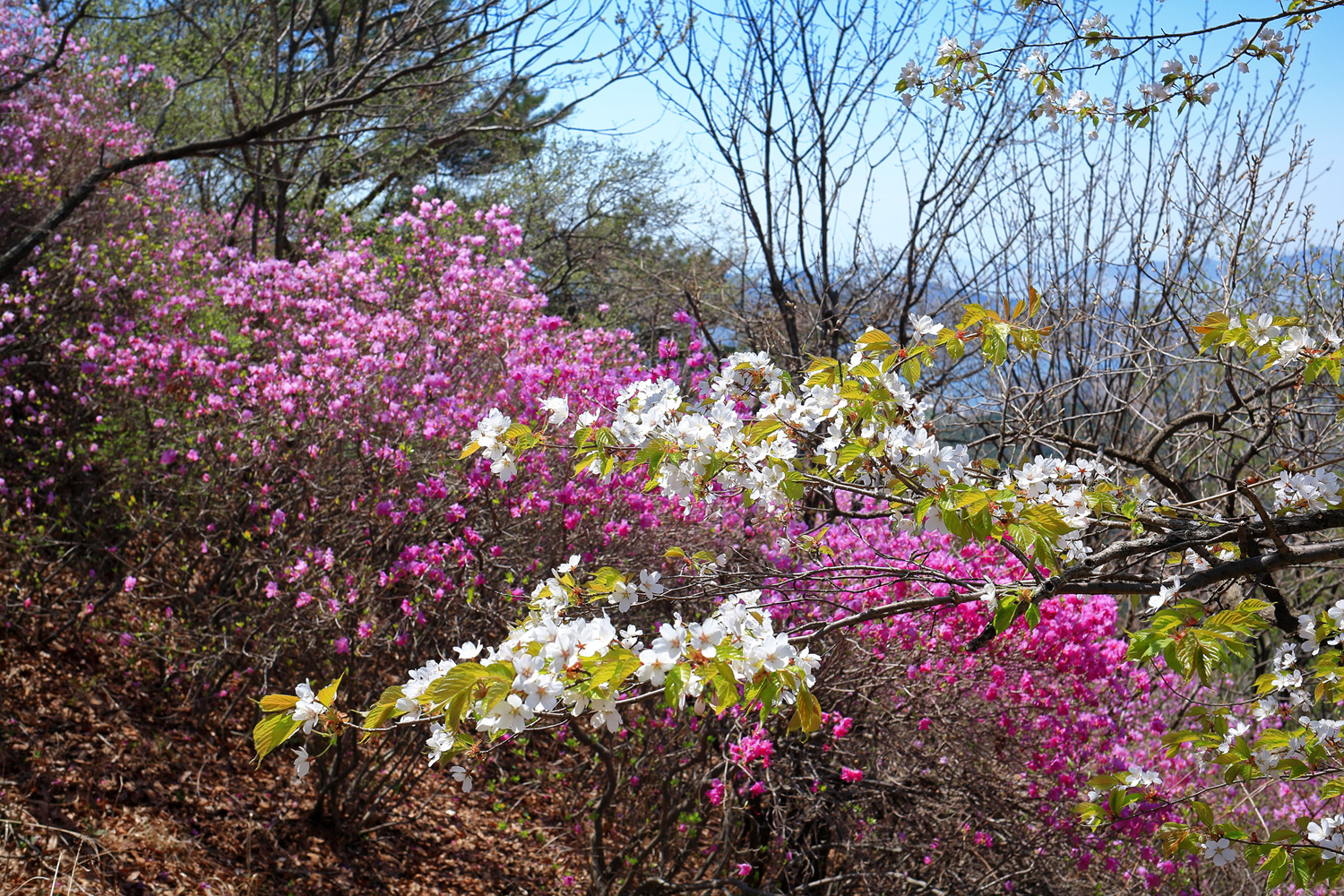 고려산의 화려한 진달래 화무를 뒤로