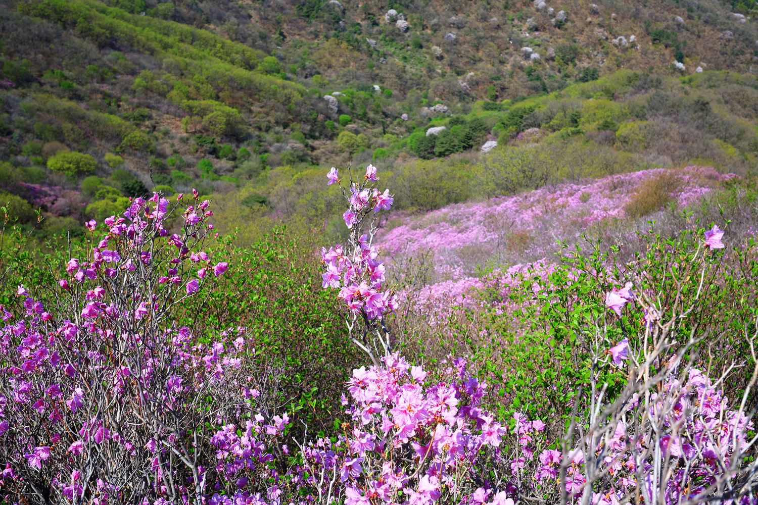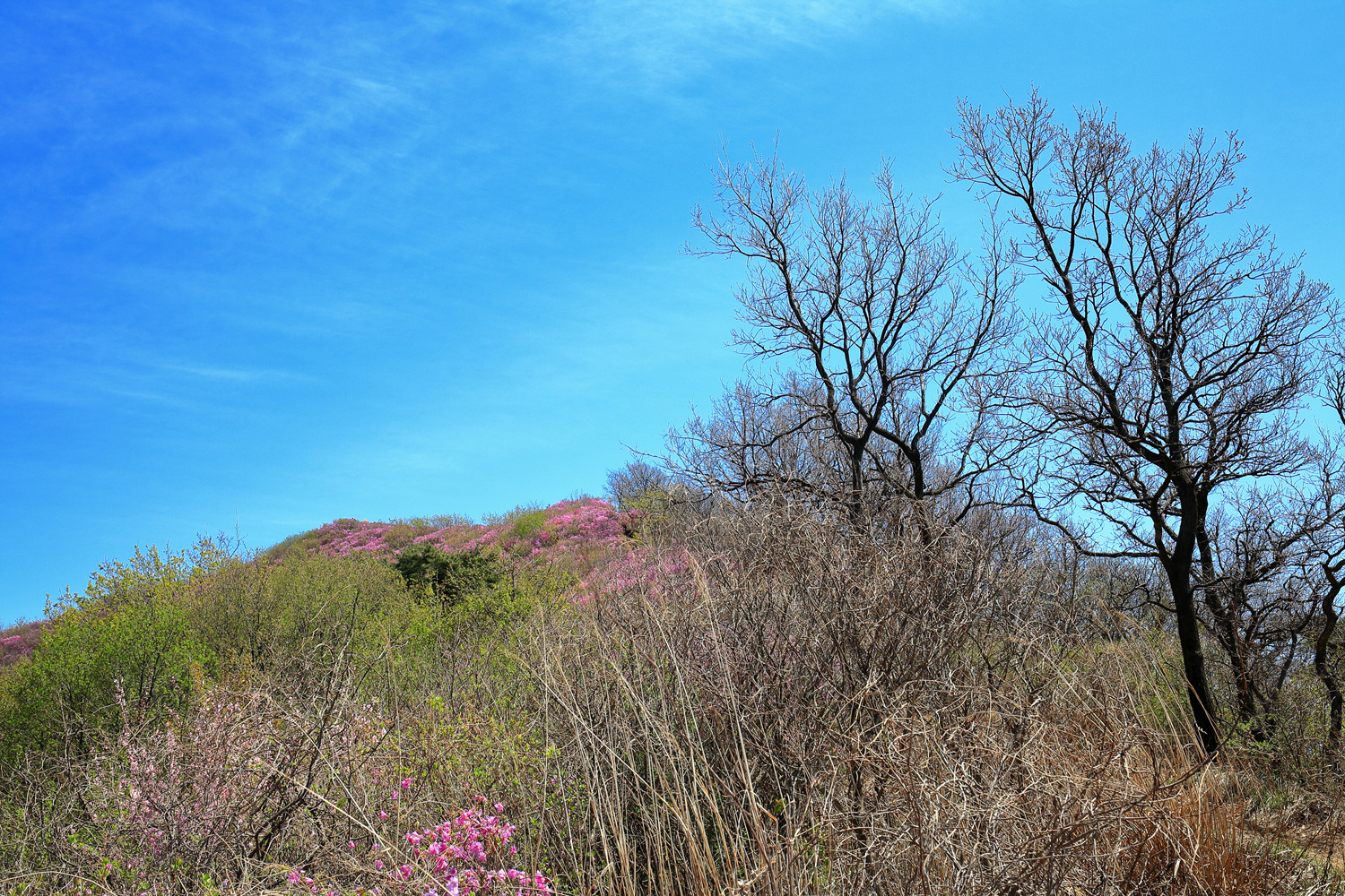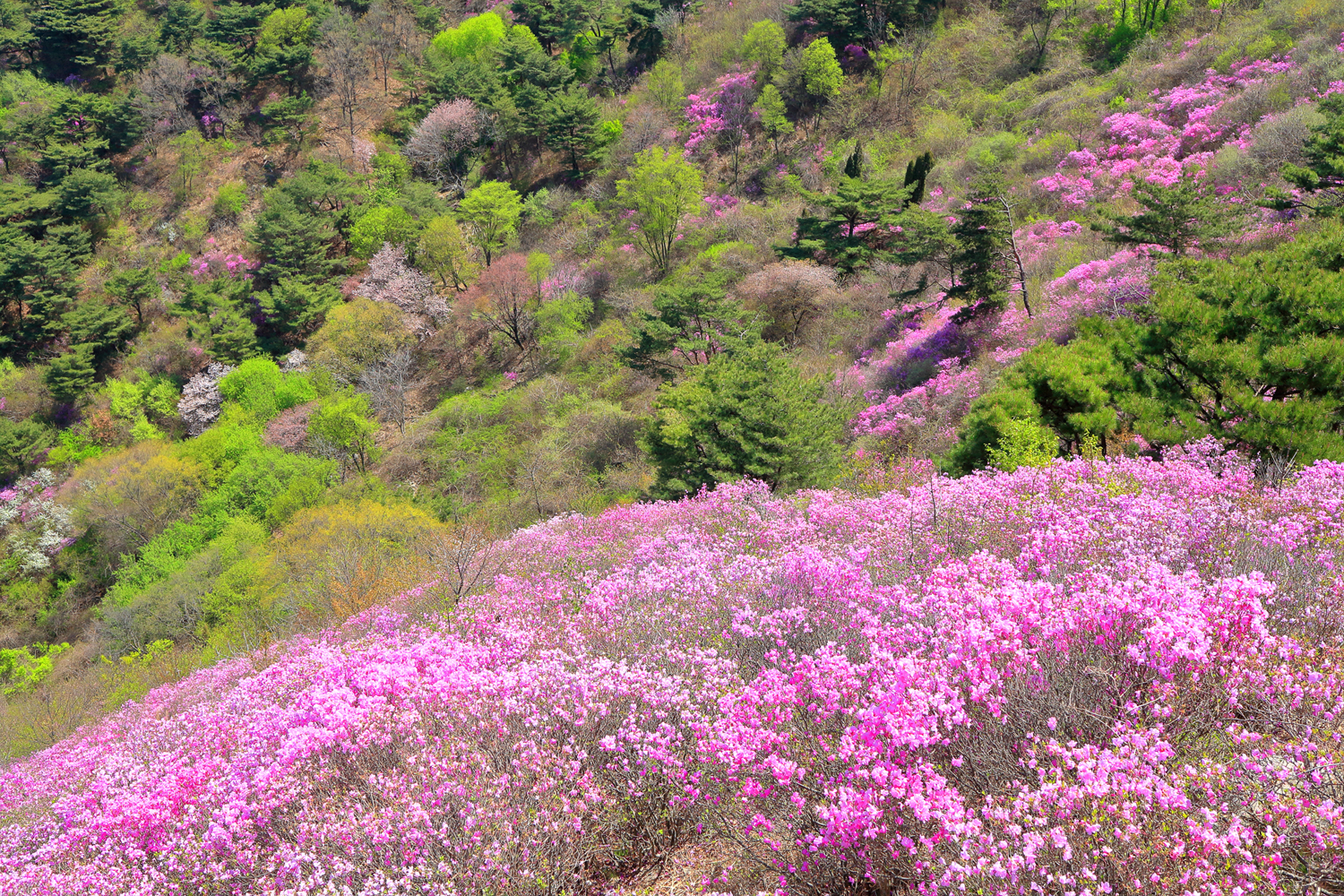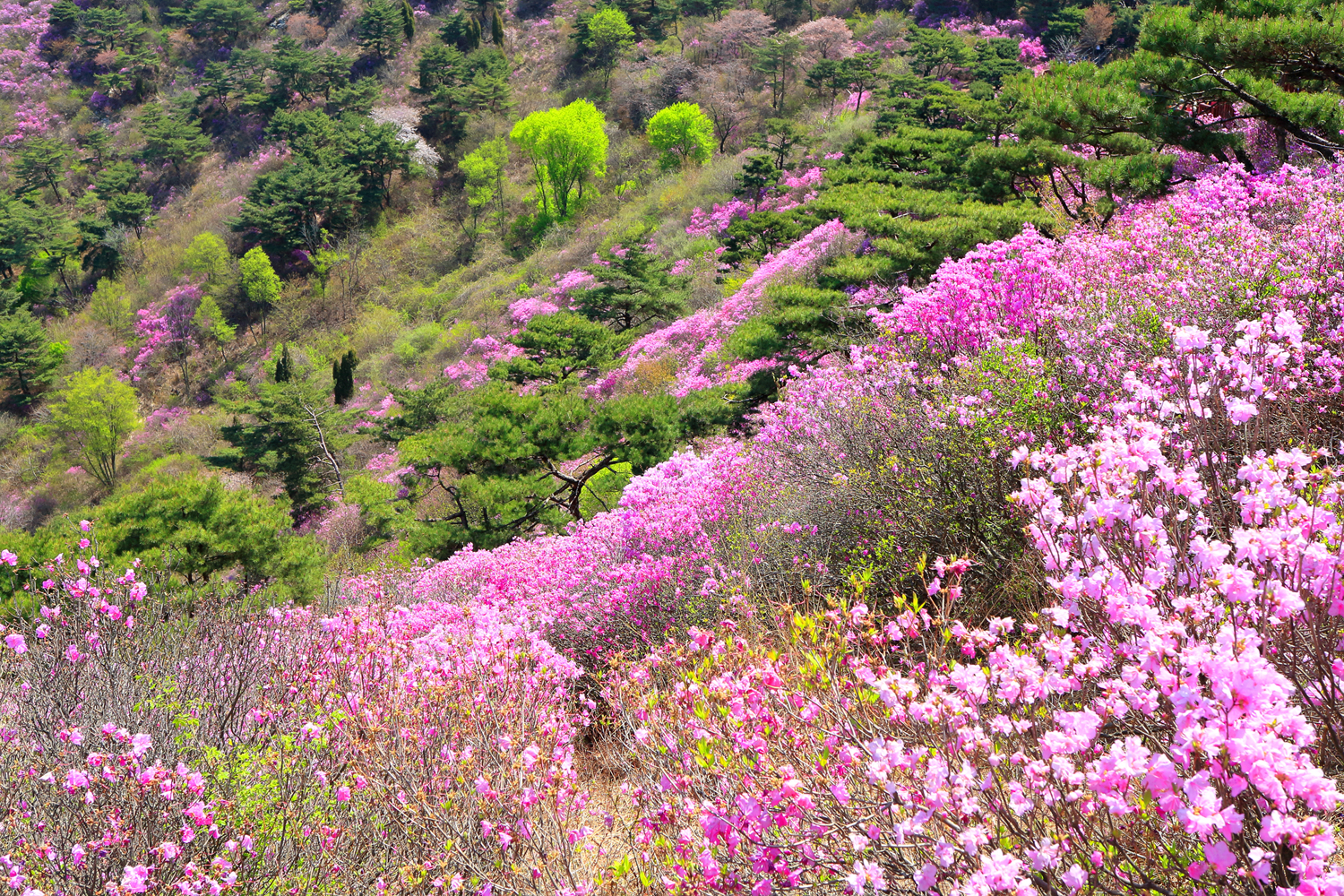 고려산의 화려한 진달래 화무를 뒤로