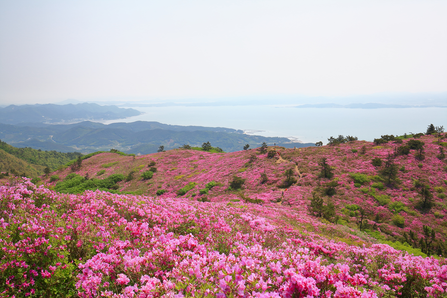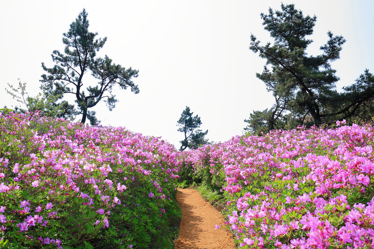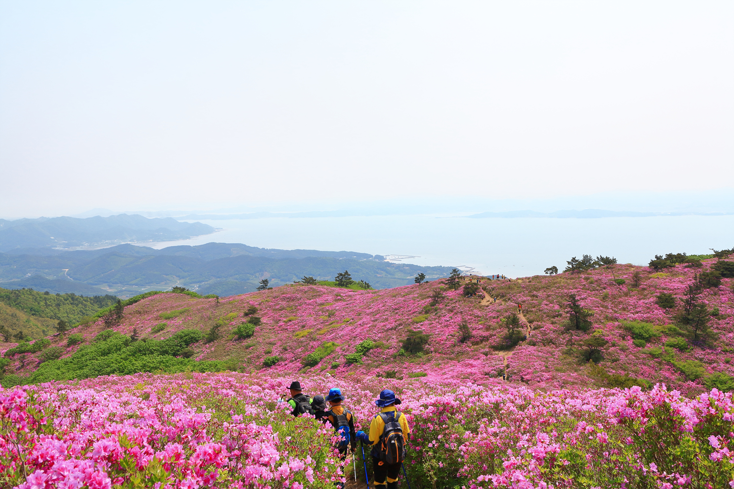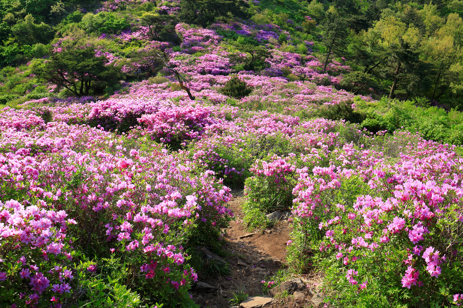 아침햇살 받으며 그 영롱했던 핑크빛 철쭉꽃길을