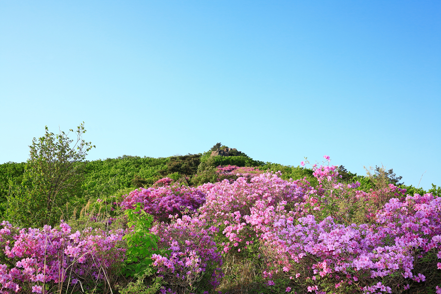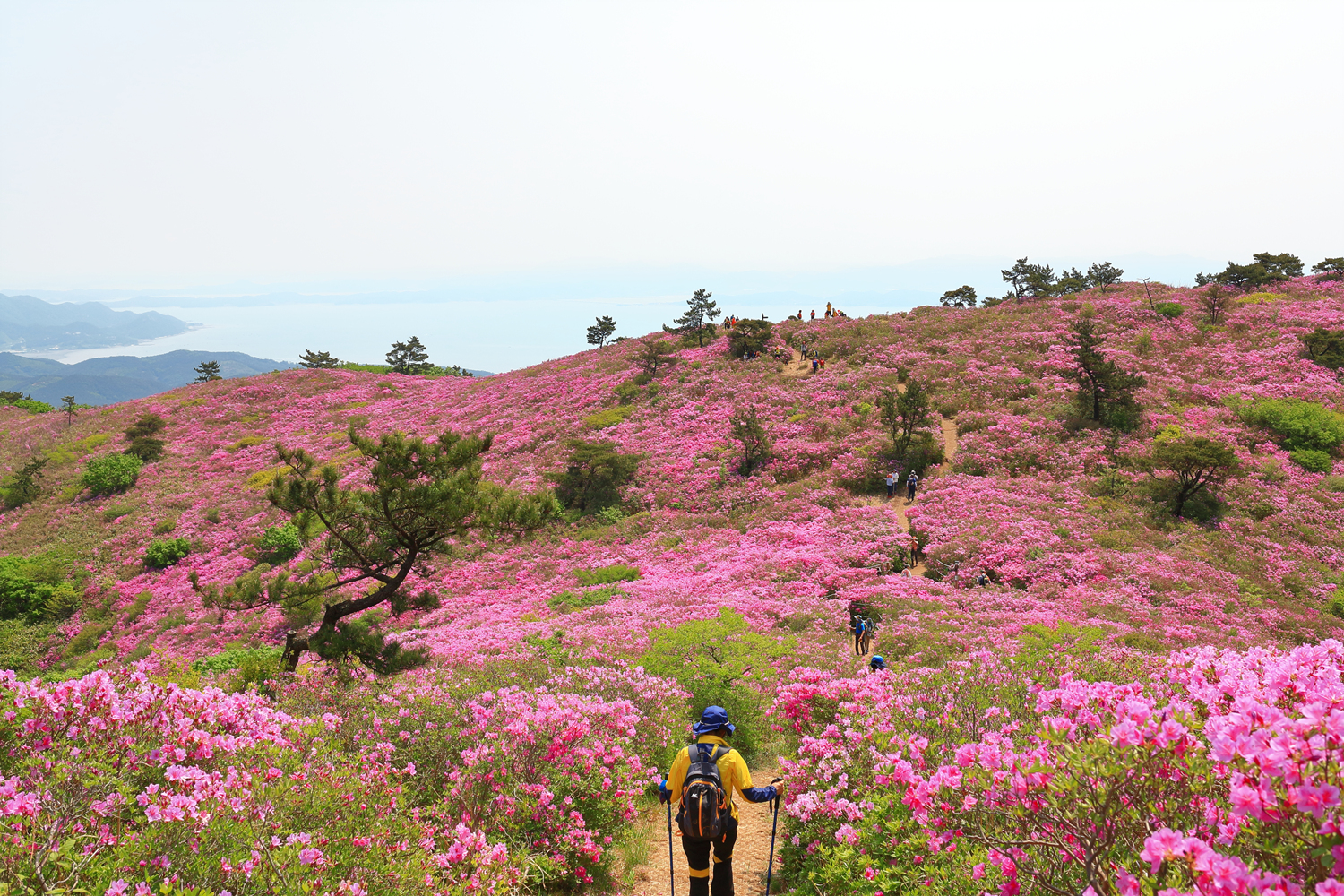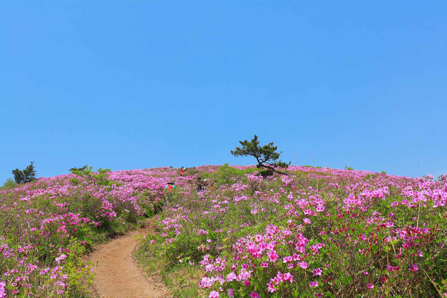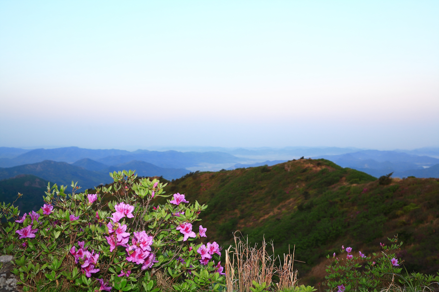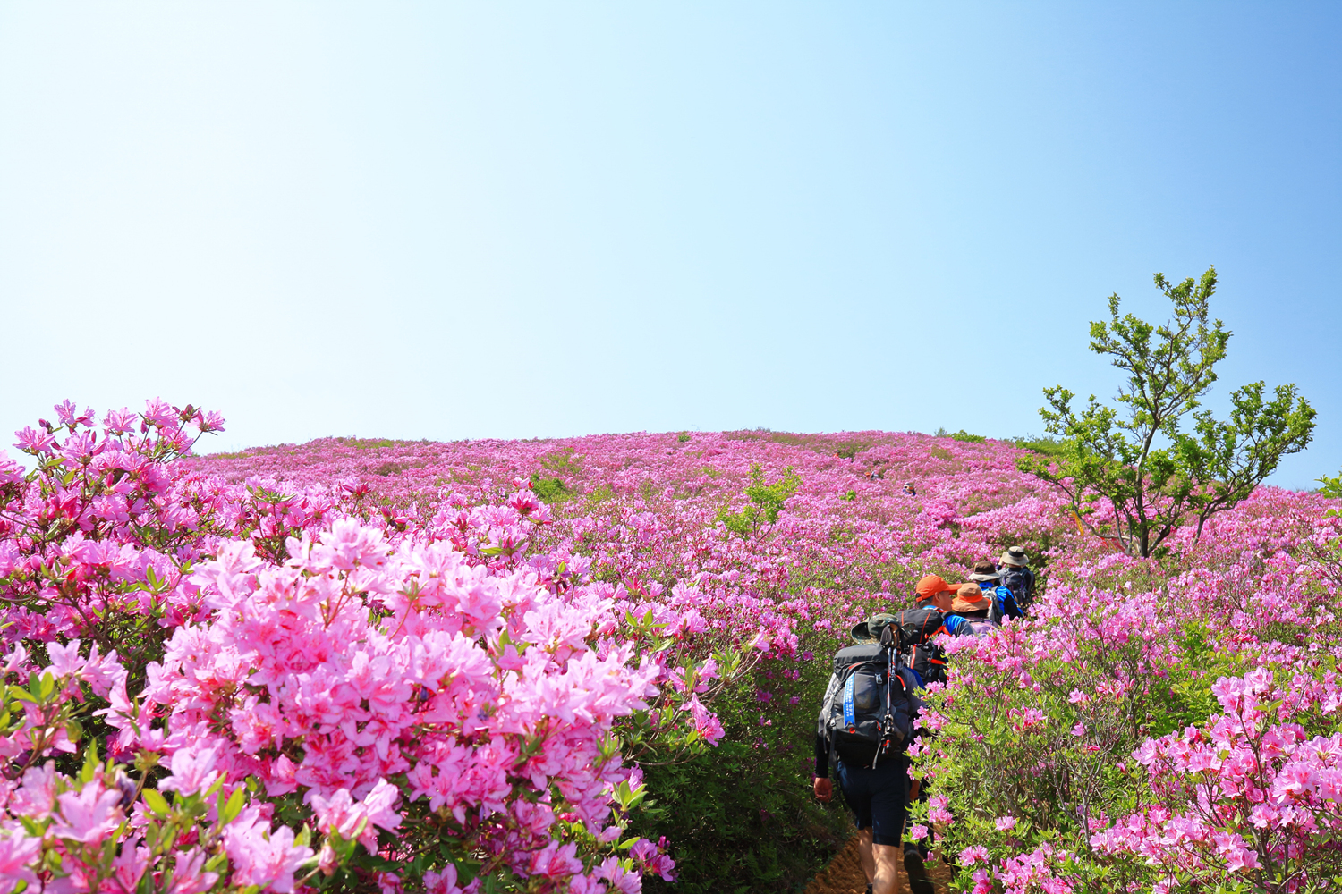 아침햇살 받으며 그 영롱했던 핑크빛 철쭉꽃길을