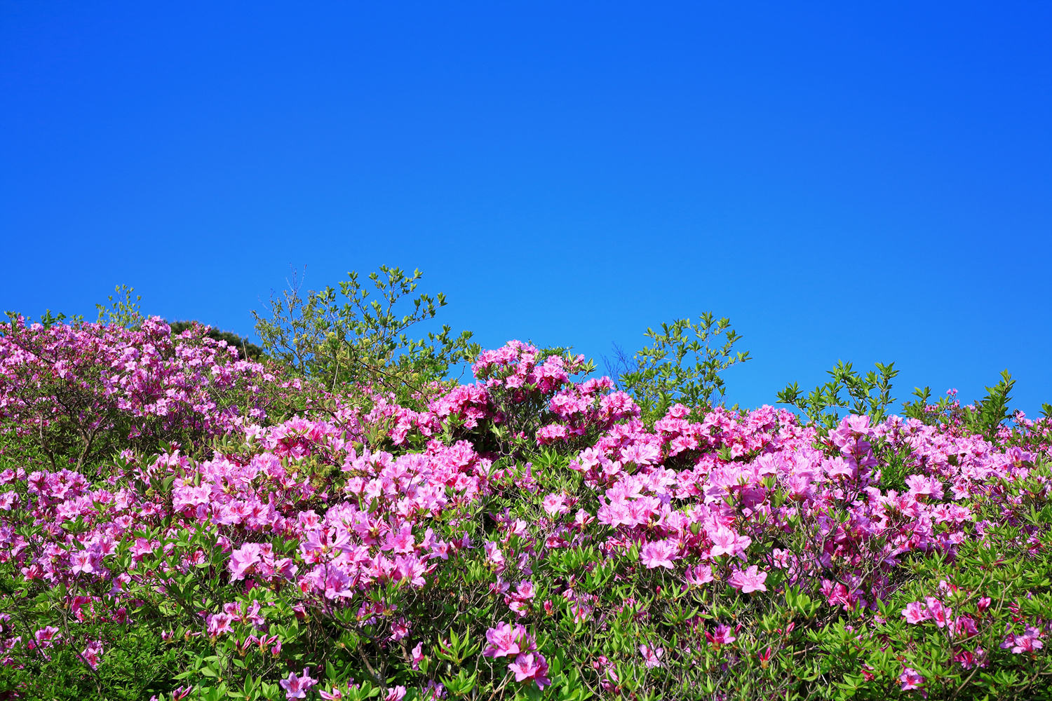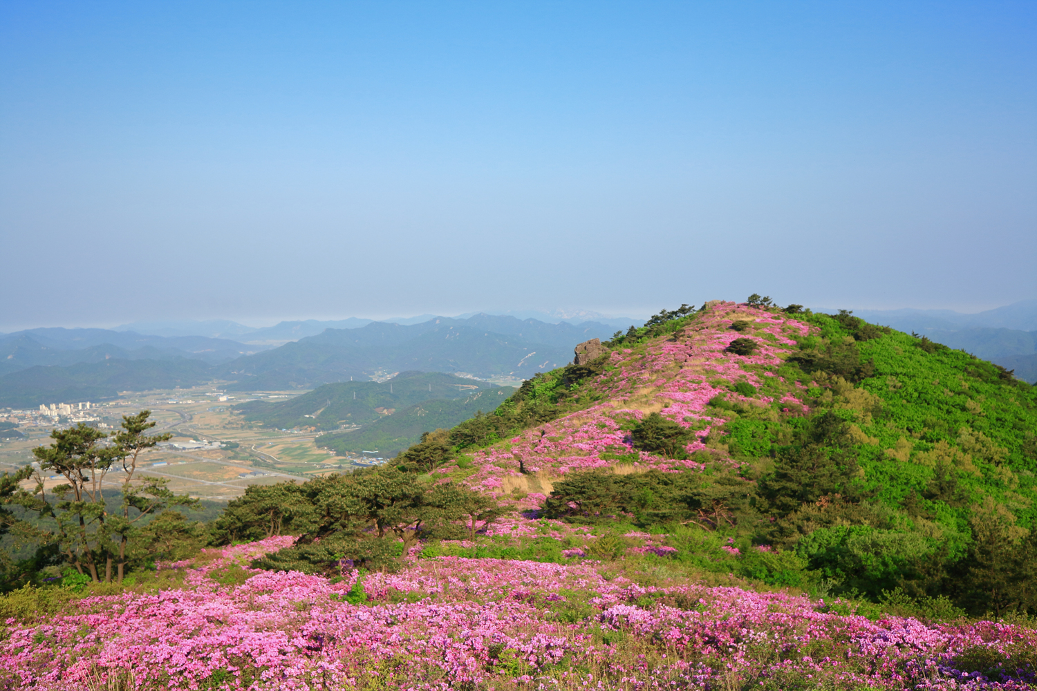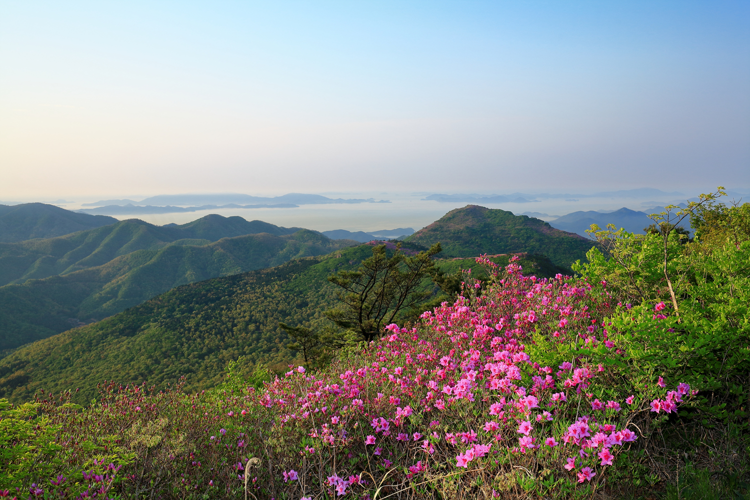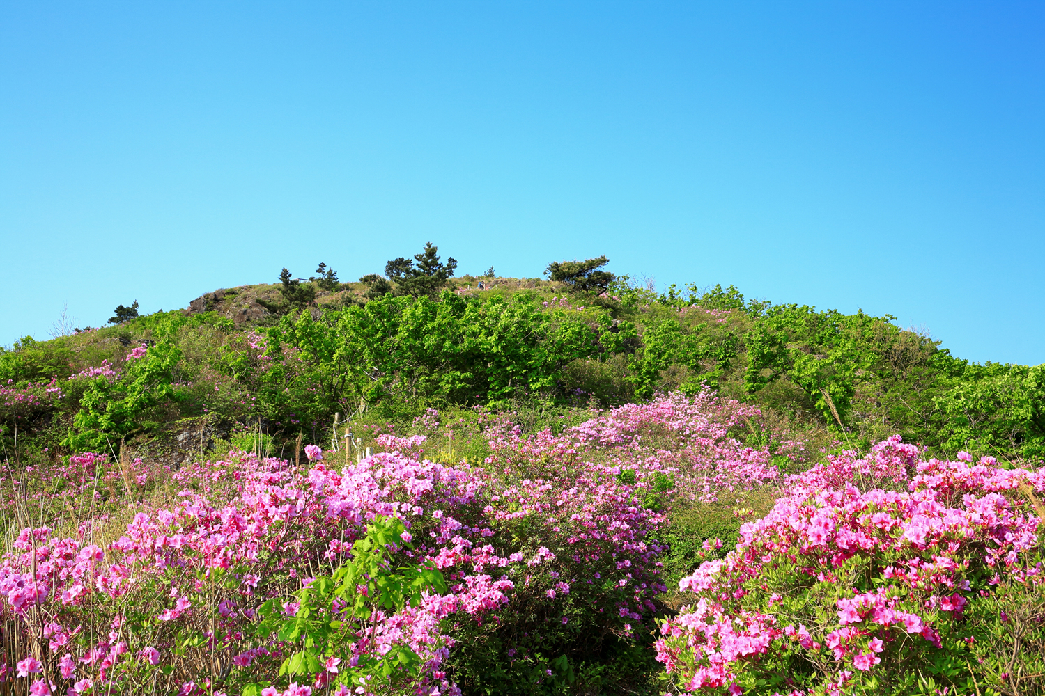 아침햇살 받으며 그 영롱했던 핑크빛 철쭉꽃길을