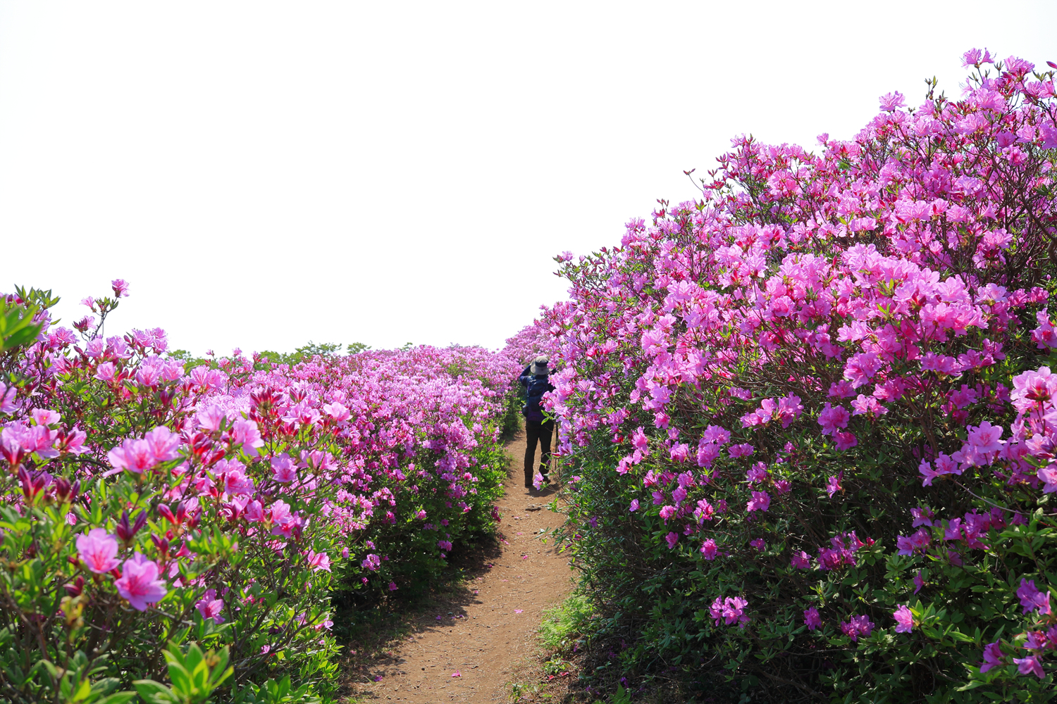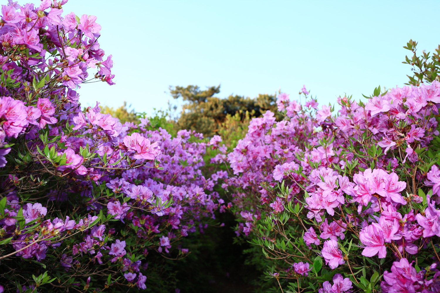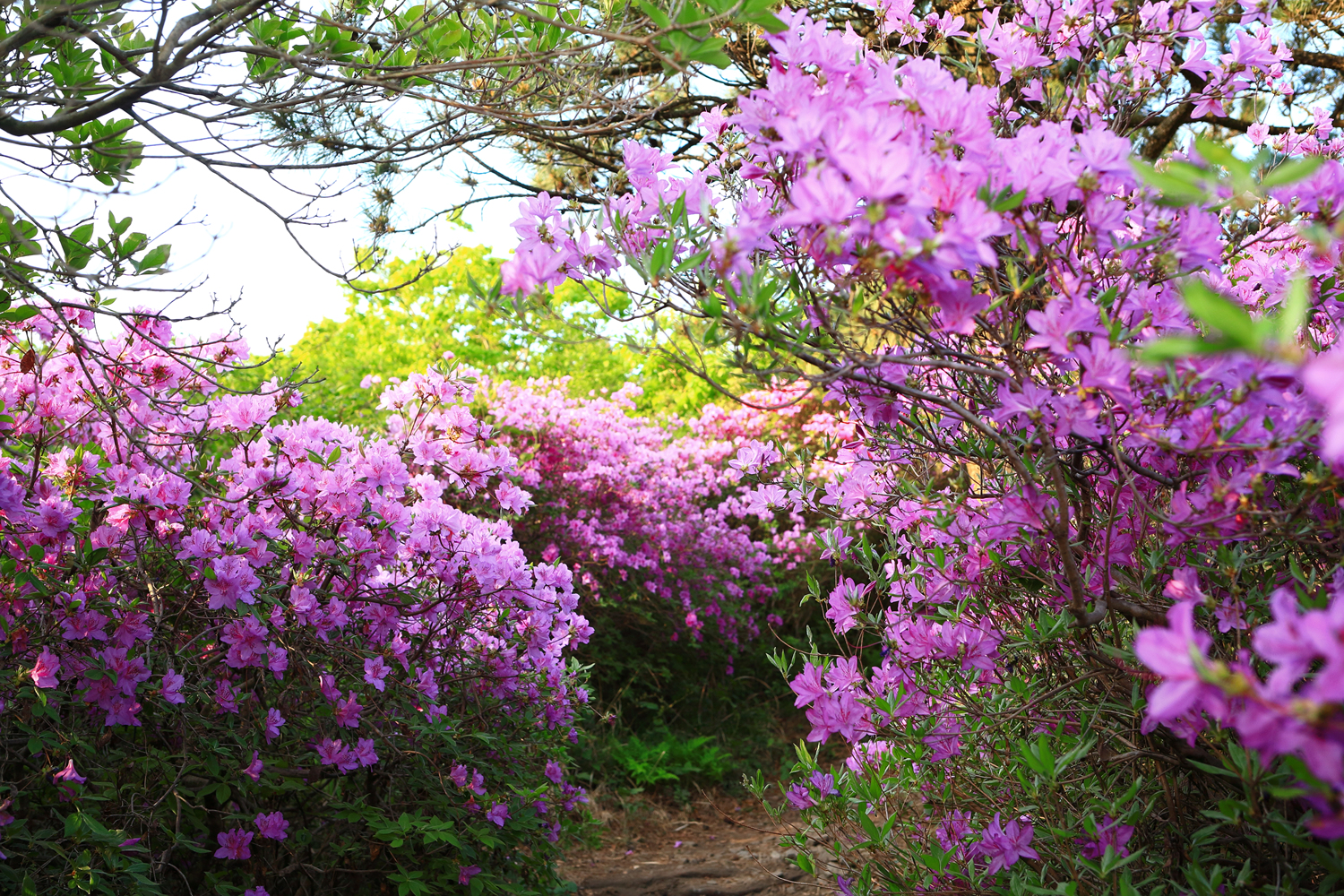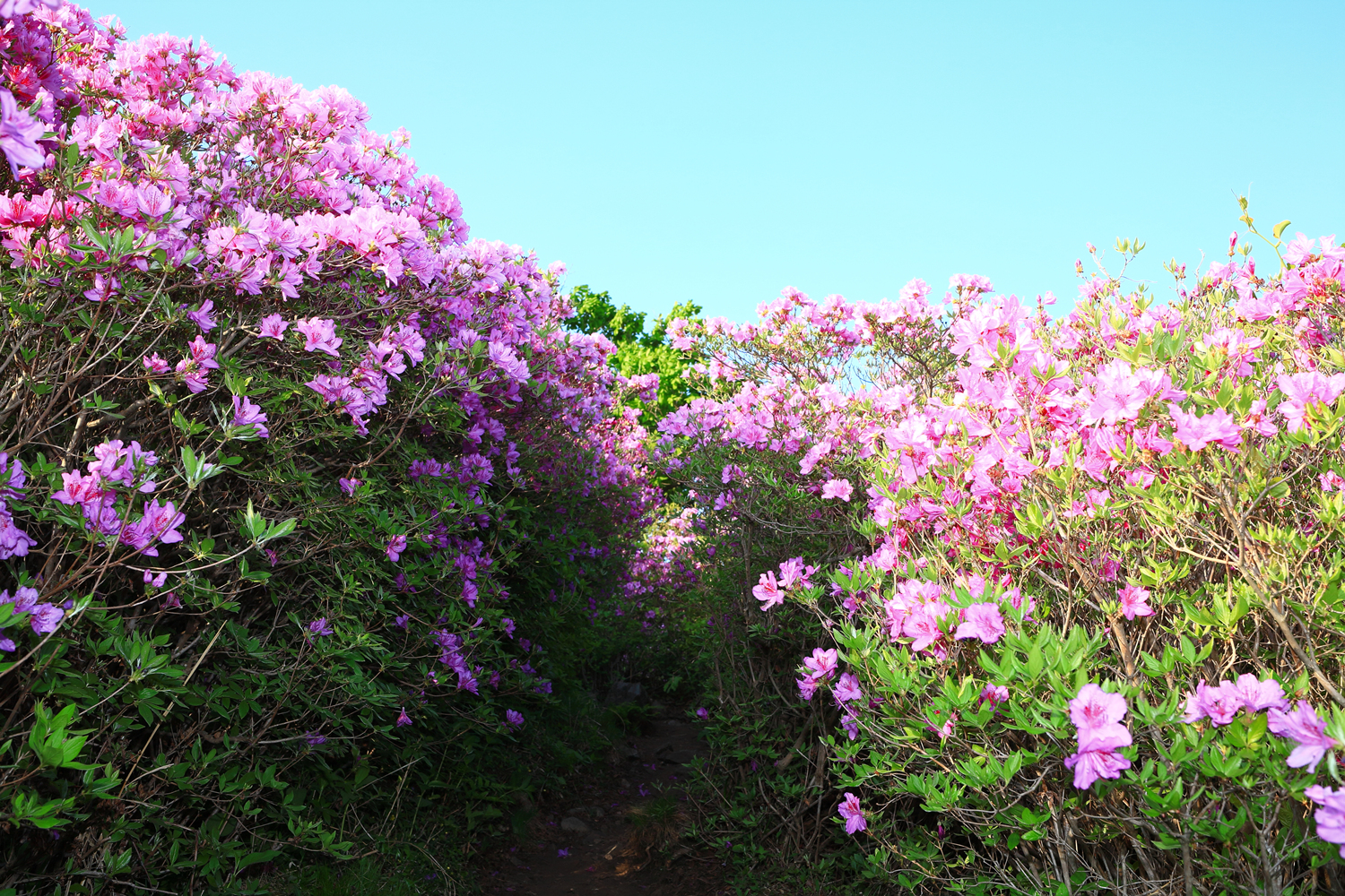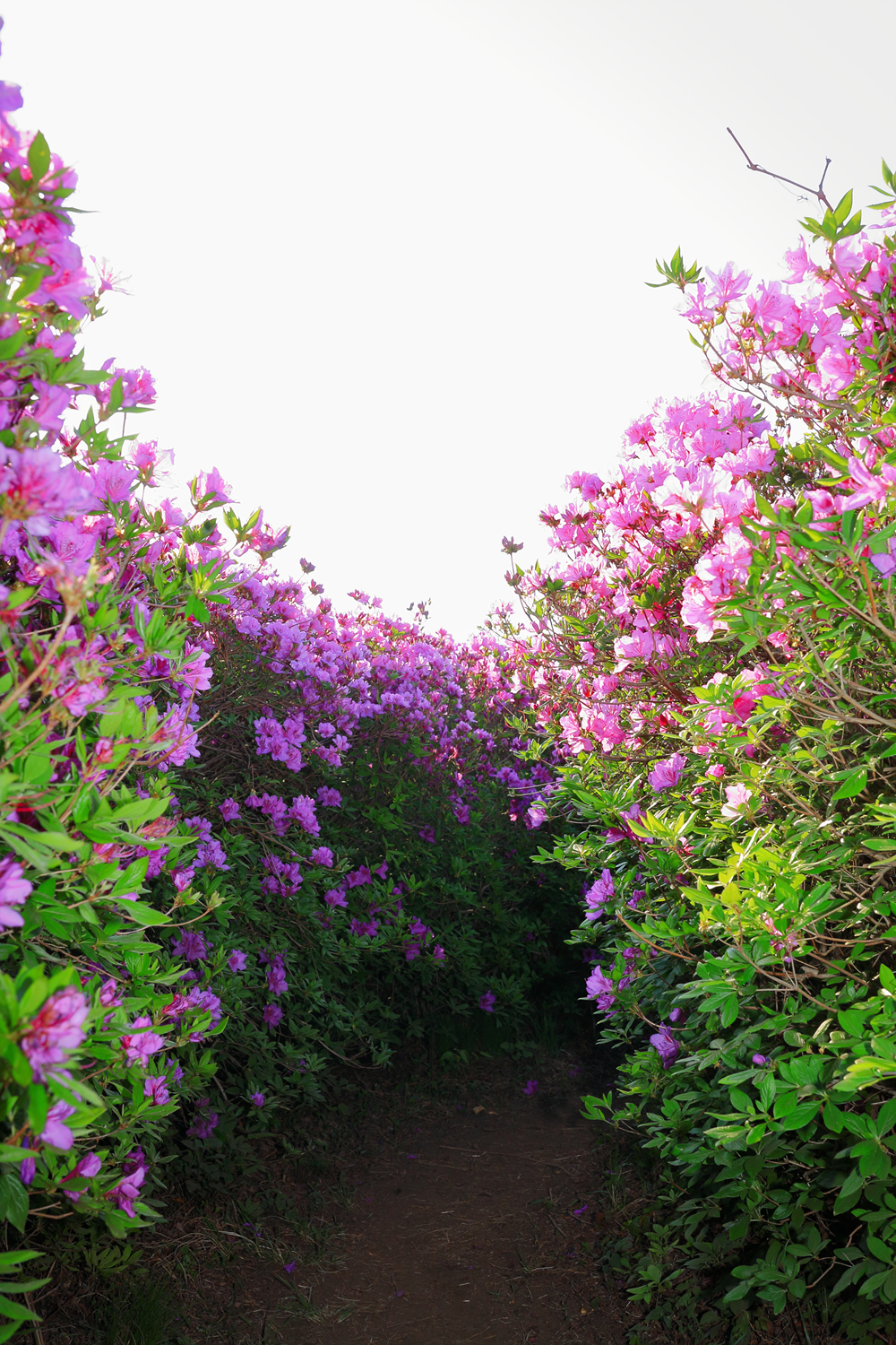 아침 햇살 받으며 황홀한 철쭉 터널길을 홀로 걷습니다.
