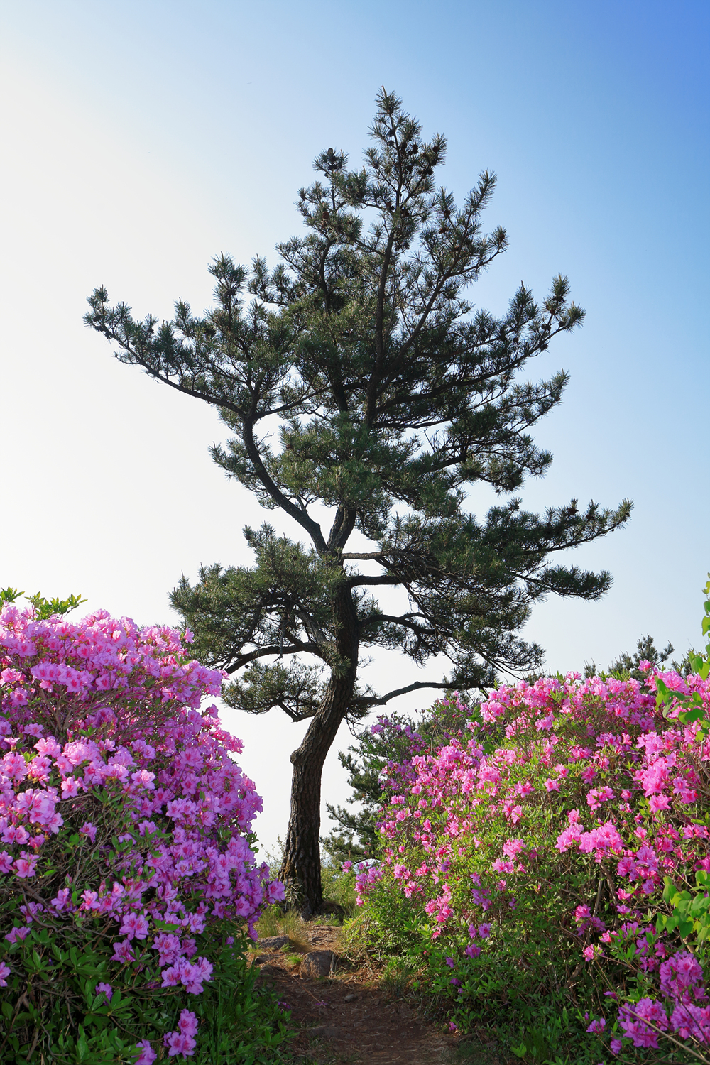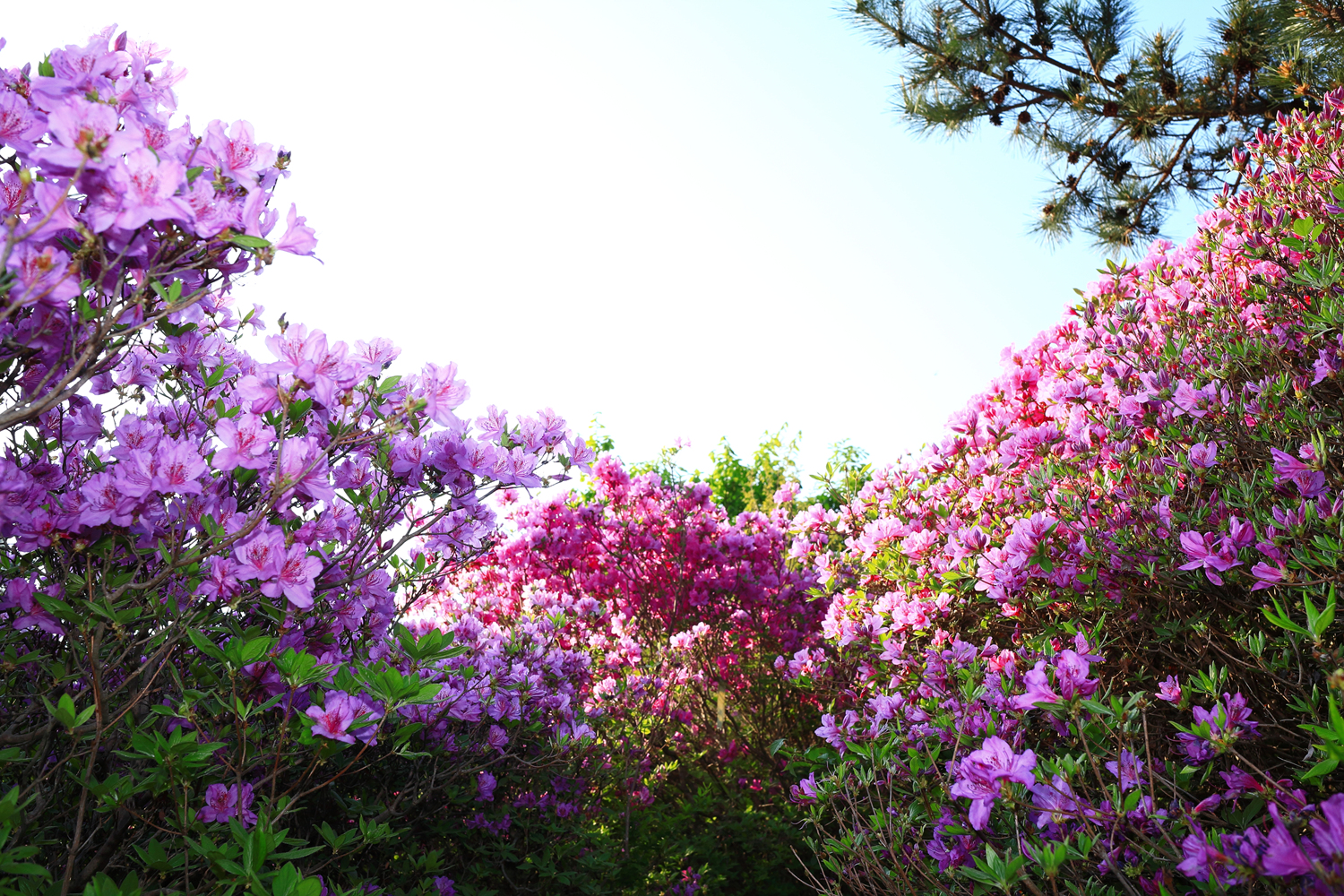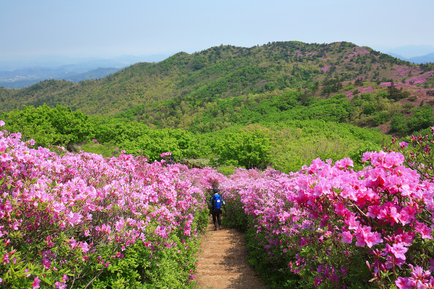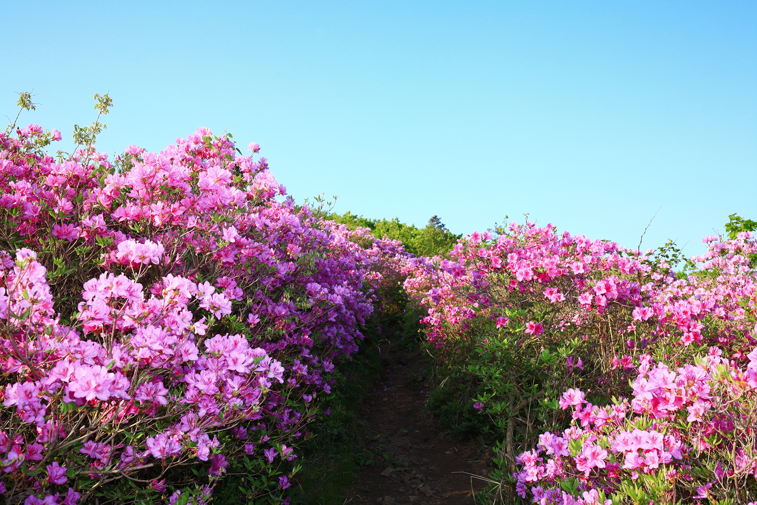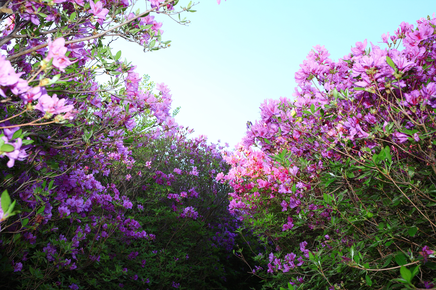 아침 햇살 받으며 황홀한 철쭉 터널길을 홀로 걷습니다.