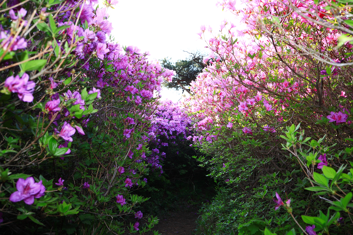 아침 햇살 받으며 황홀한 철쭉 터널길을 홀로 걷습니다.