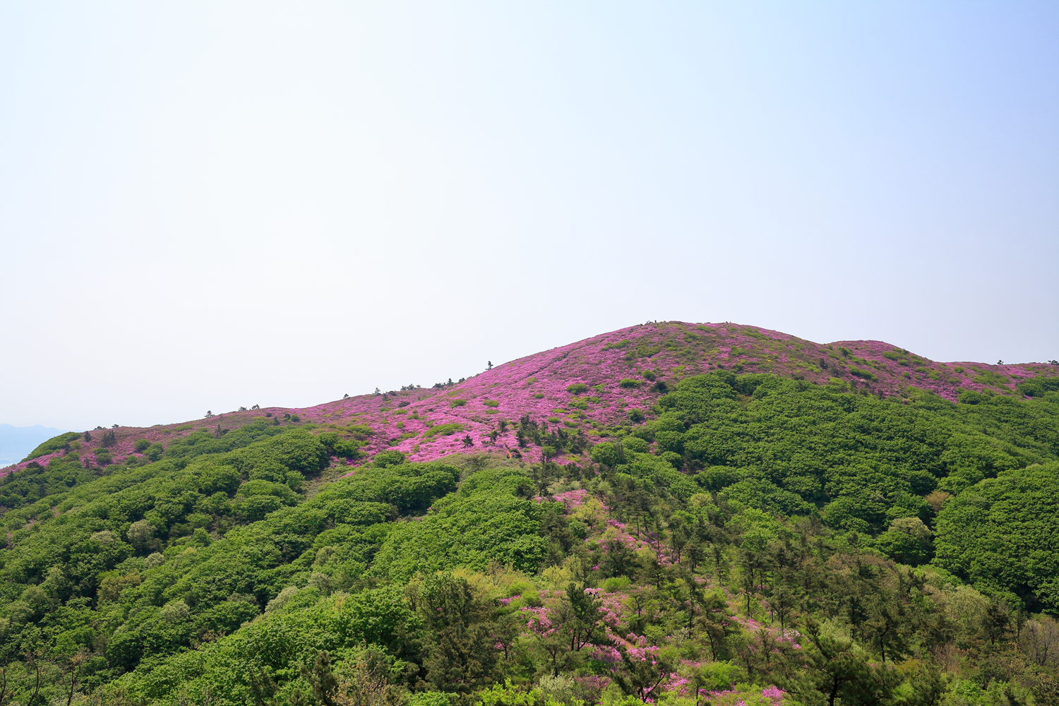 아침햇살 받으며 그 영롱했던 핑크빛 철쭉꽃길을