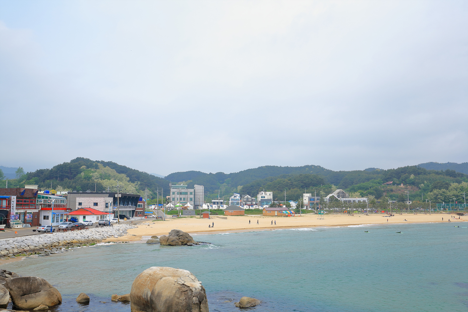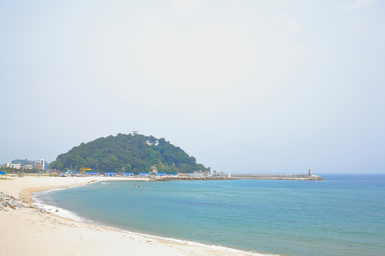죽도암해안 들어서며 뒤돌아 보는 시변리마을과 죽도해수욕장!