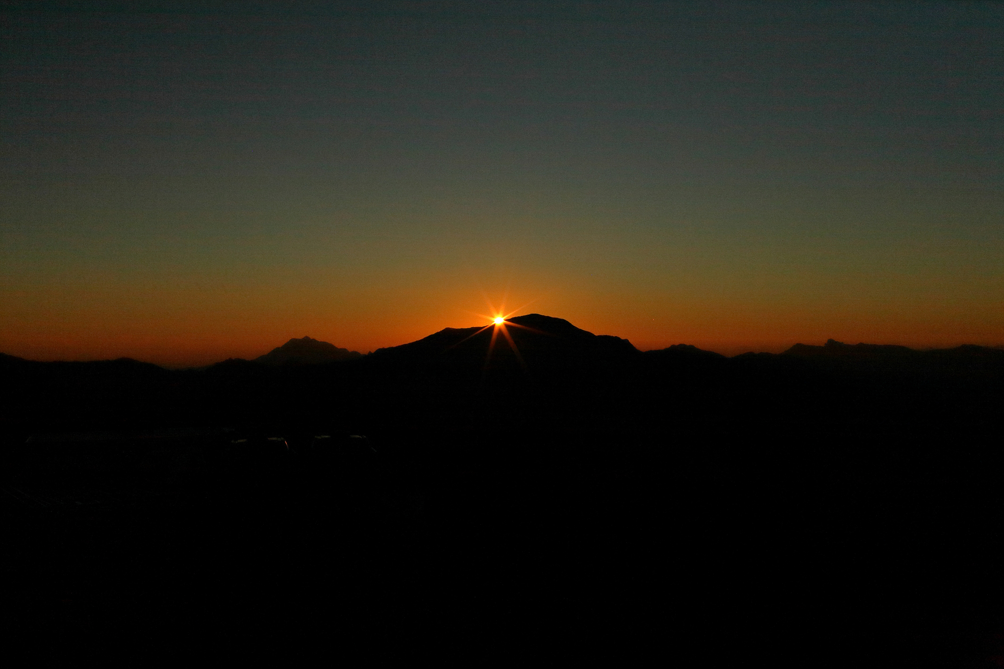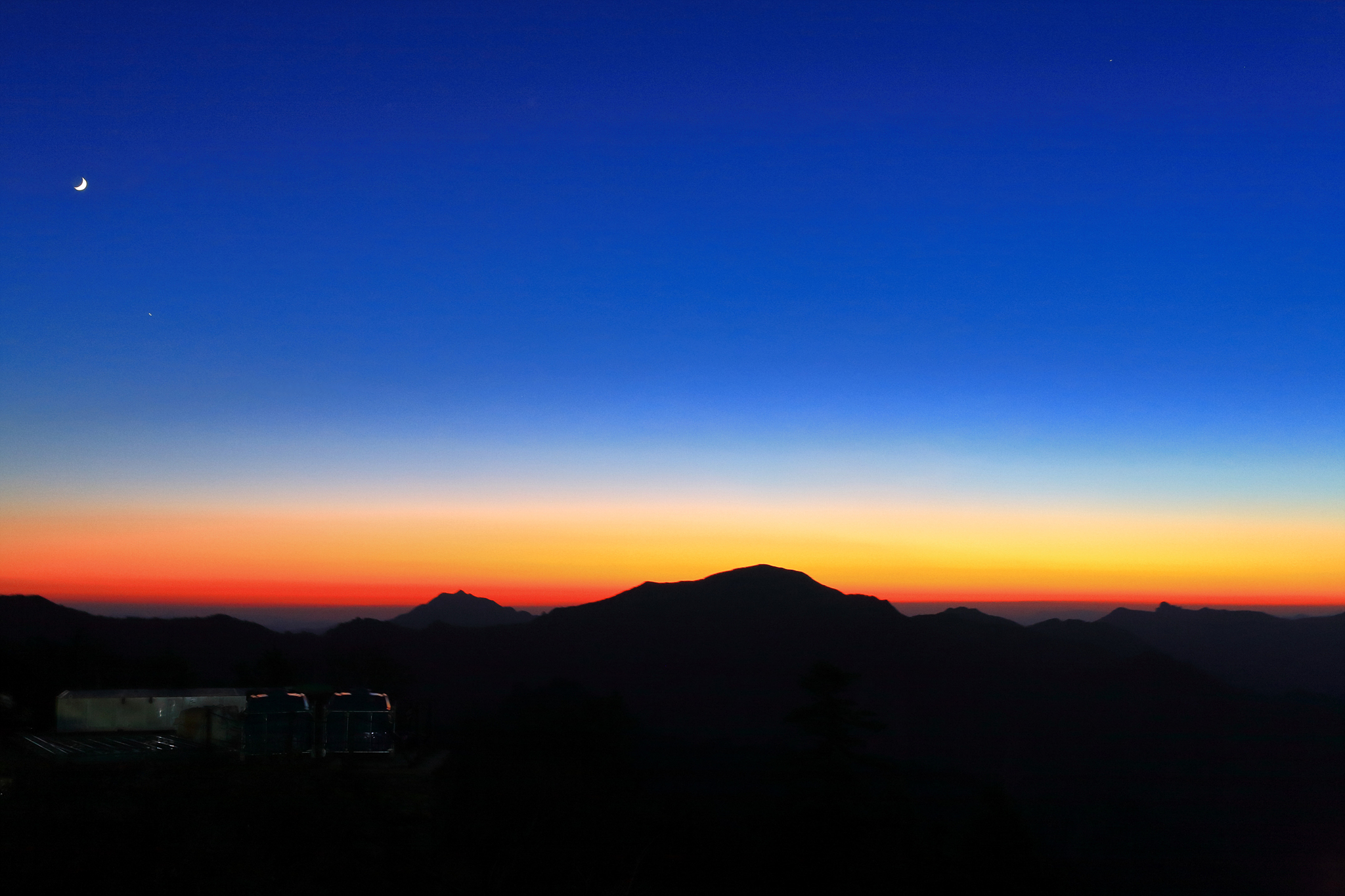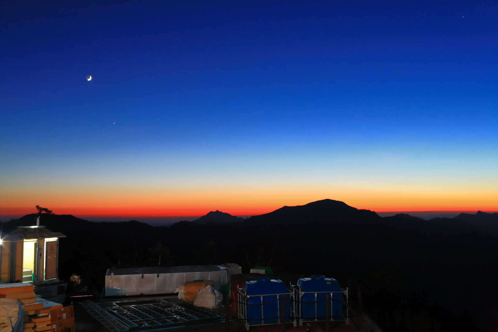 소청대피소 위로 초승달이 멋진 석양빛과 함께