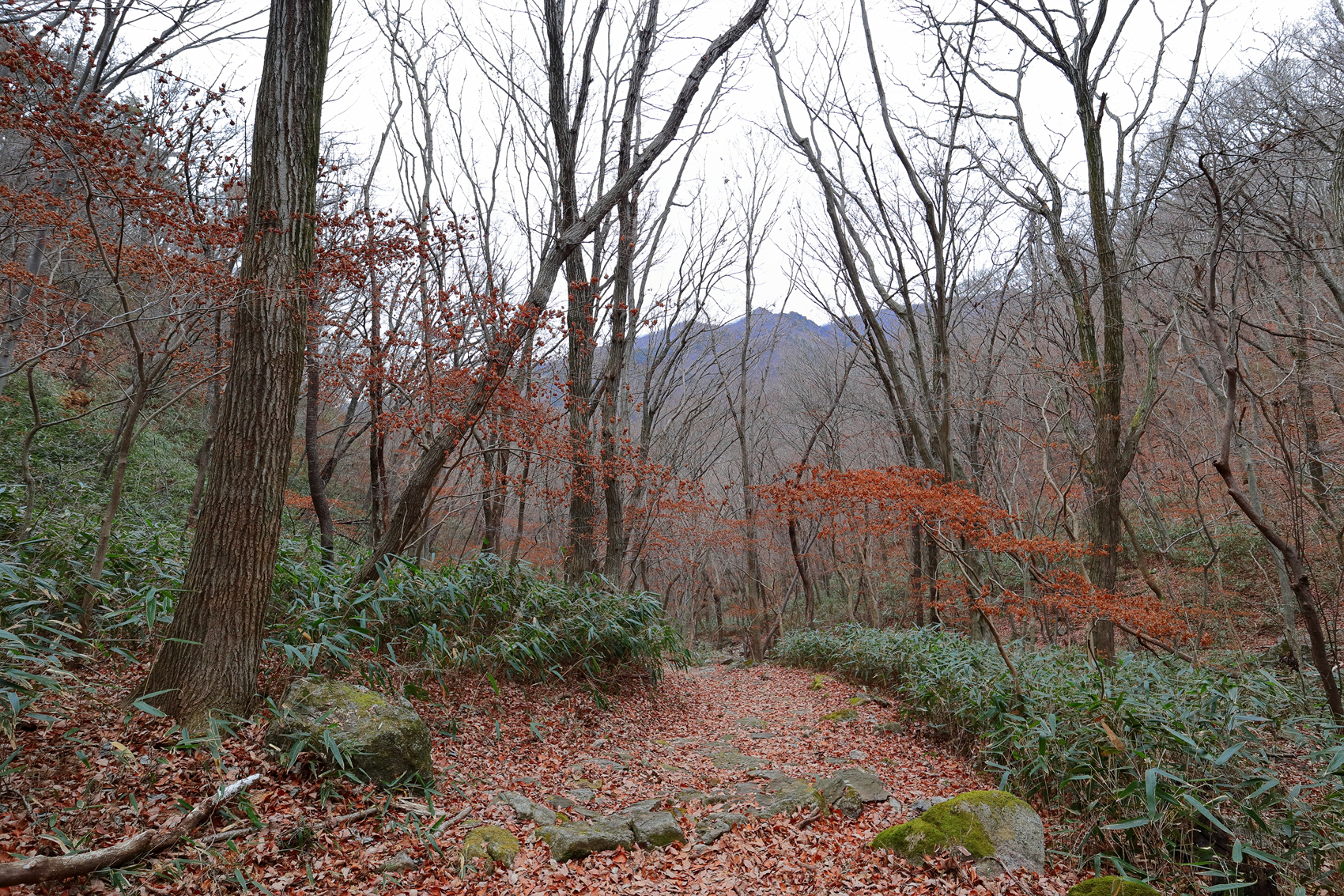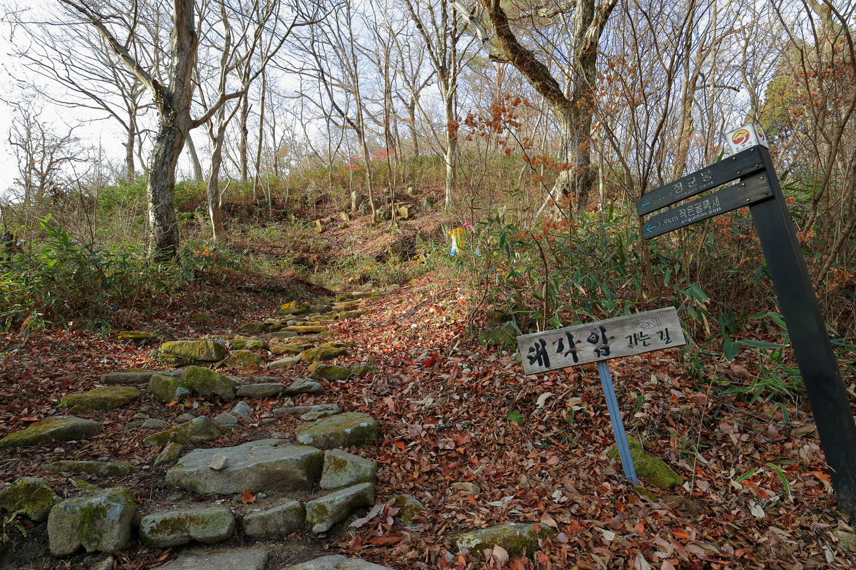 낙엽이 수북히 쌓인 등로를 한참을 걸어