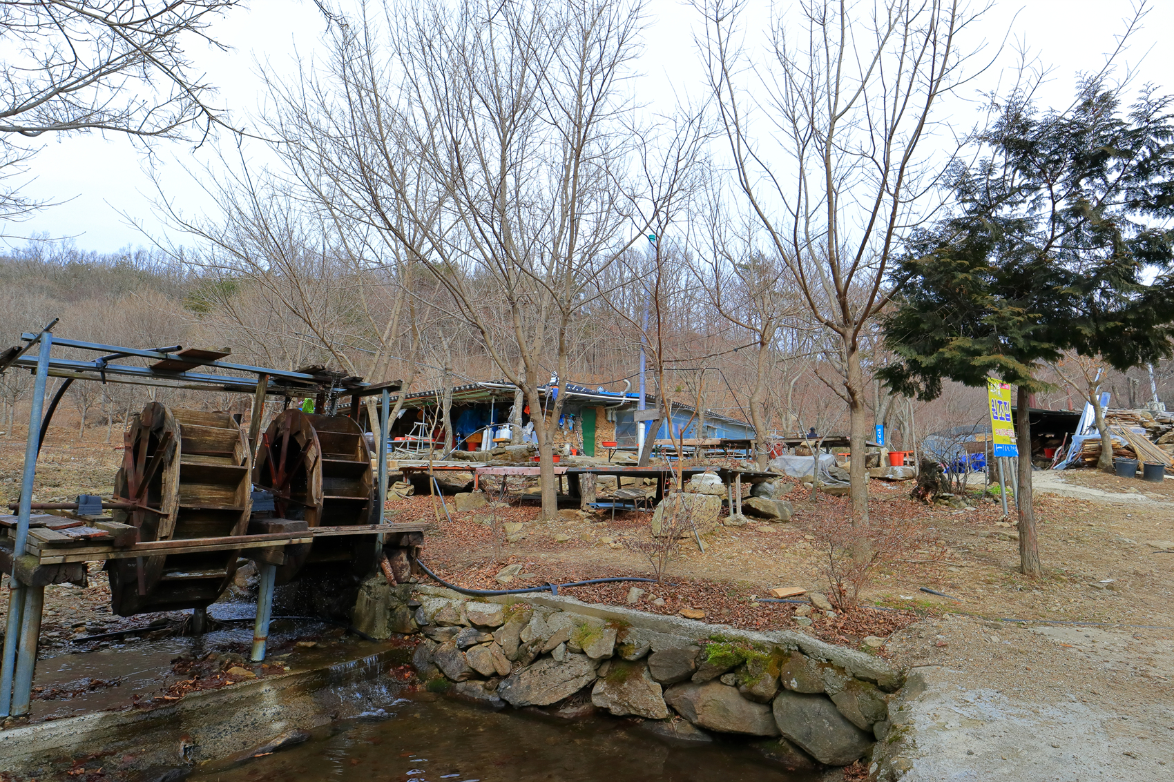 난로가 설치된 비닐하우스 안에서 보리밥으로 허기를 채워봅니다.