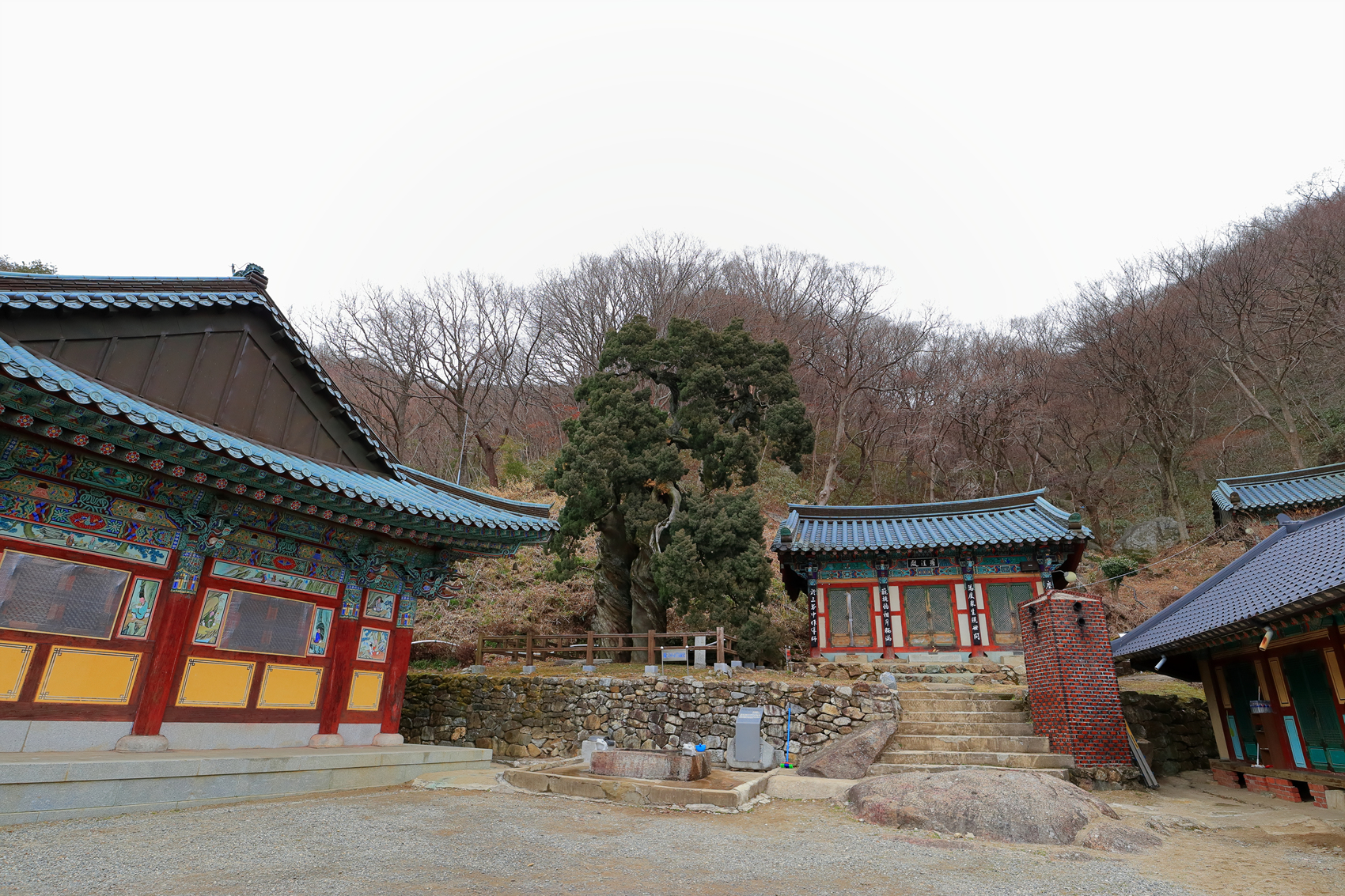 이곳 천자암의 곱향나무는 두 그루가 쌍으로 나란히 서 있고 줄기가 몹시 꼬여서 진기한 모습을 보이며,