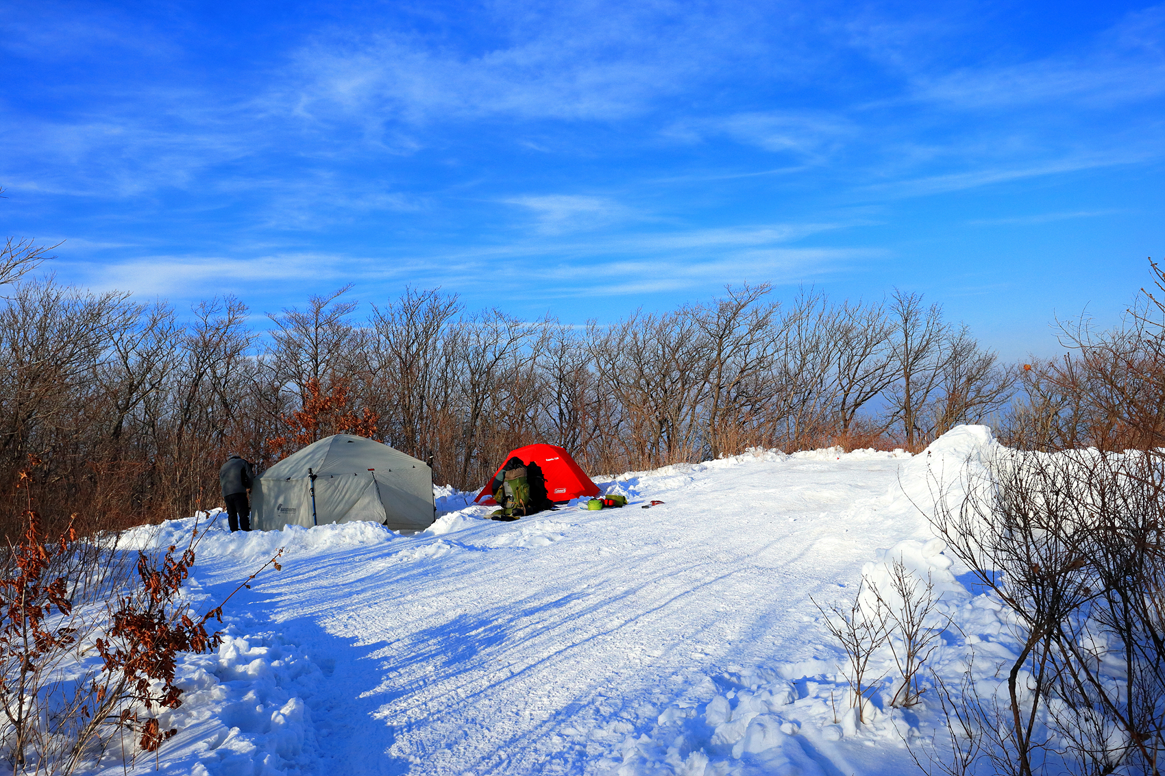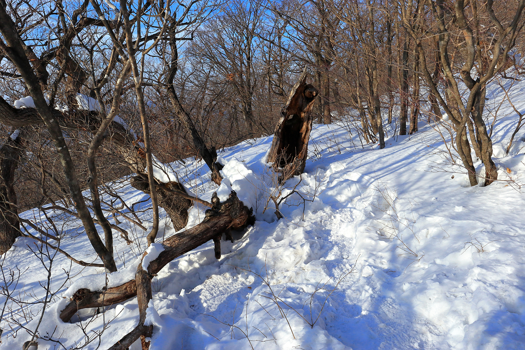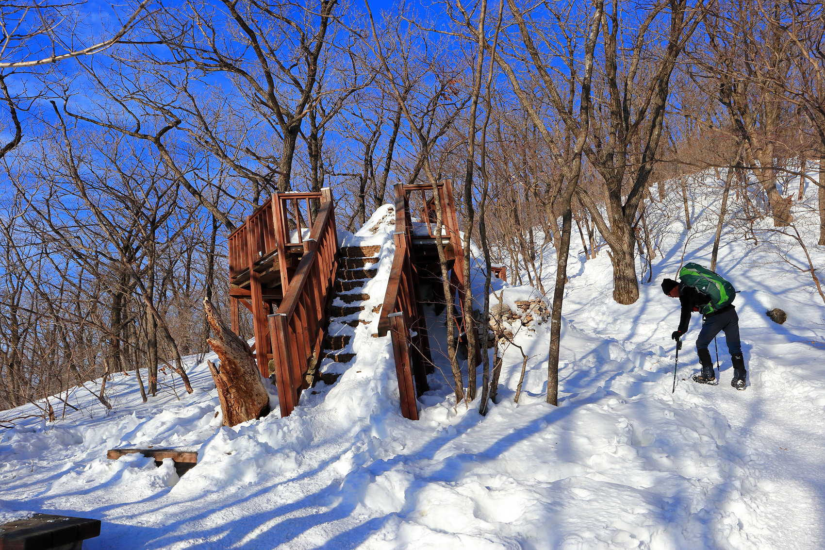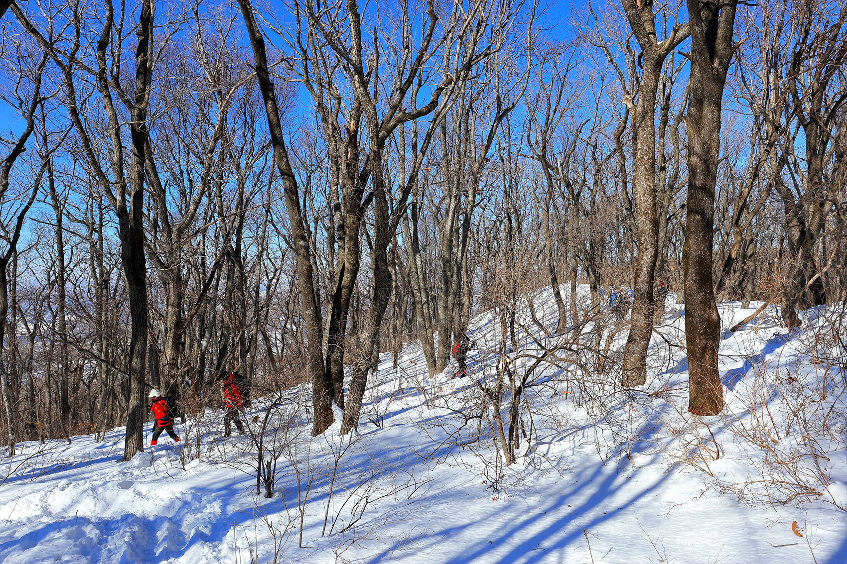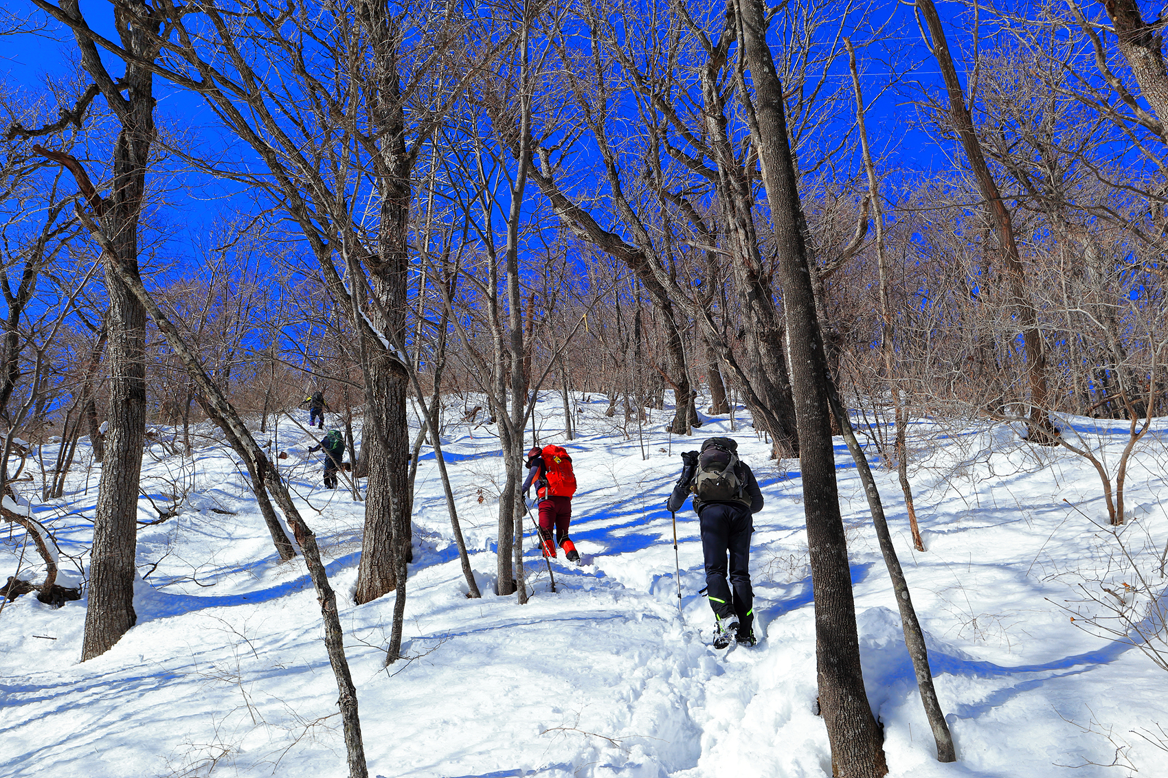 무릎까지 빠지는 힘겨운 설산을 헤치고