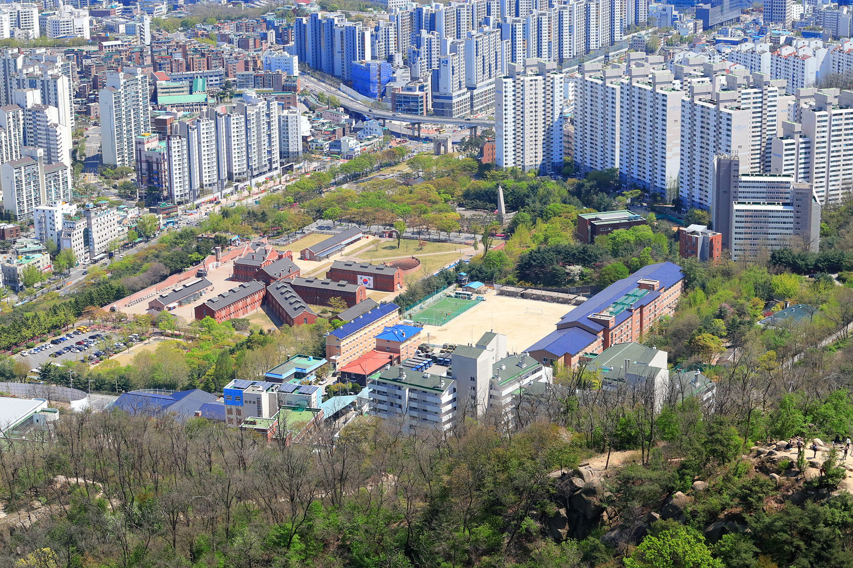 봉수대에서 내려다 보는 독립문 공원 및 서대문 형무소 전경