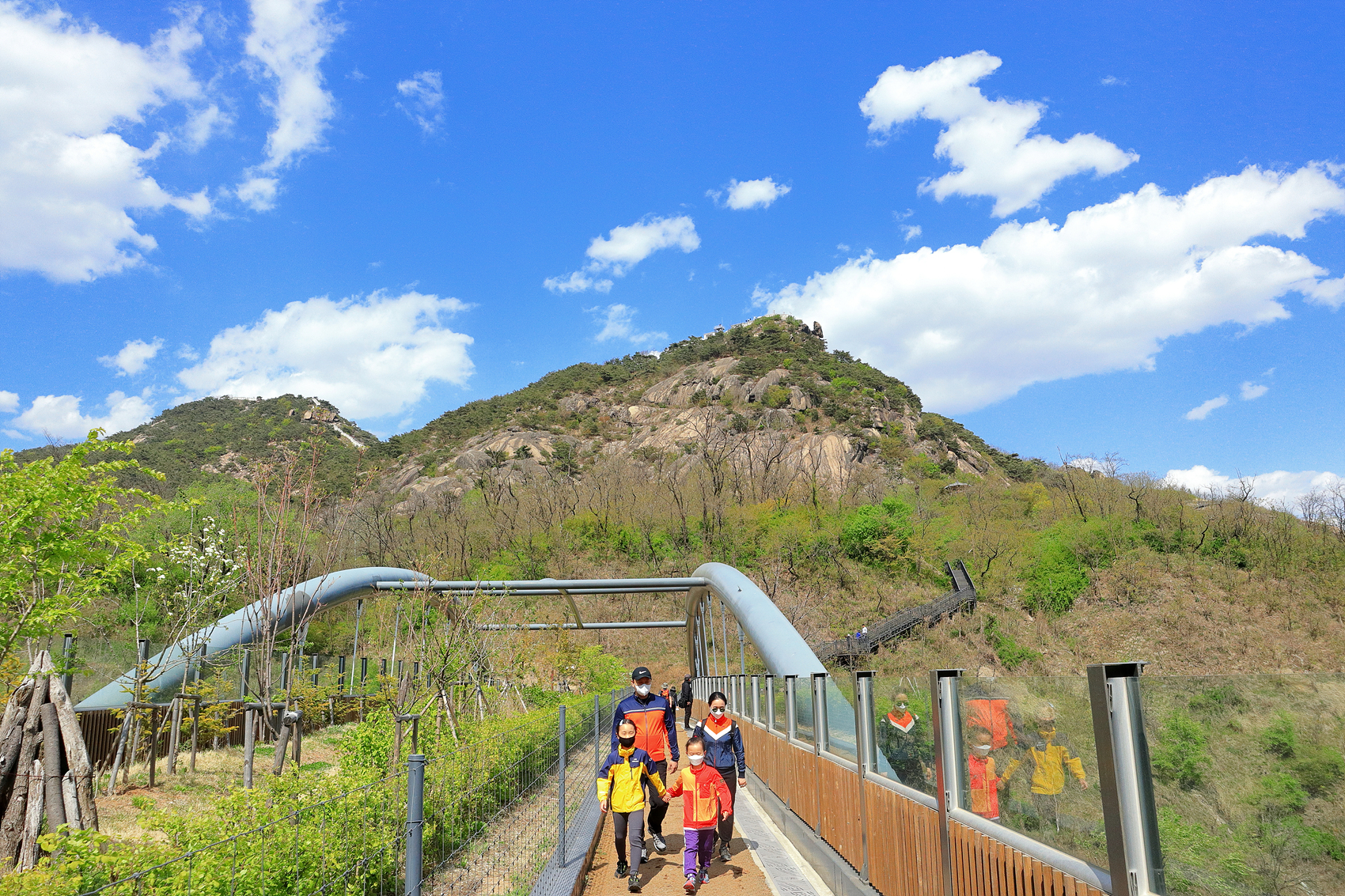 안산과 인왕산을 이어주는 통일로 위 구름다리