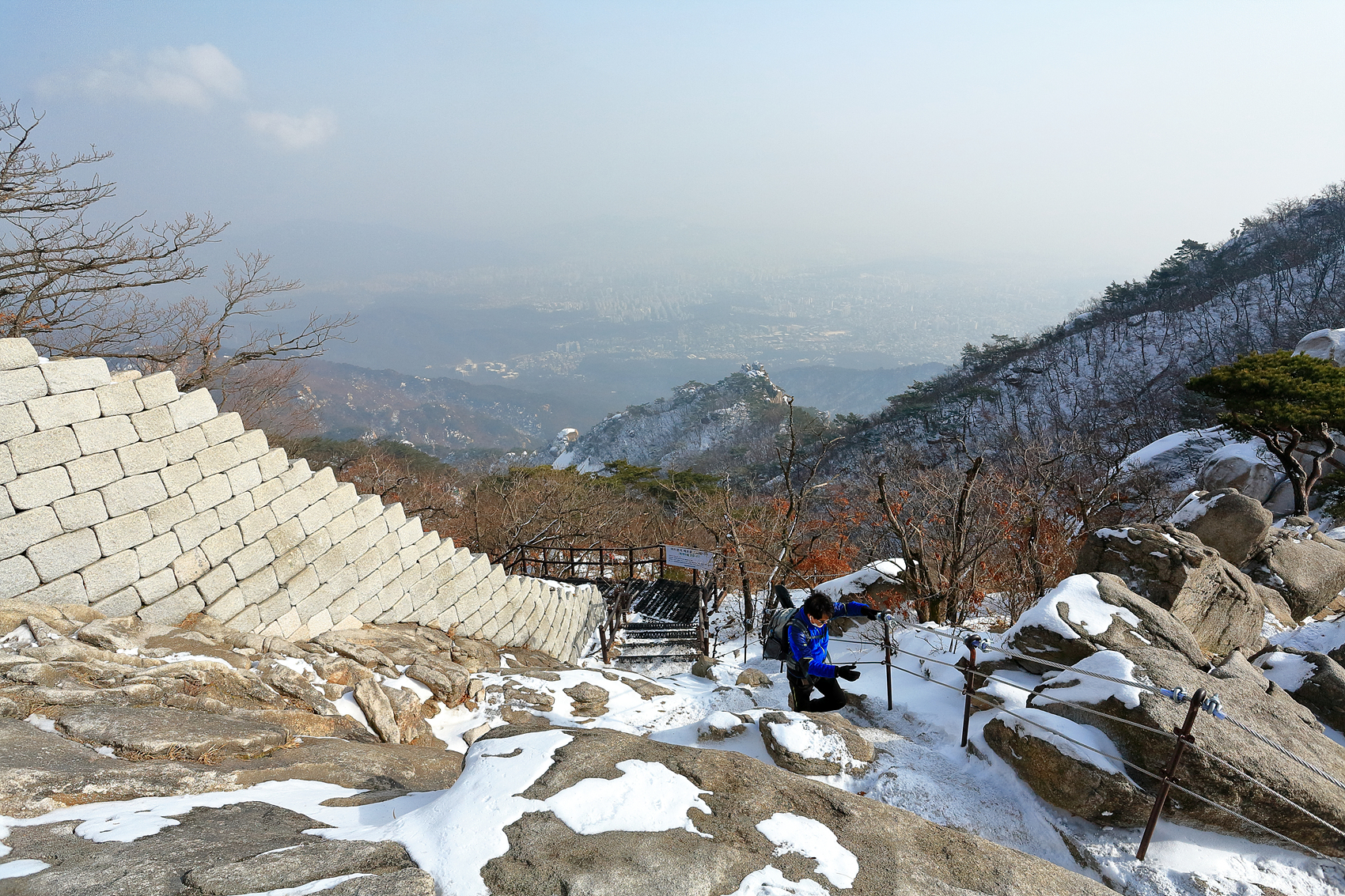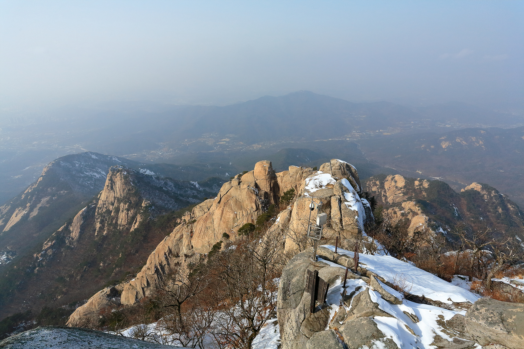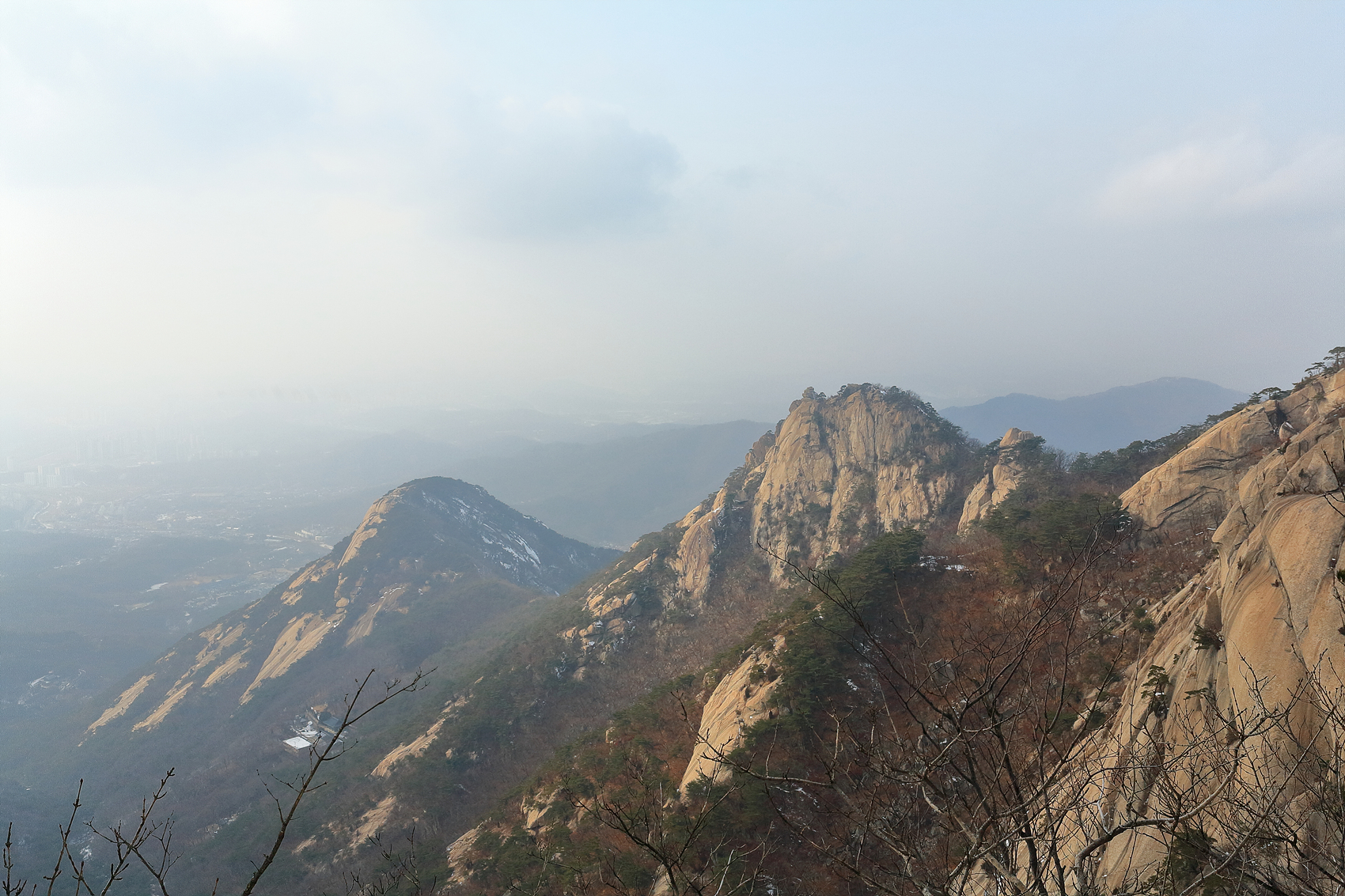 오후들며 중국발 미세먼지가 삼각산을 애워싸며 시계가 불분명해집니다.