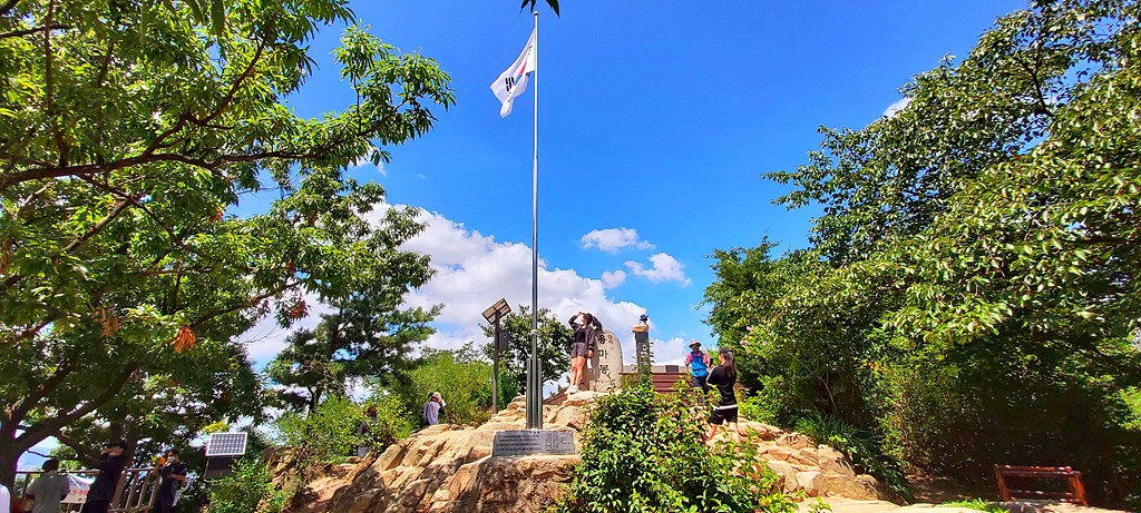 용마산 국기봉과 정상석