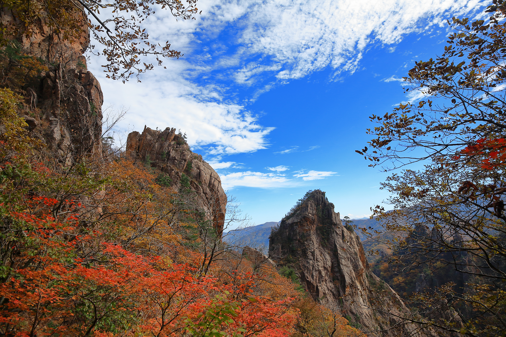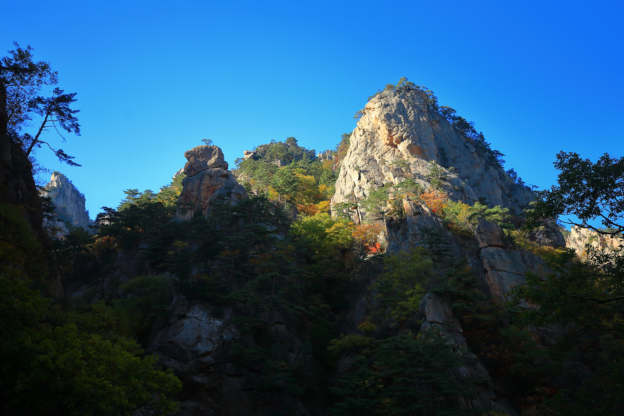 멋진 암릉 사이로 곱게 물들기 시작하는