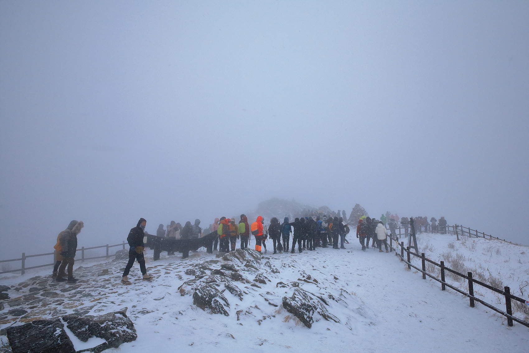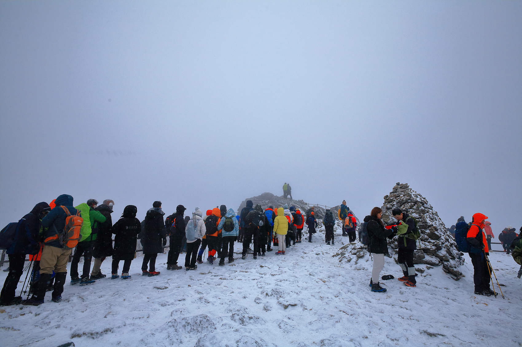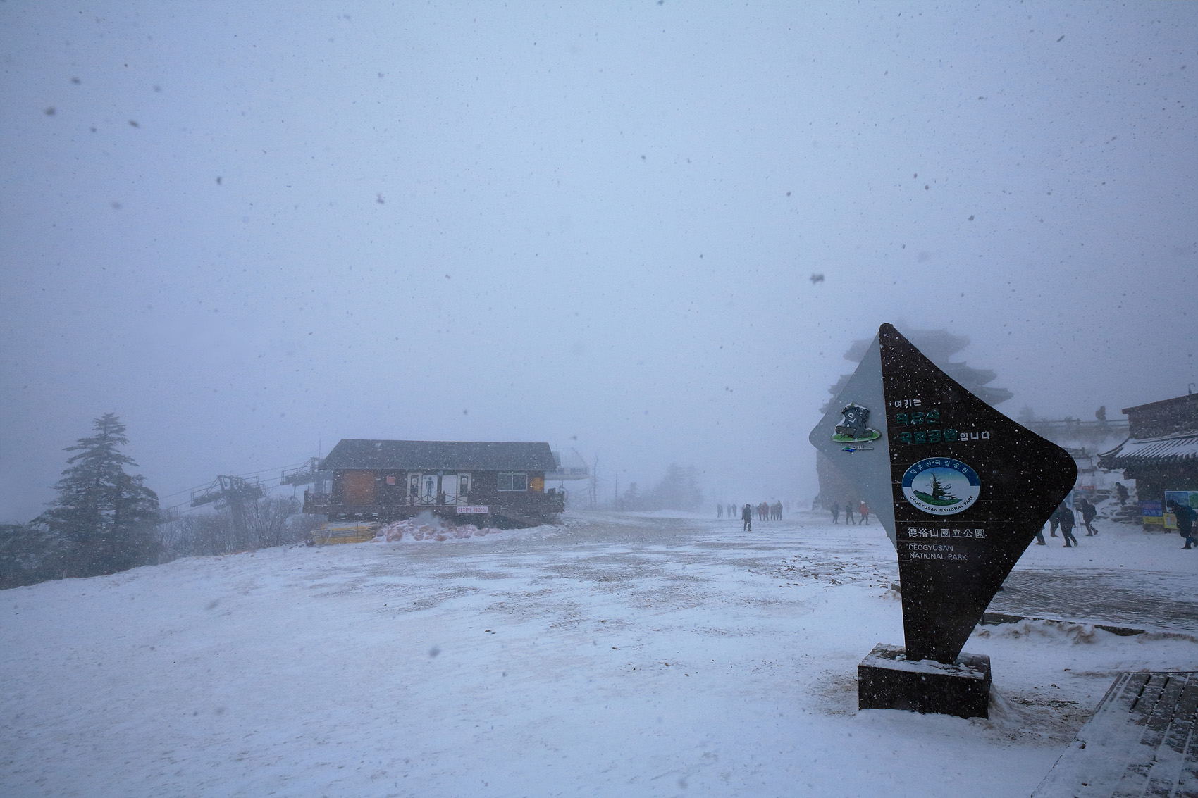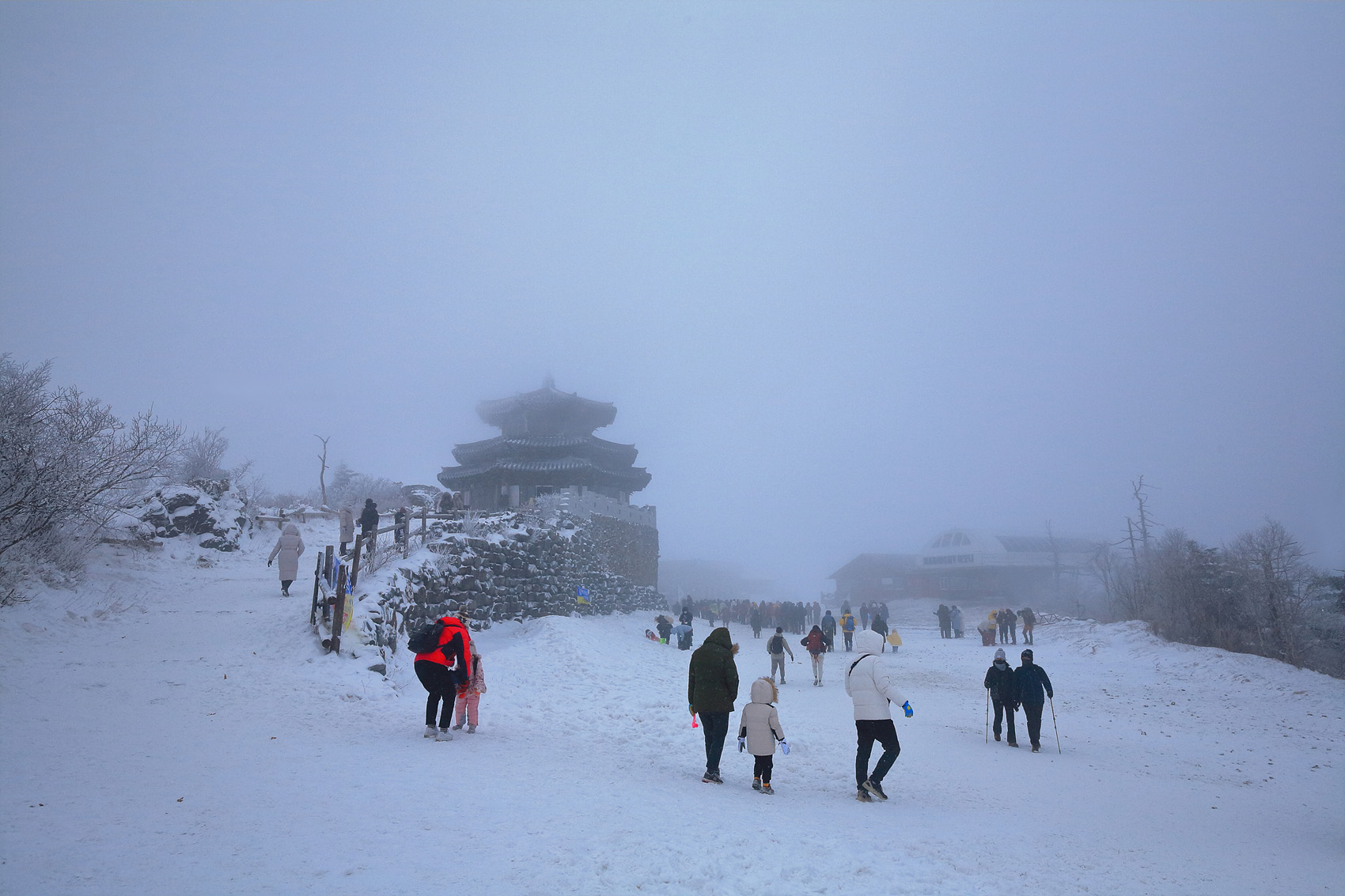 칼바람에 눈 맞으며 대피소 처마밑에서