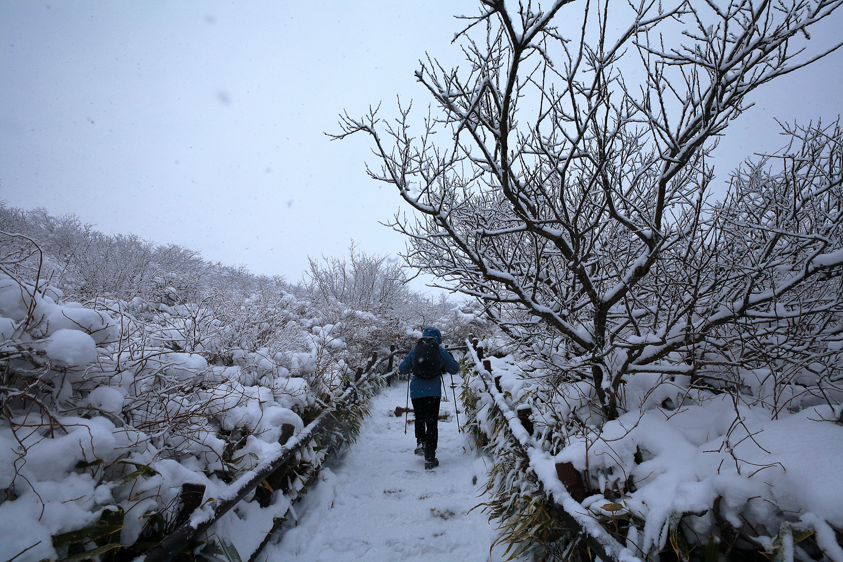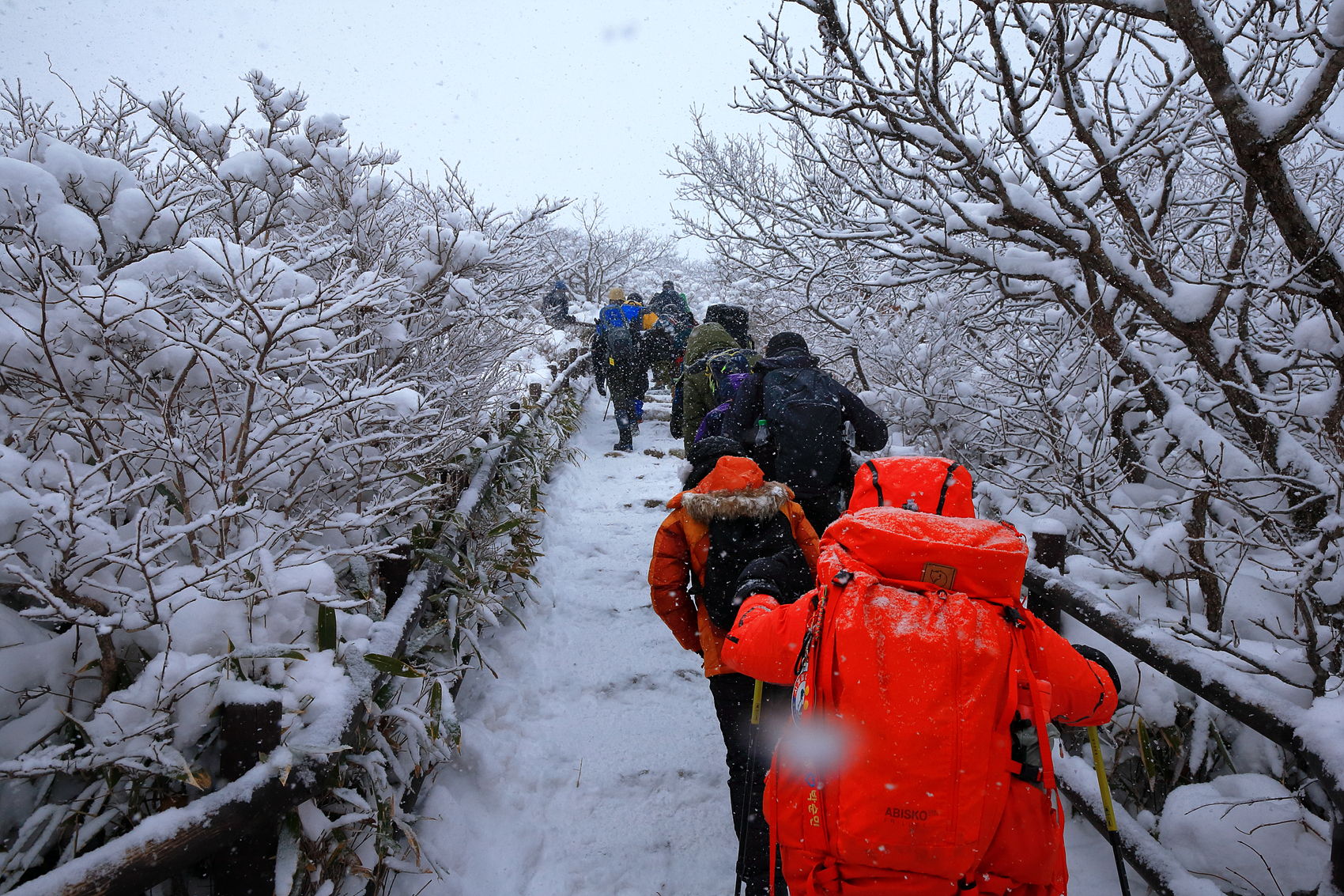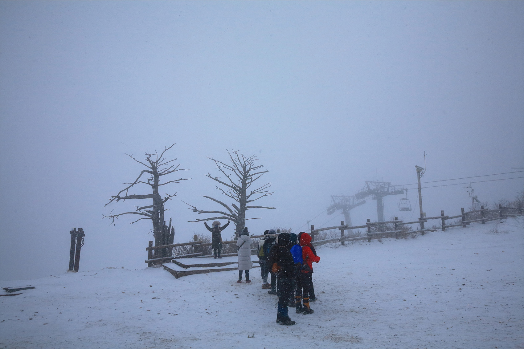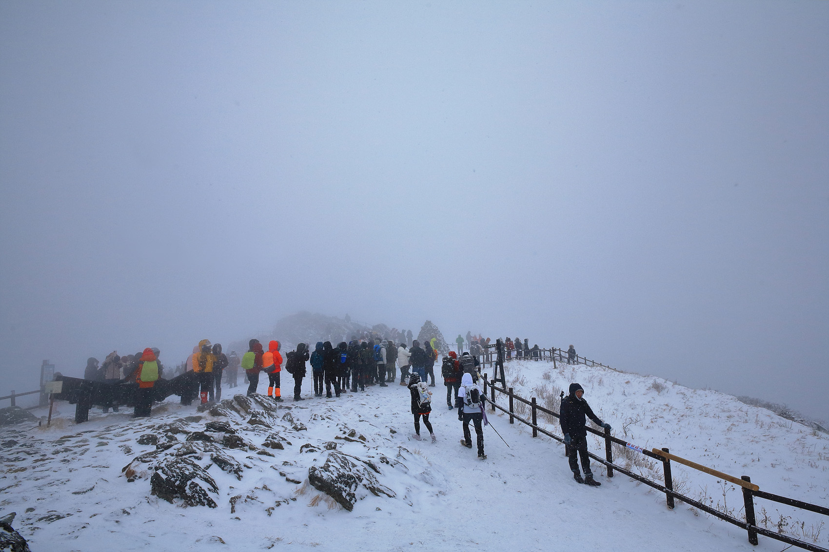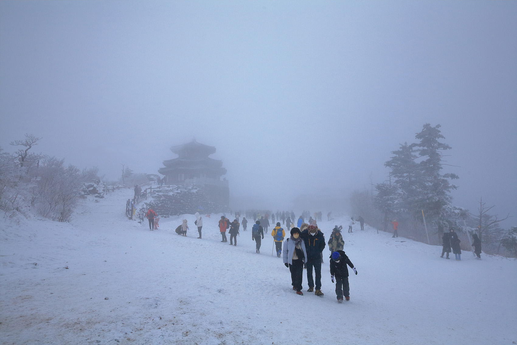 칼바람에 눈 맞으며 대피소 처마밑에서