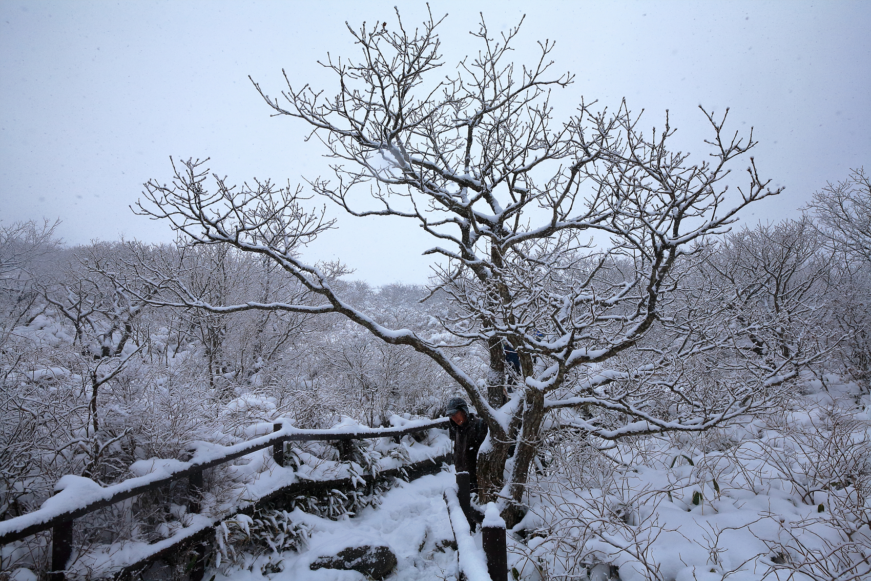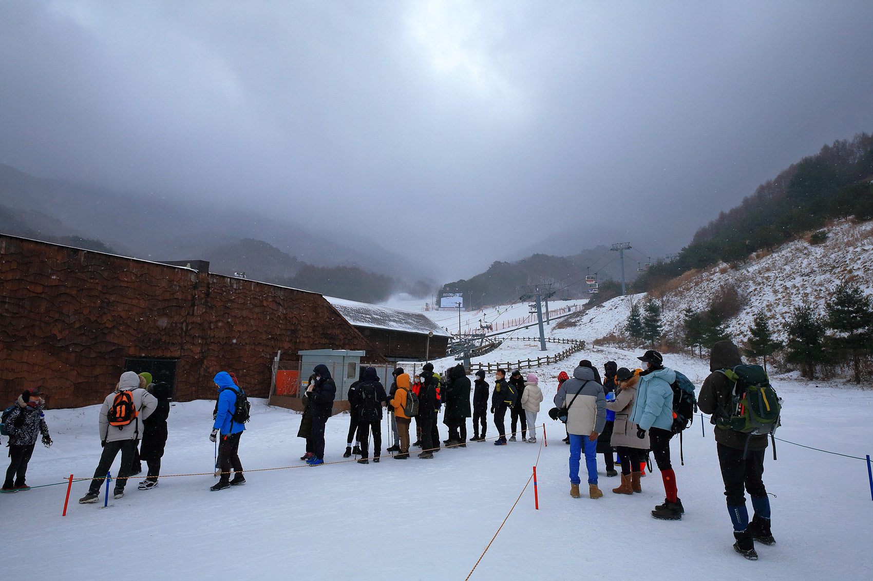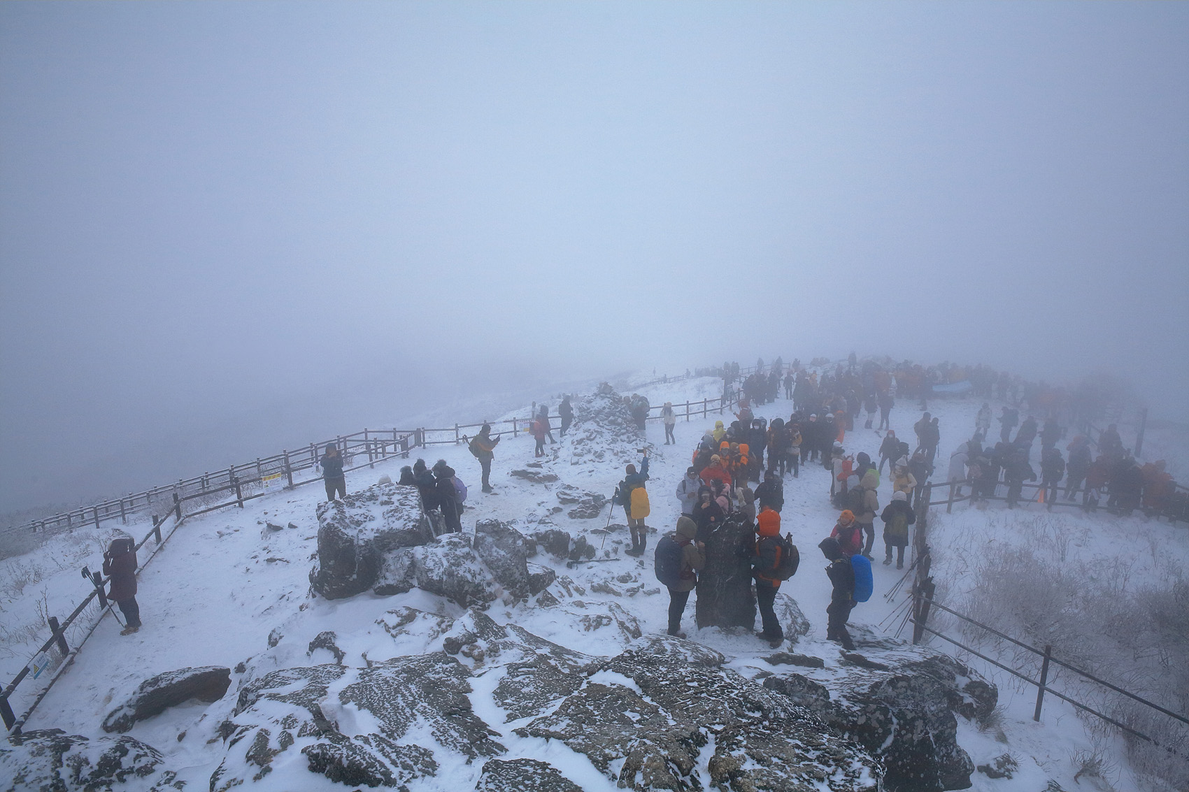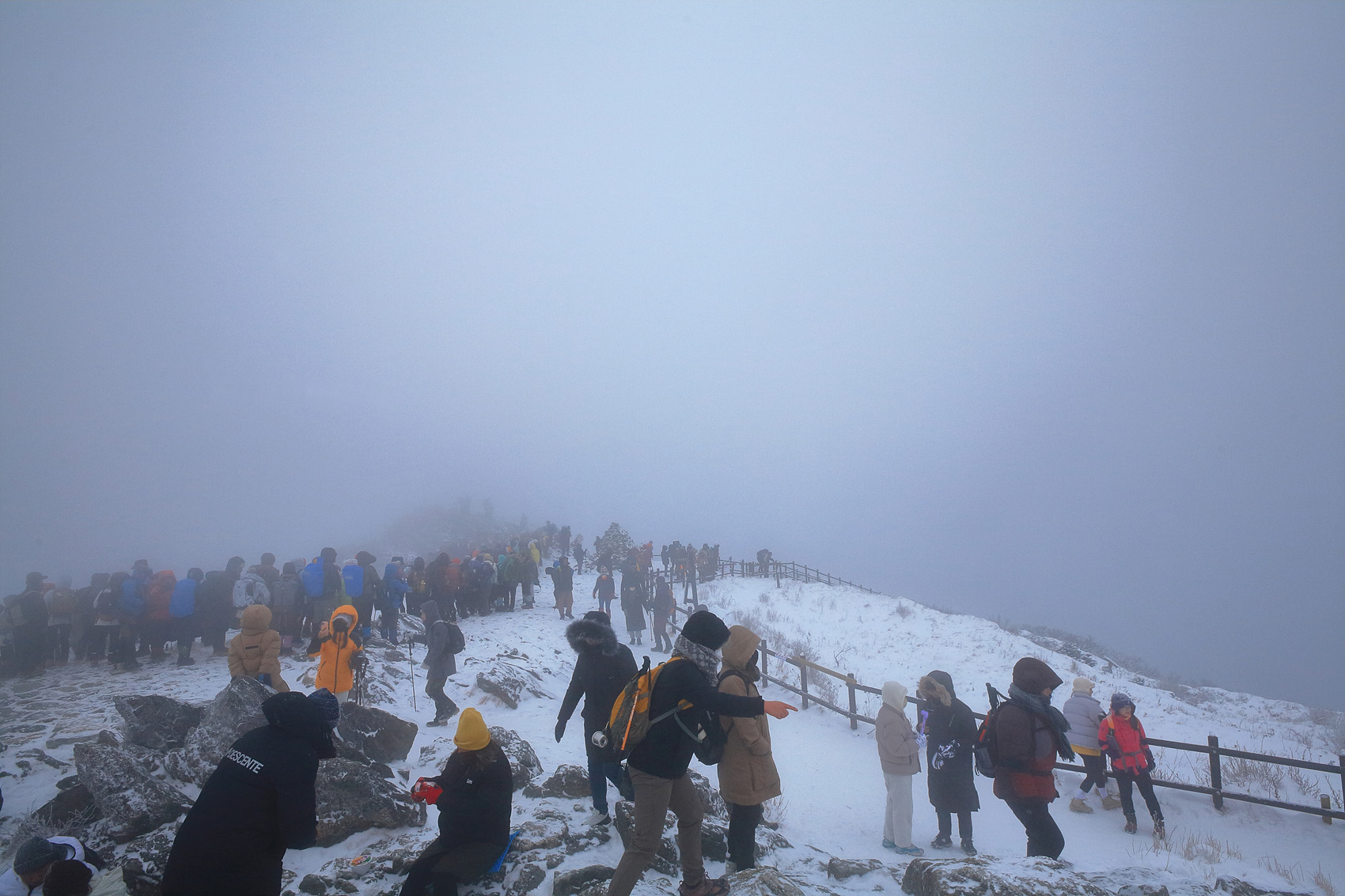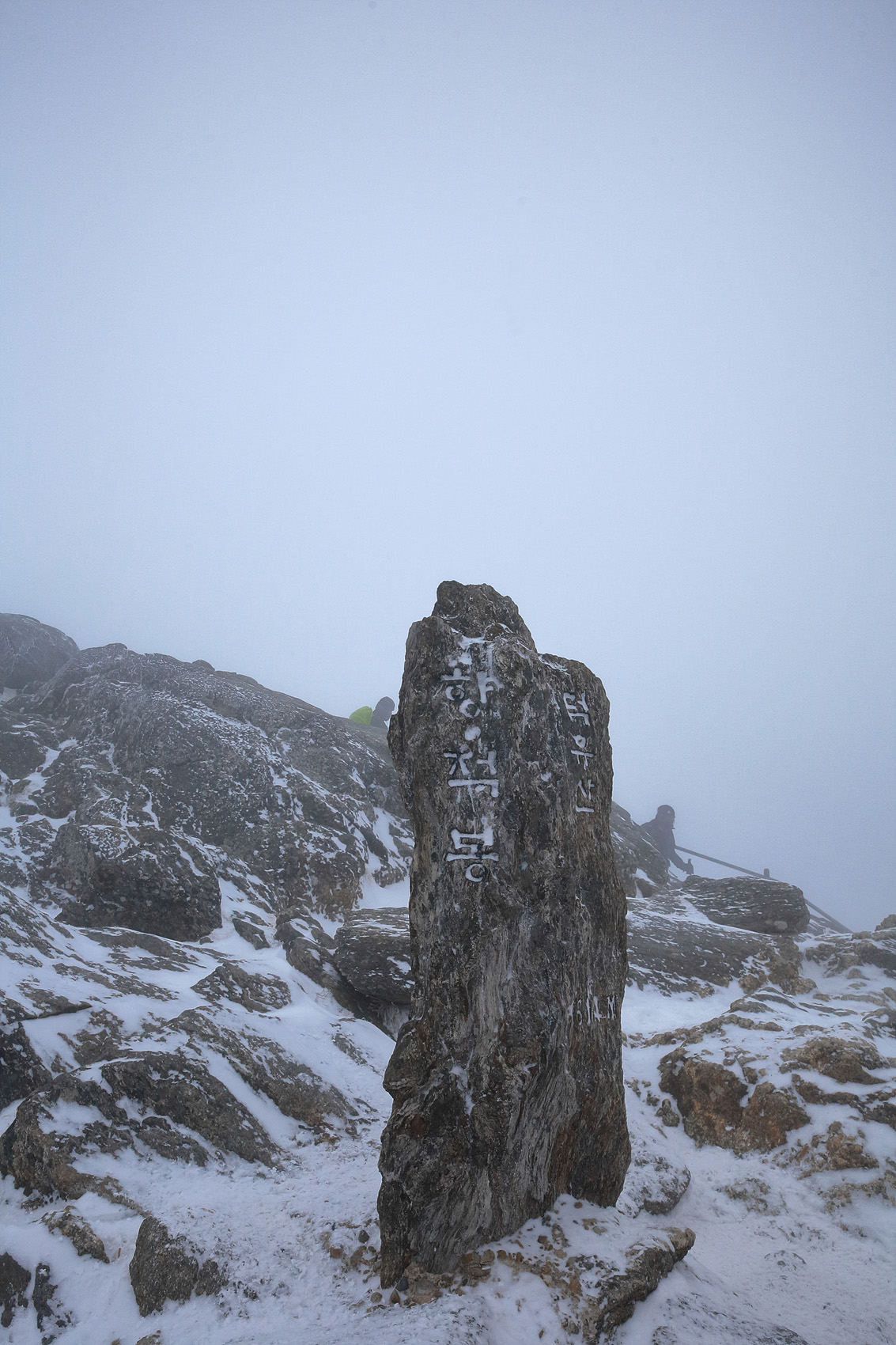 칼바람에 눈 맞으며 대피소 처마밑에서