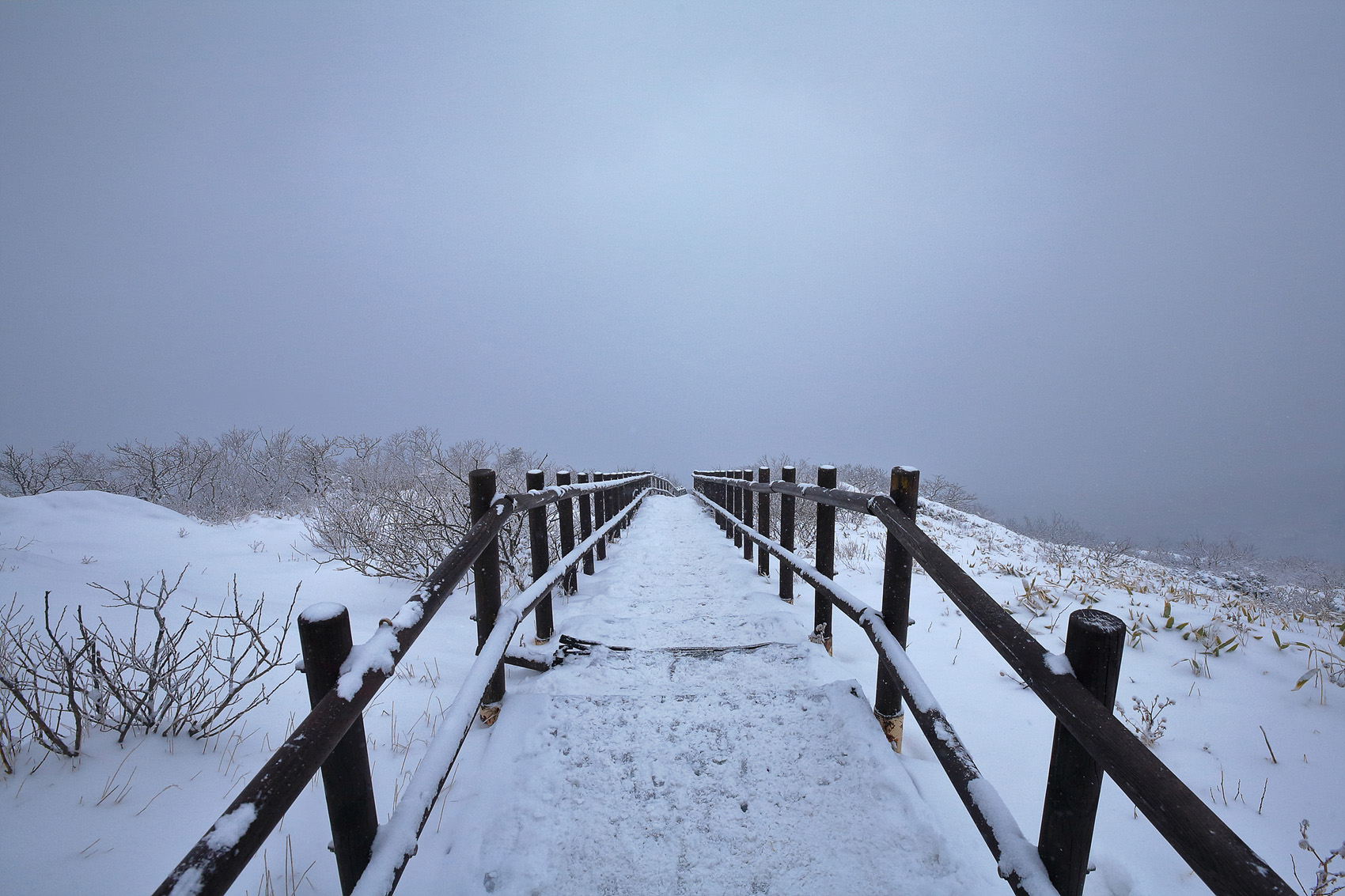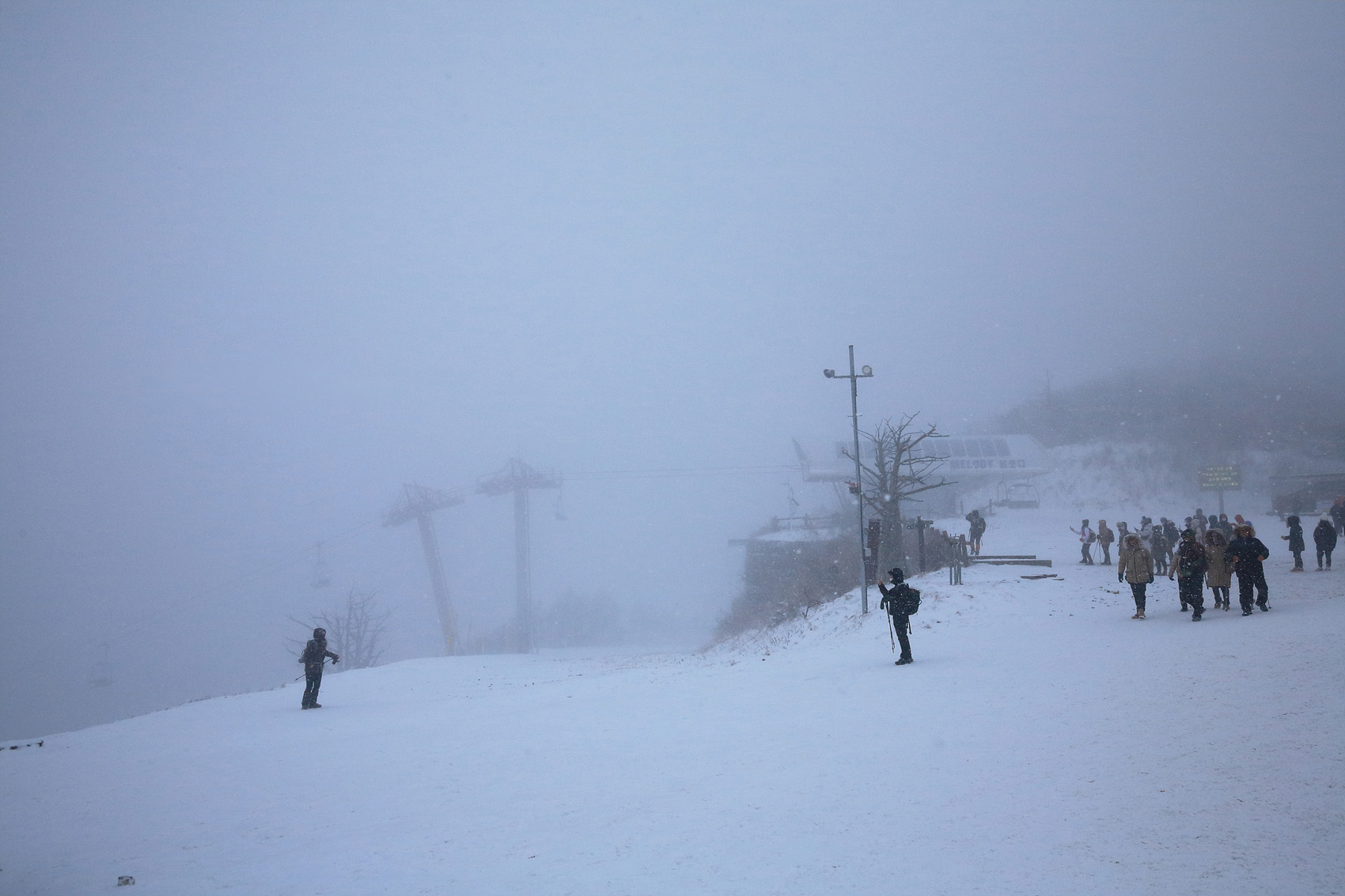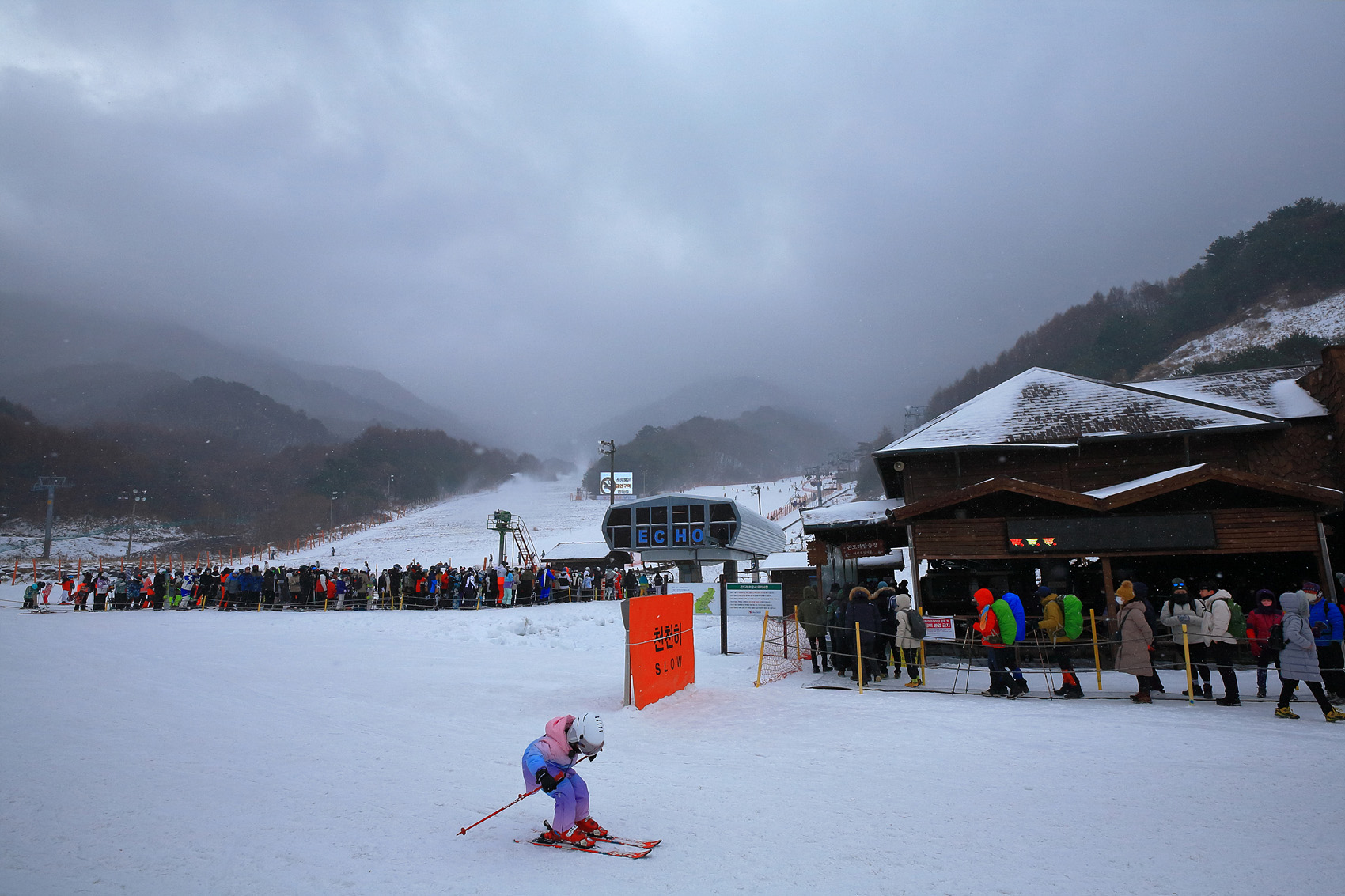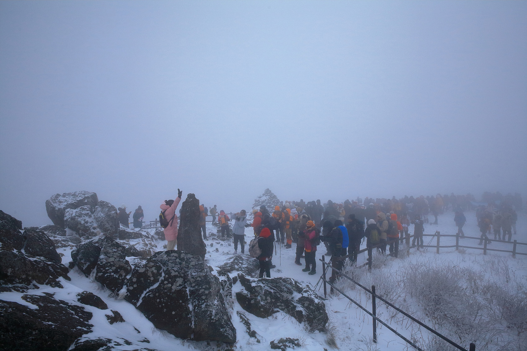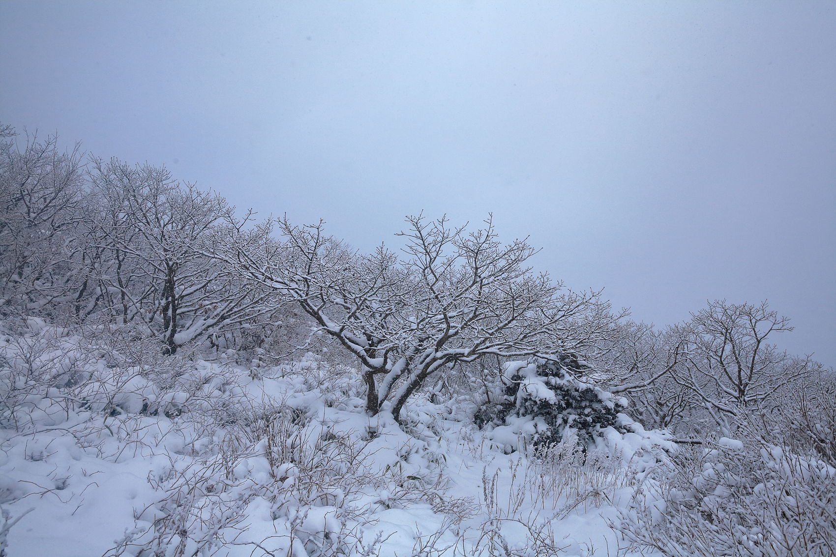 칼바람에 눈 맞으며 대피소 처마밑에서