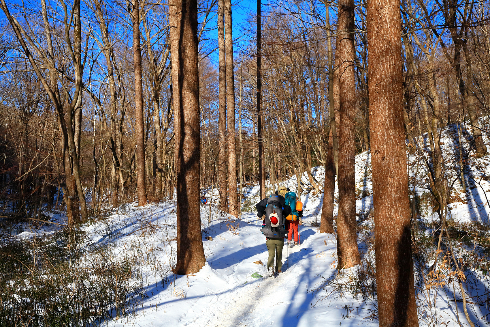 서둘러 임도로 내려오며