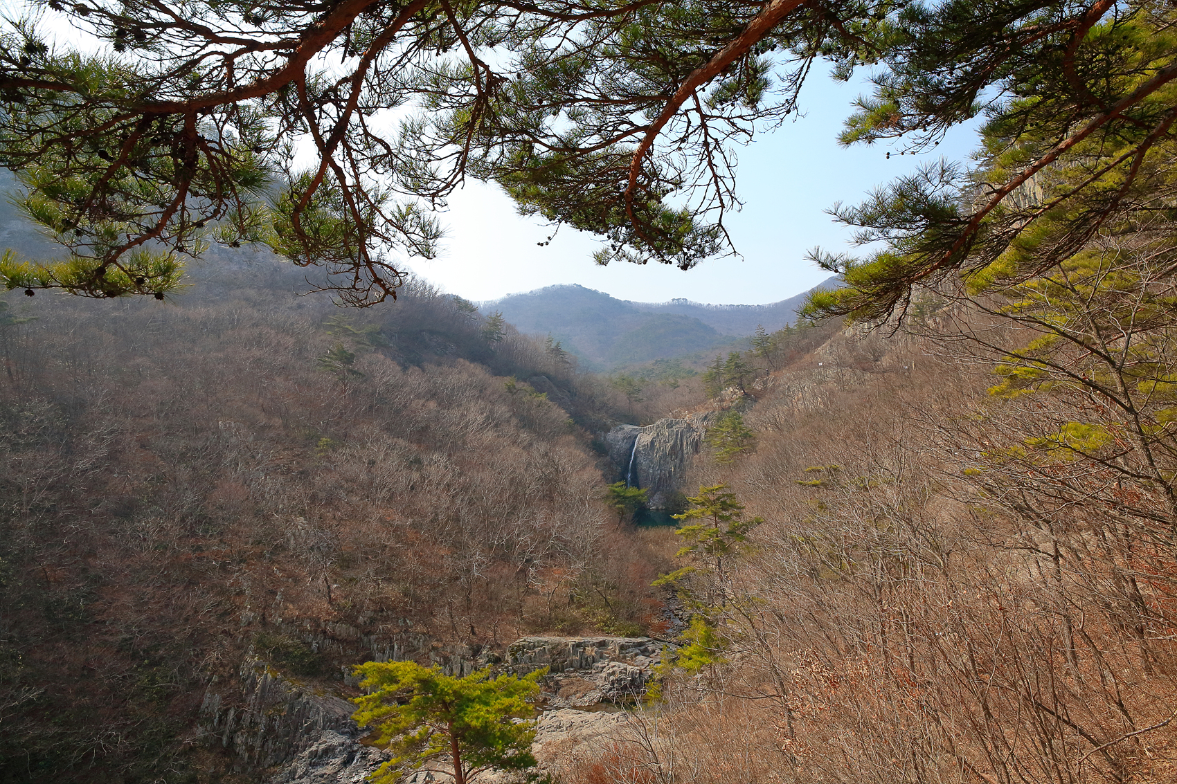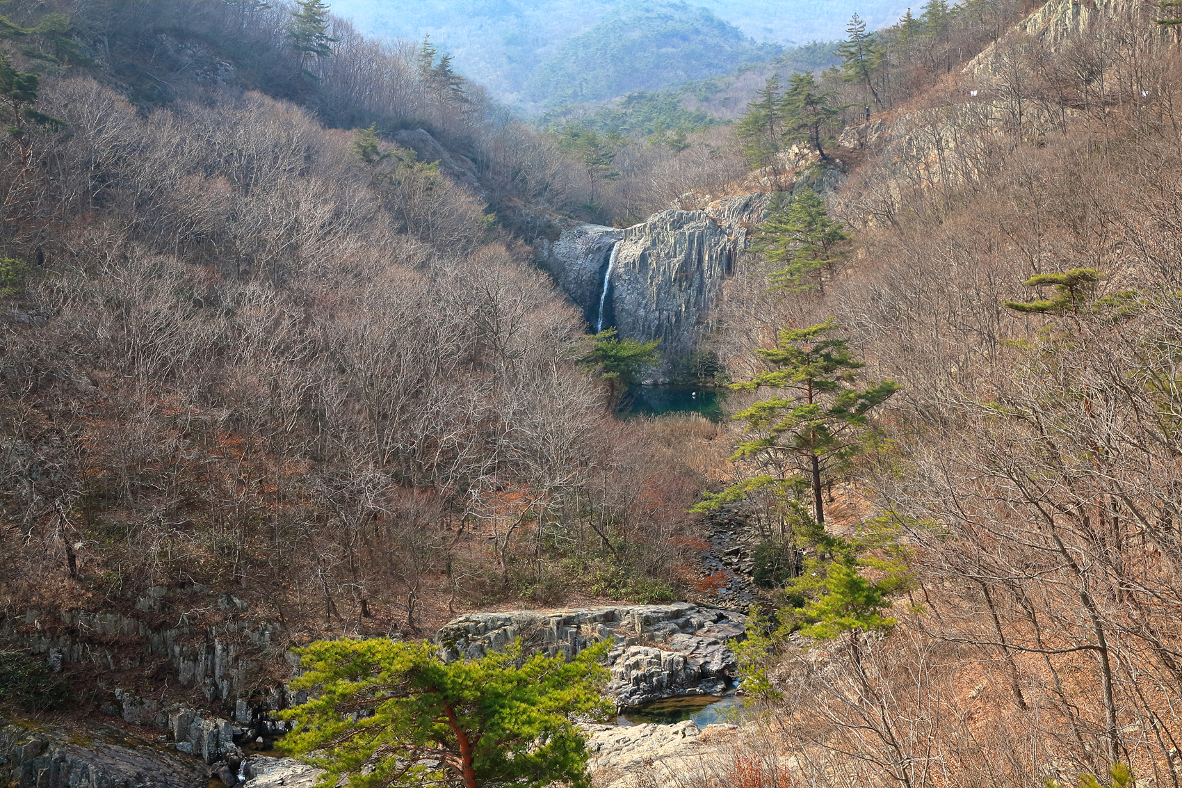 폭포수 양 옆 검게 보이는 수폭까지