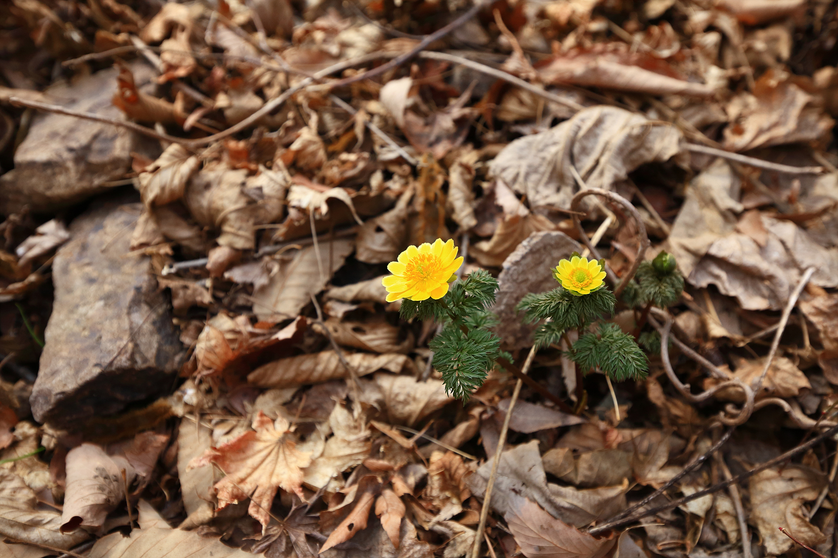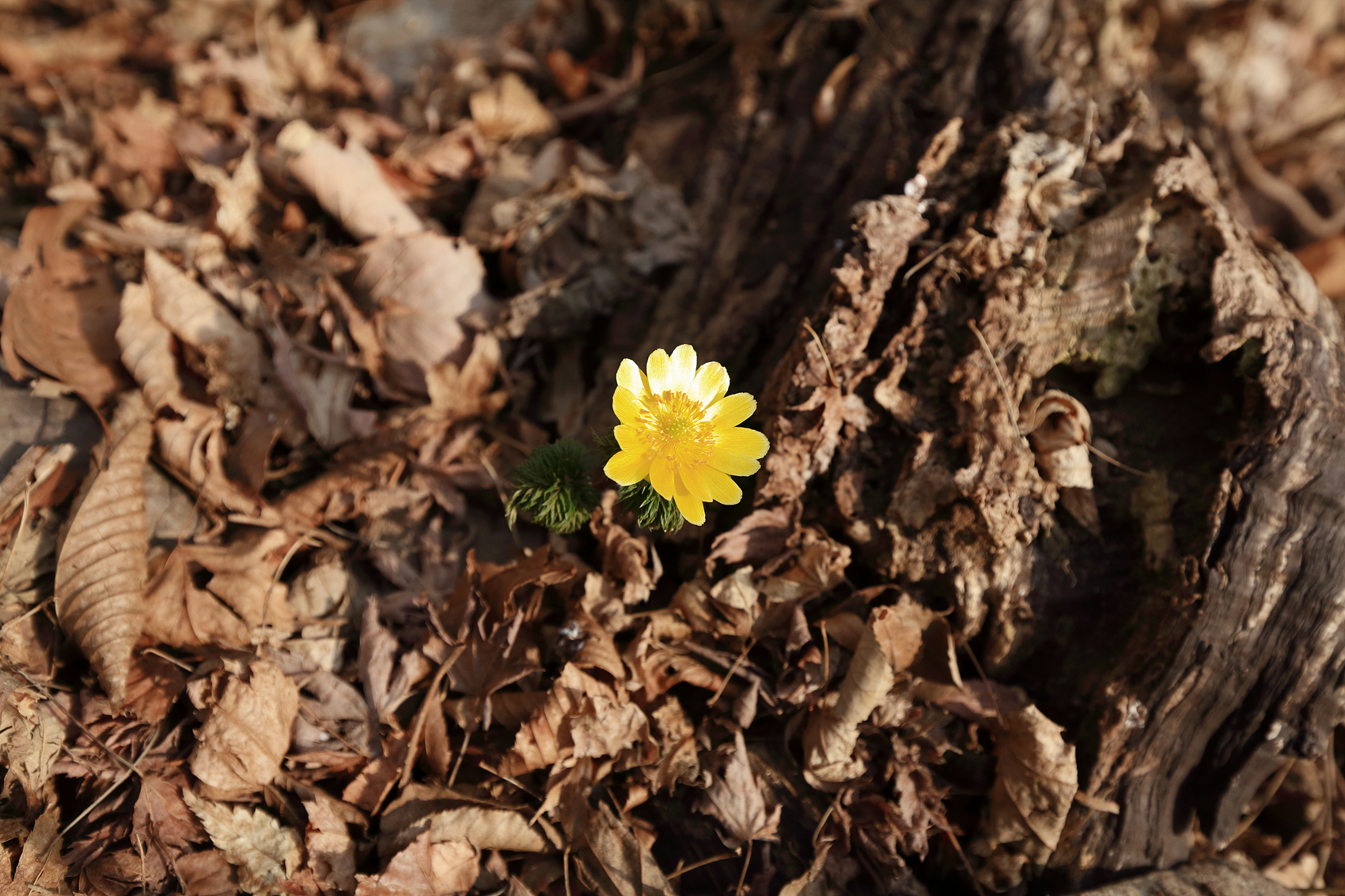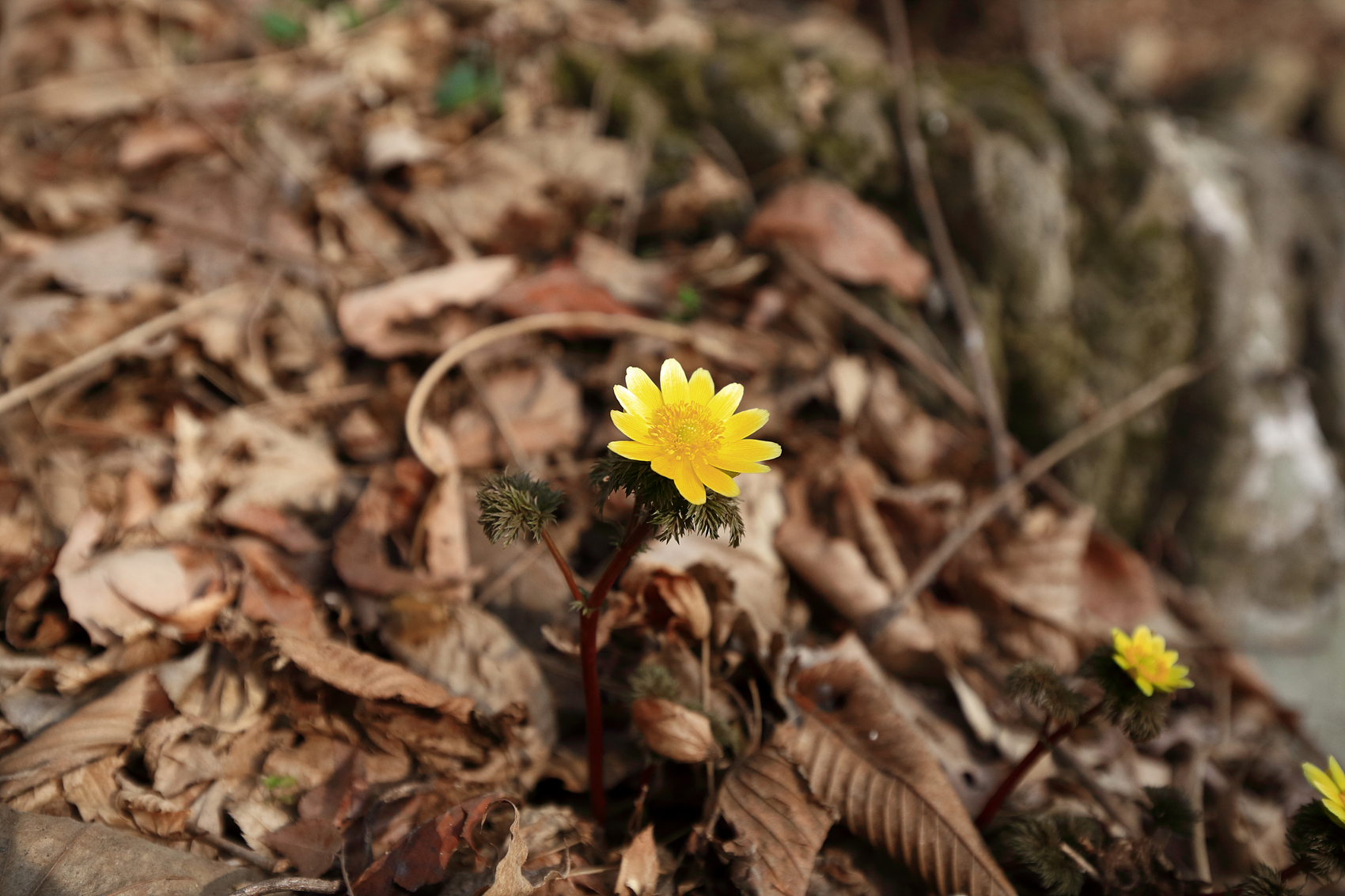 봄의 전령이 되어 눈속을 뚫고 노랗게 피어나는 복수초!