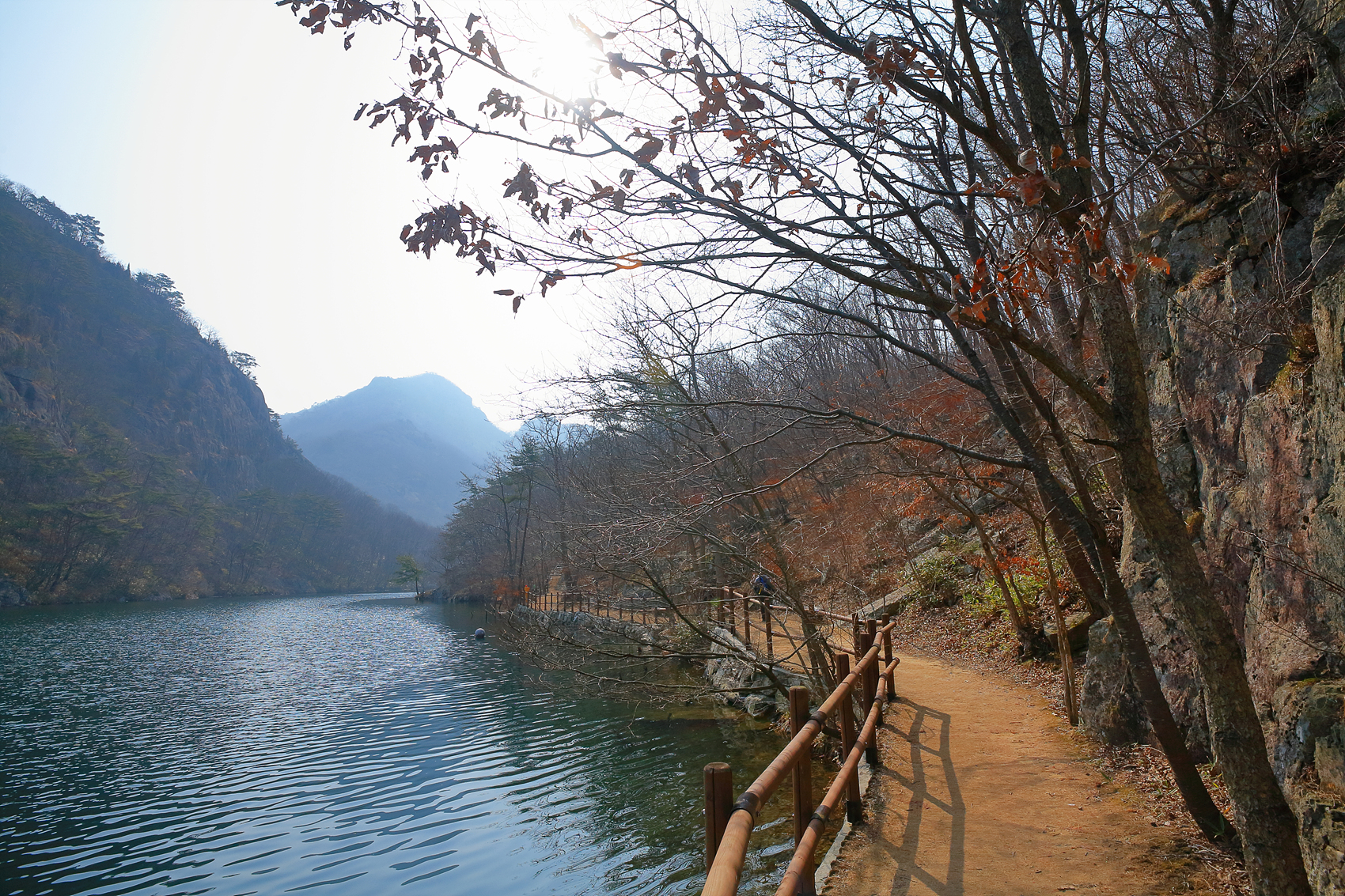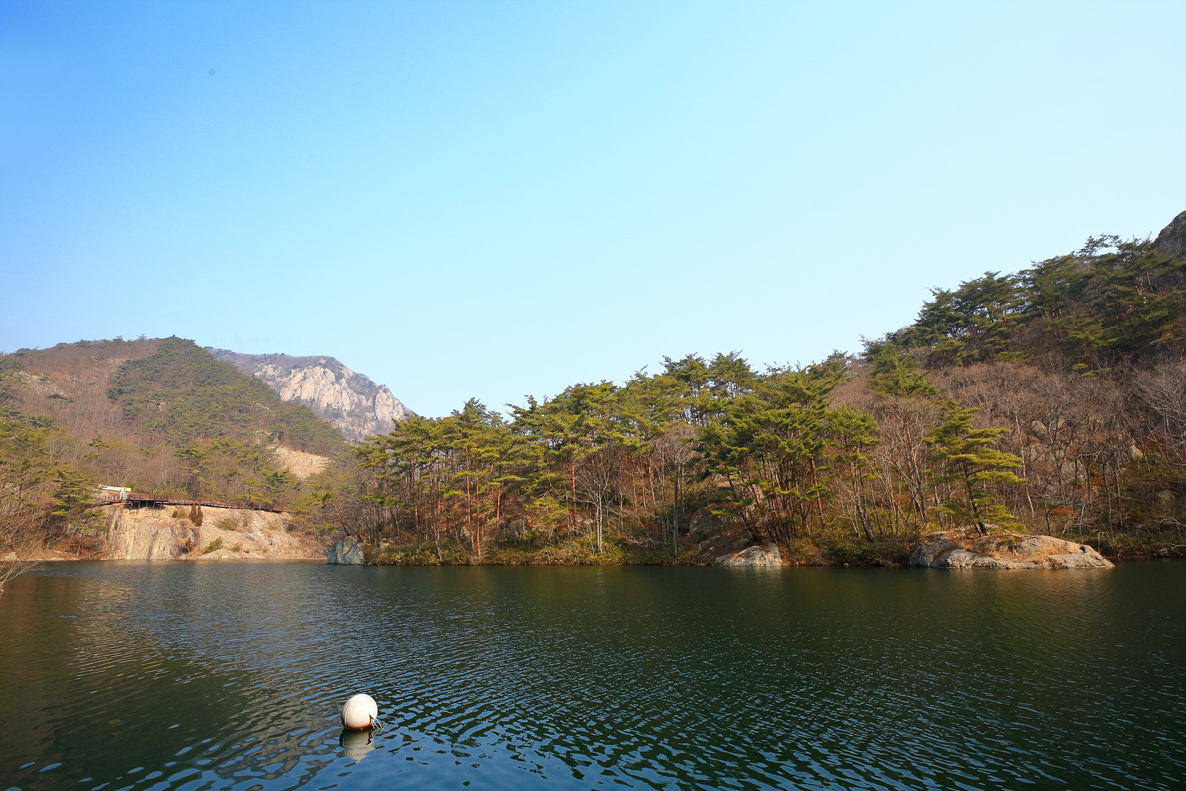 직소저수지 가장자리따라 쭉 이어지는 멋진 등로를