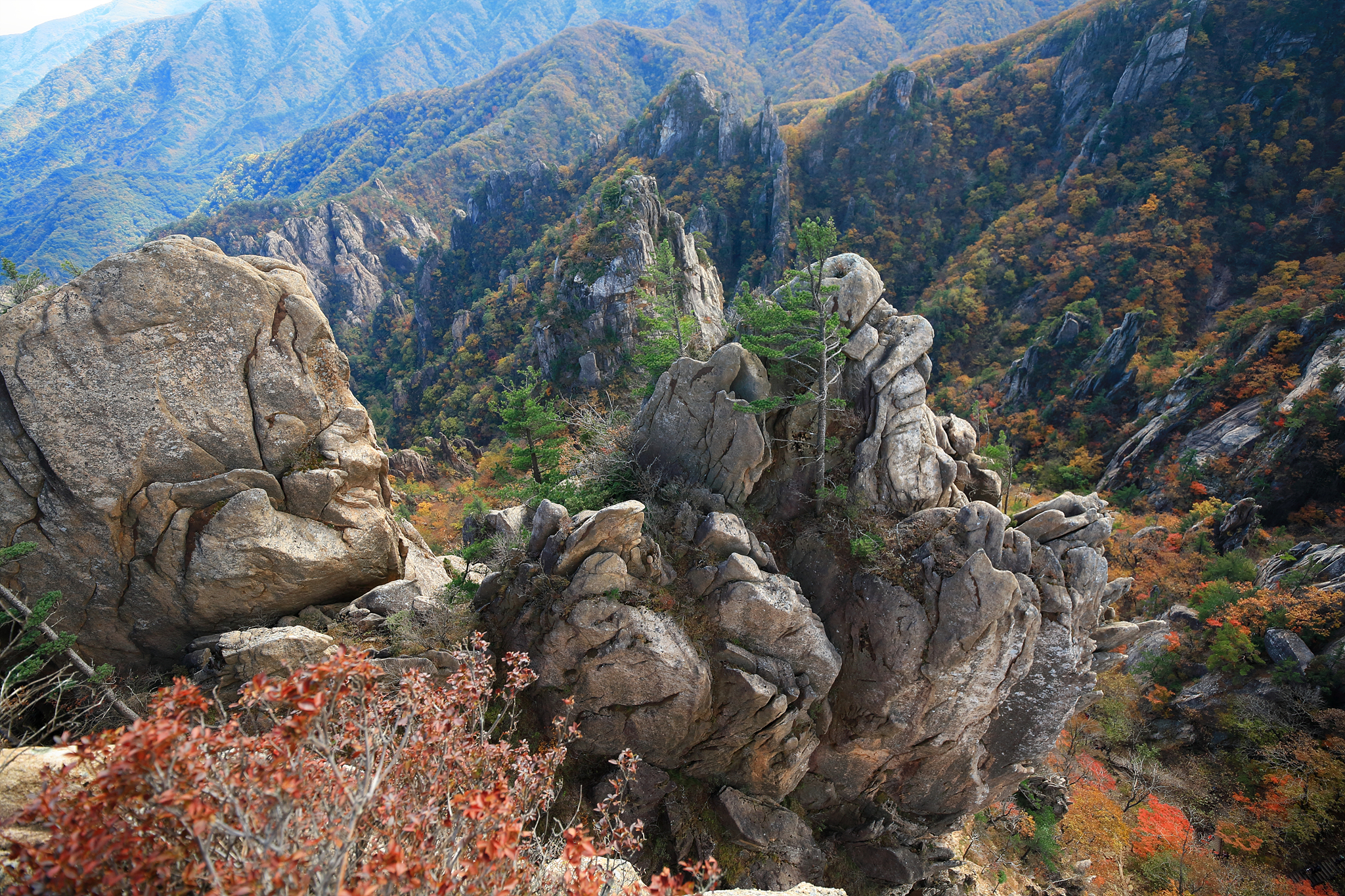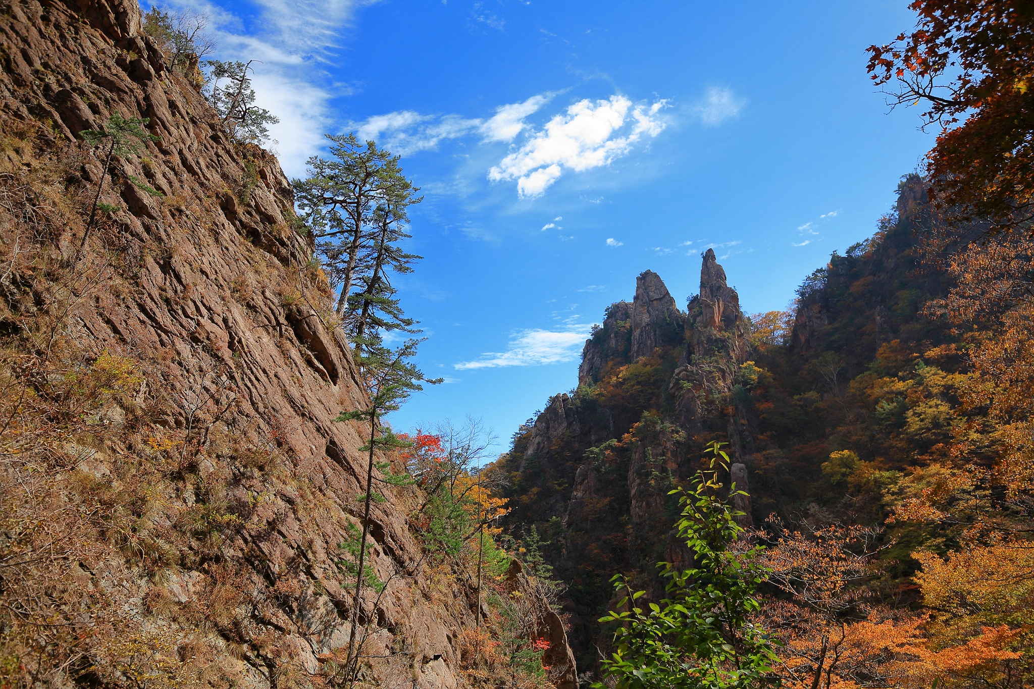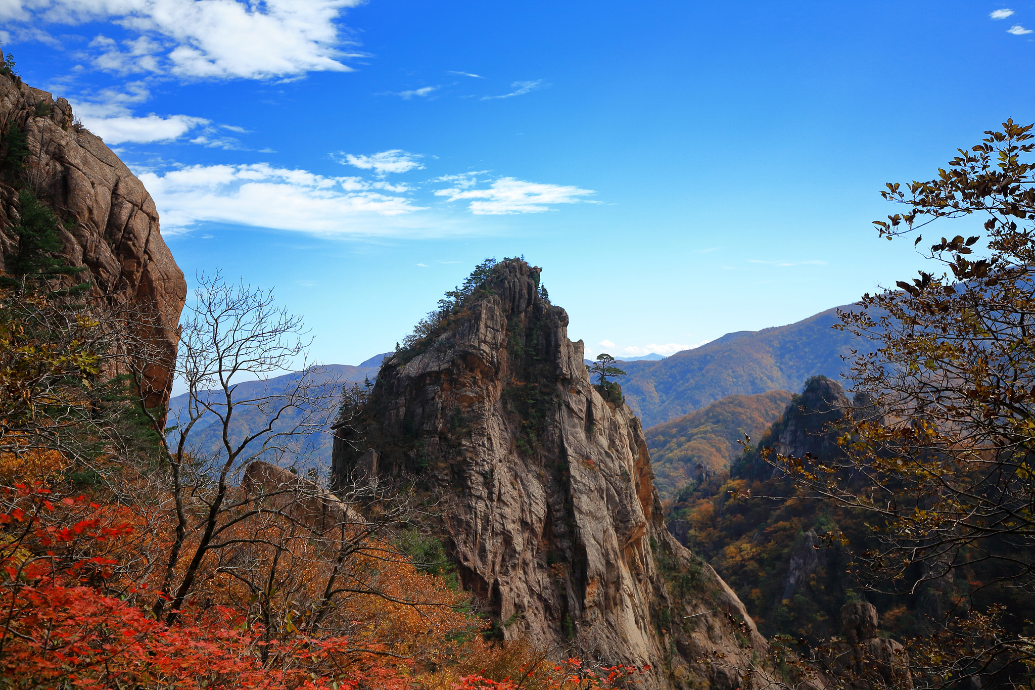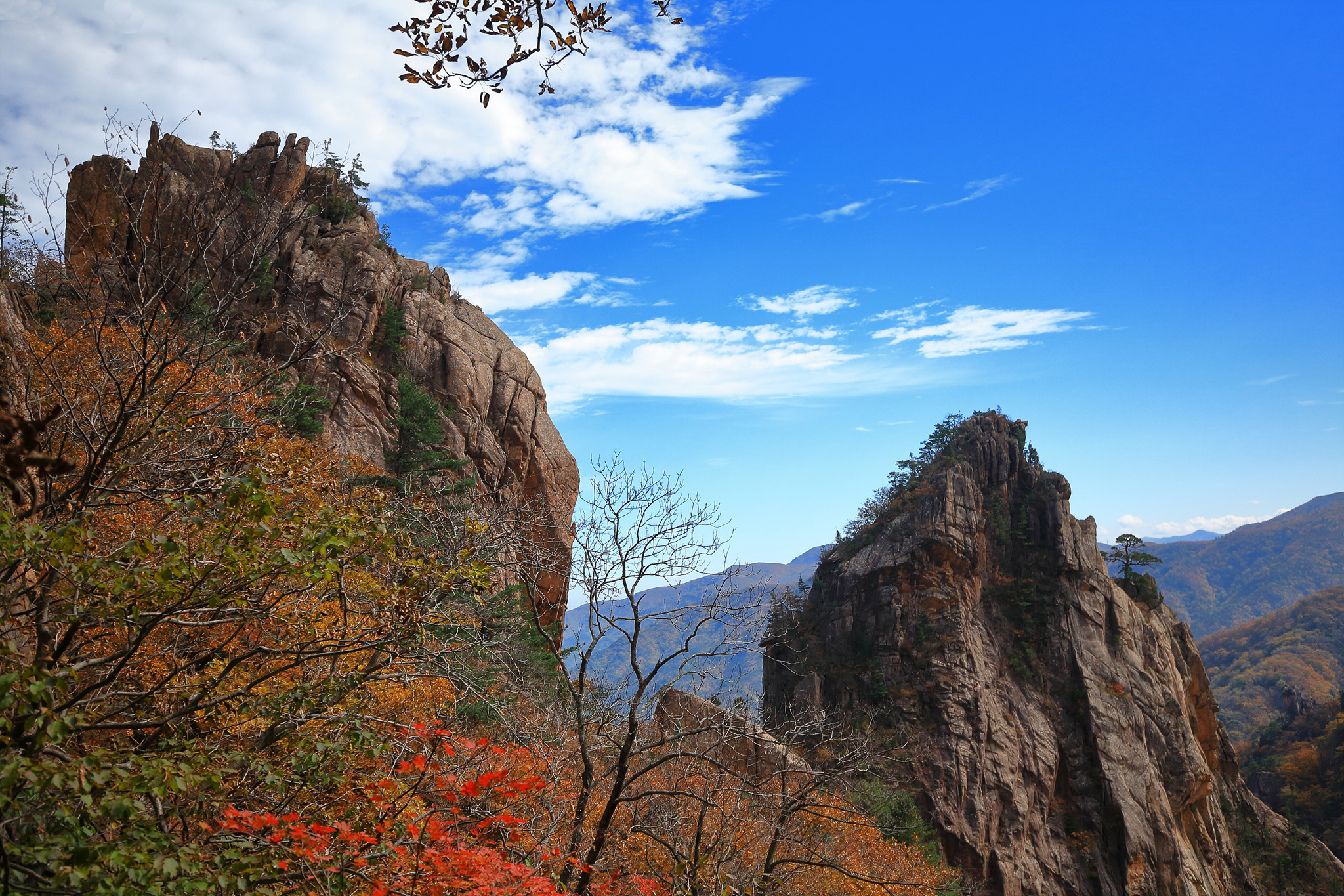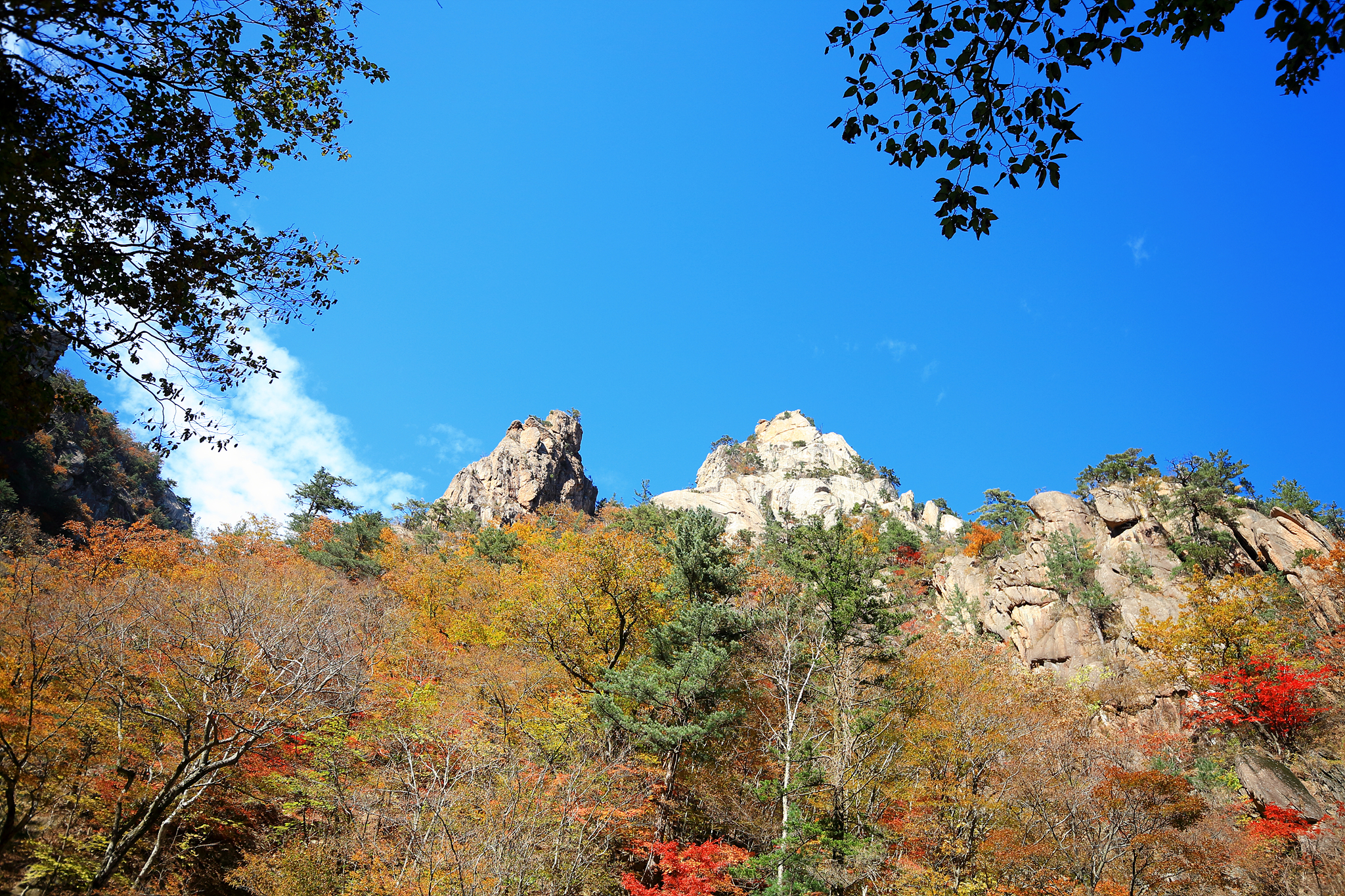 멋진 암릉 사이로 곱게 물들기 시작하는