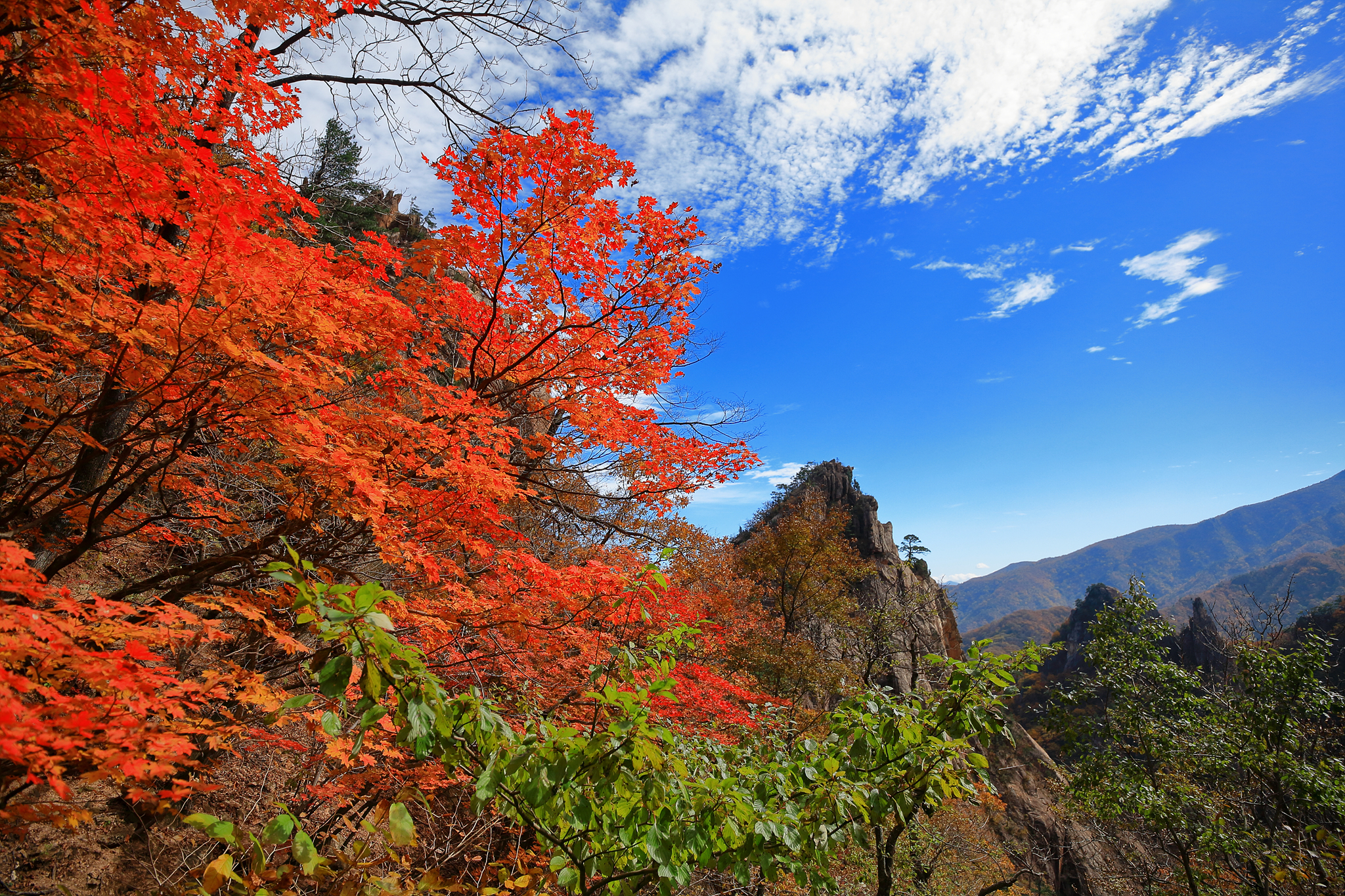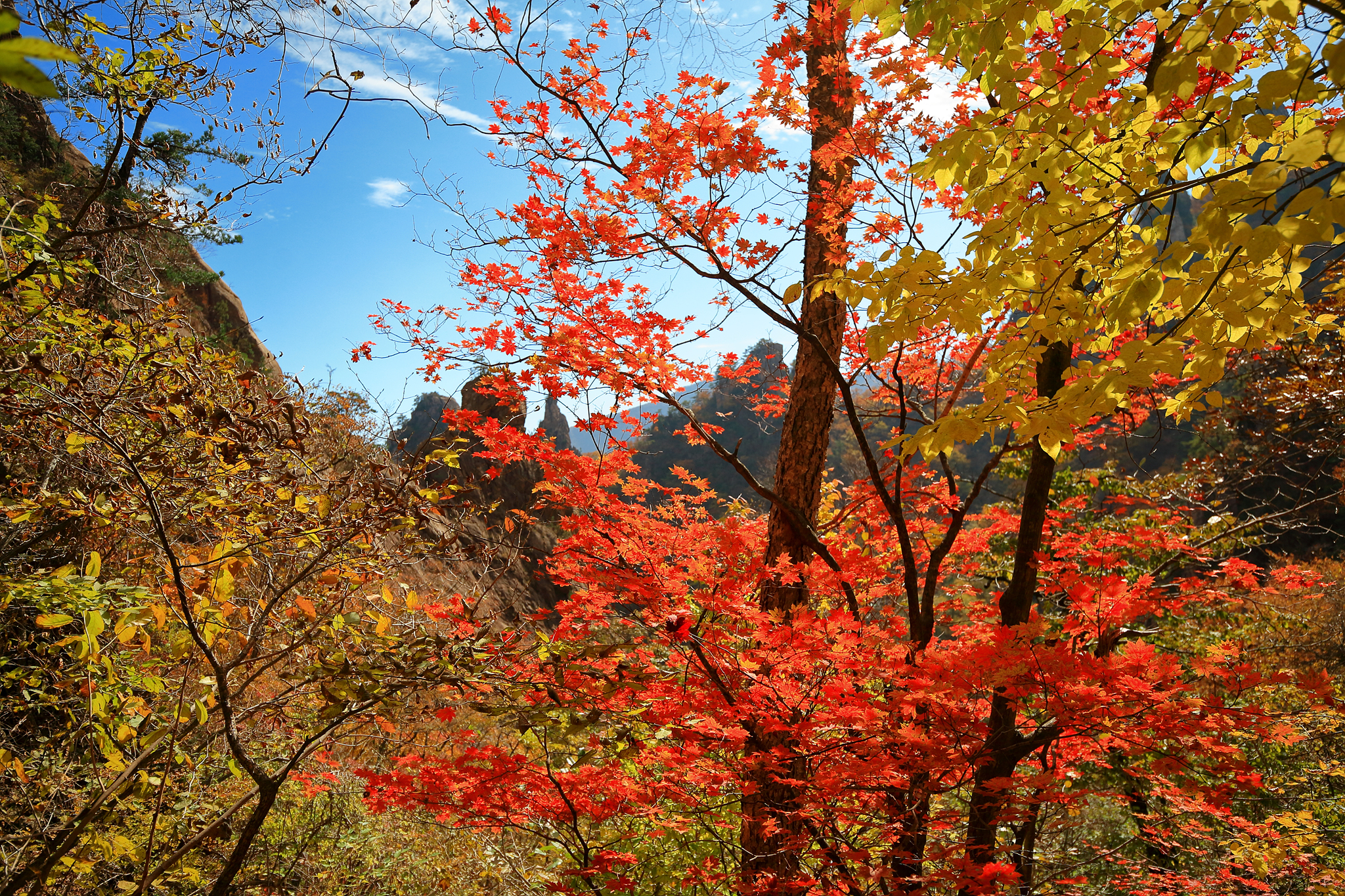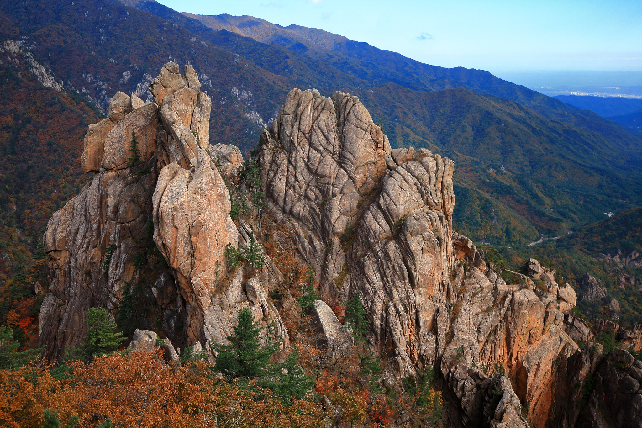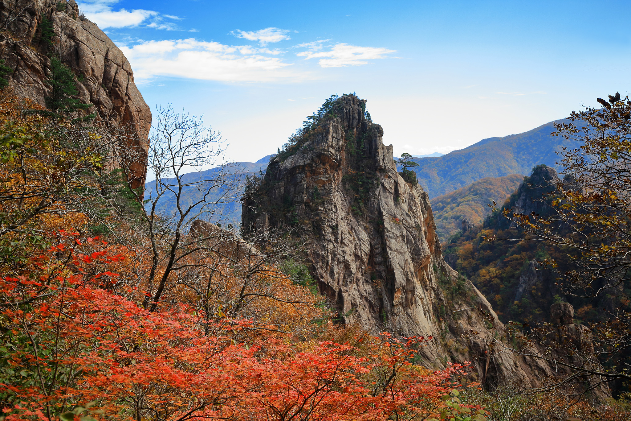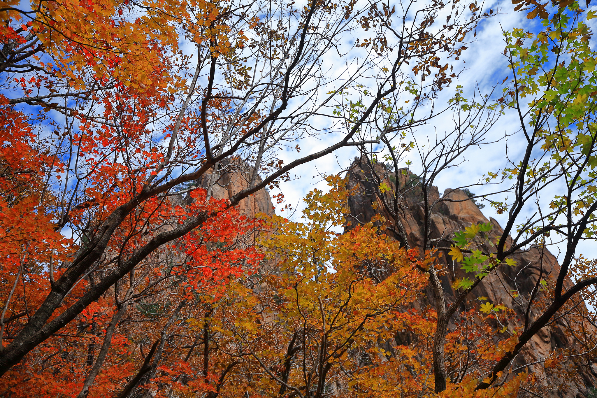 멋진 암릉 사이로 곱게 물들기 시작하는